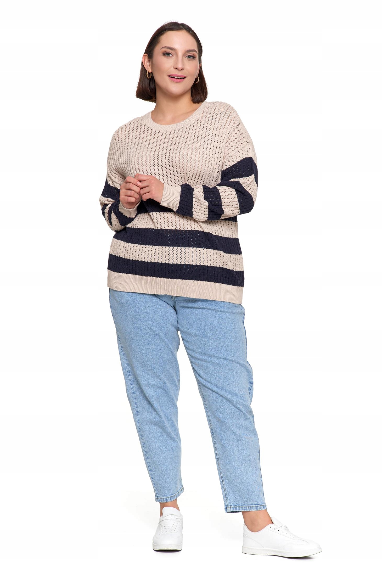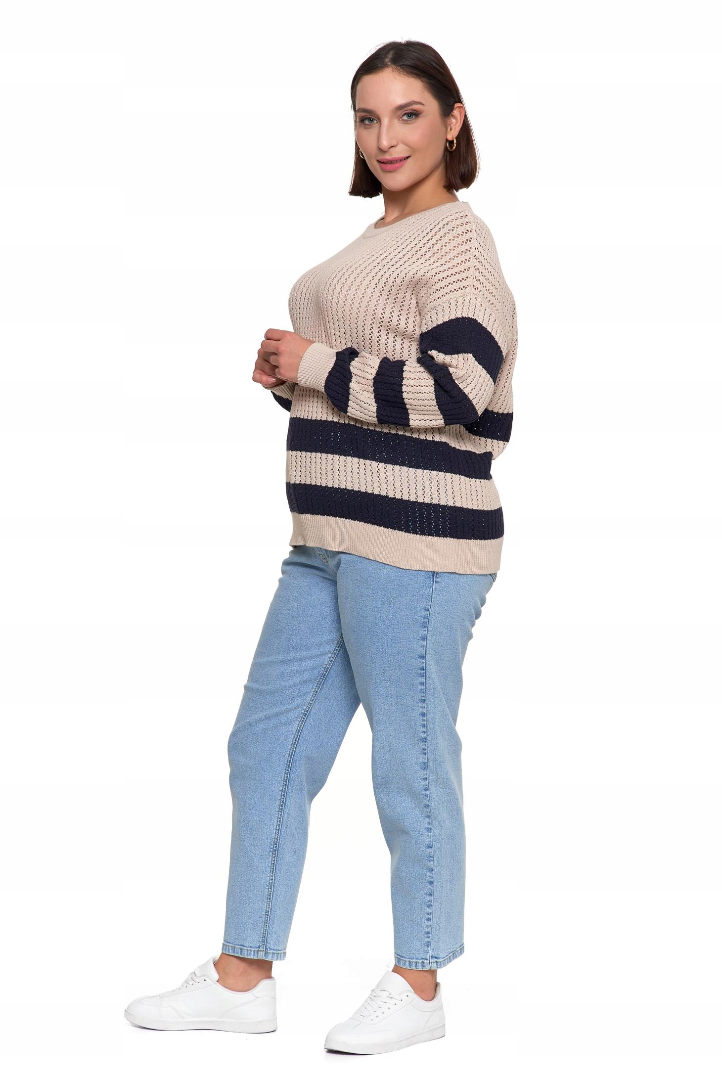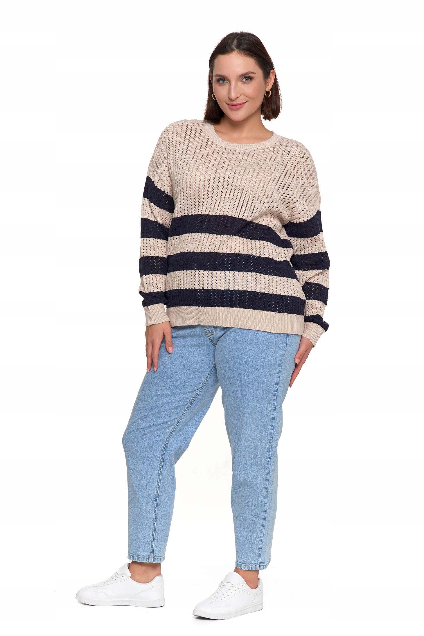 Sweter Damski Ażurowy Delikatny Sweterek w Paski Modny Wzór Kolor MORAJ