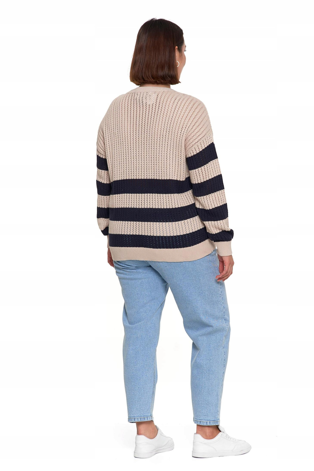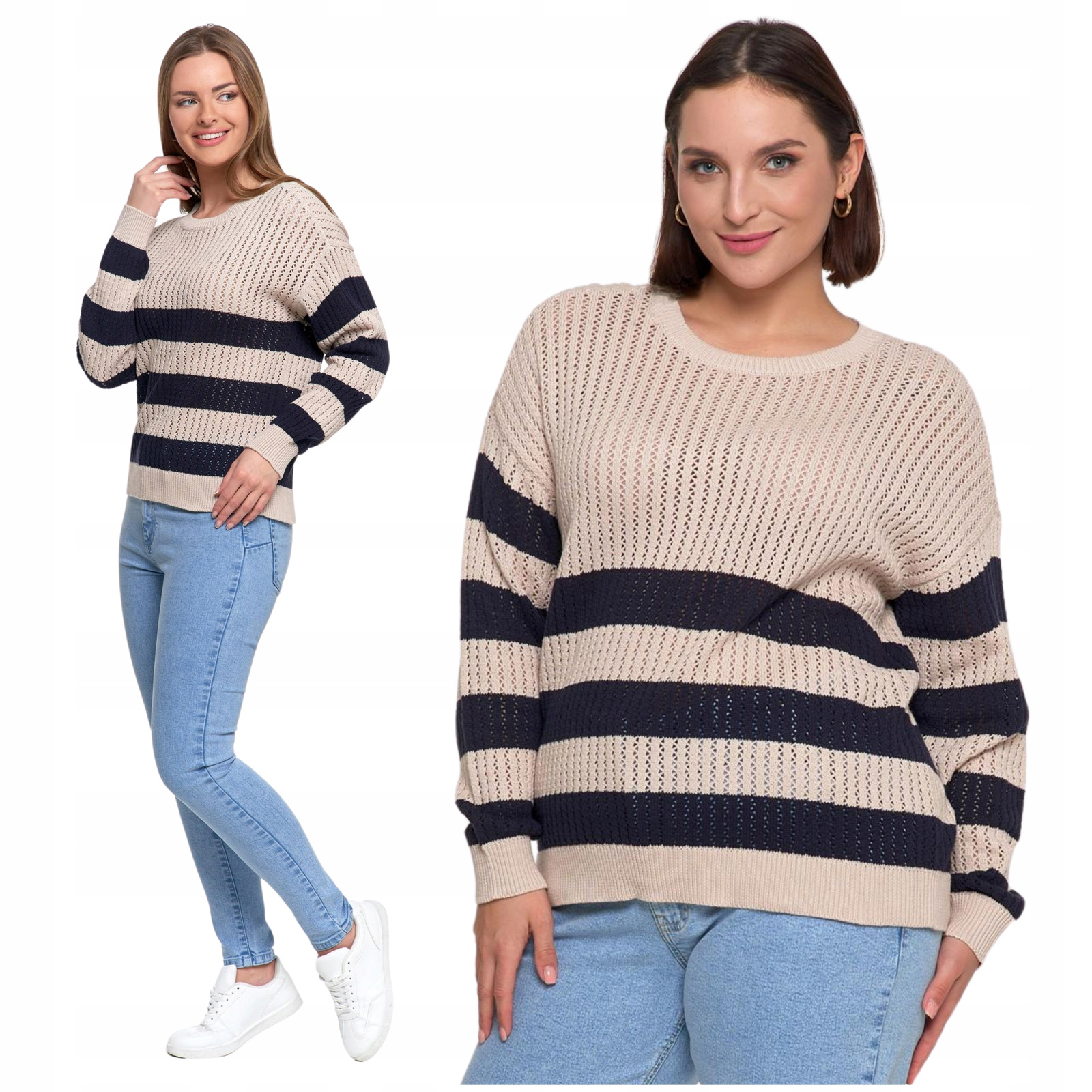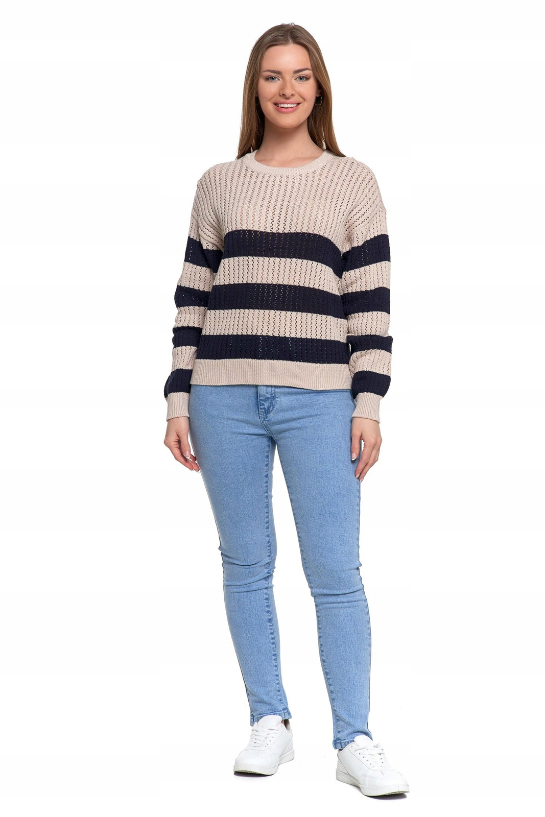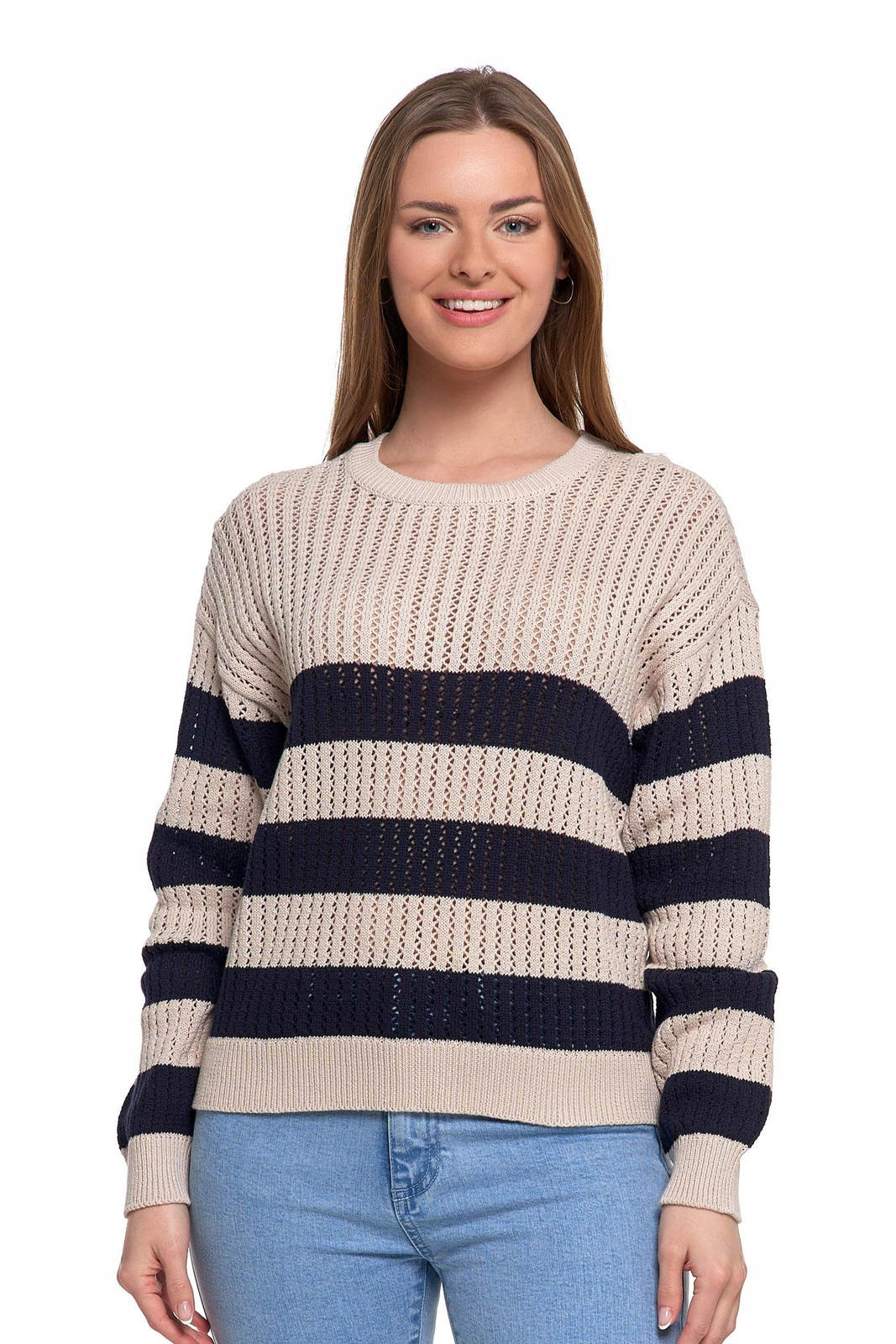 Sweter Damski Ażurowy Delikatny Sweterek w Paski Modny Wzór Kolor MORAJ