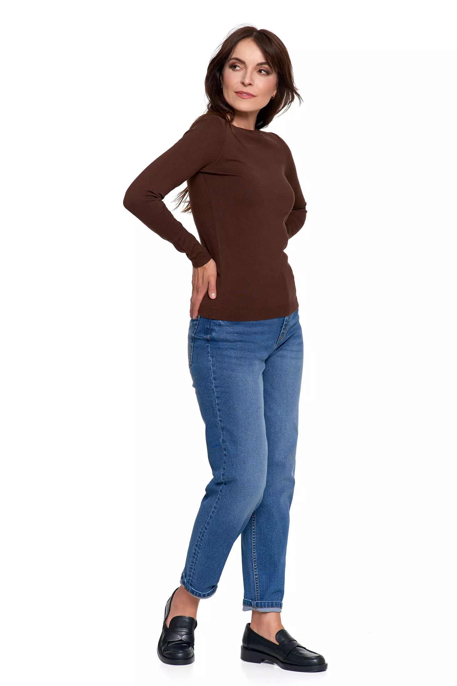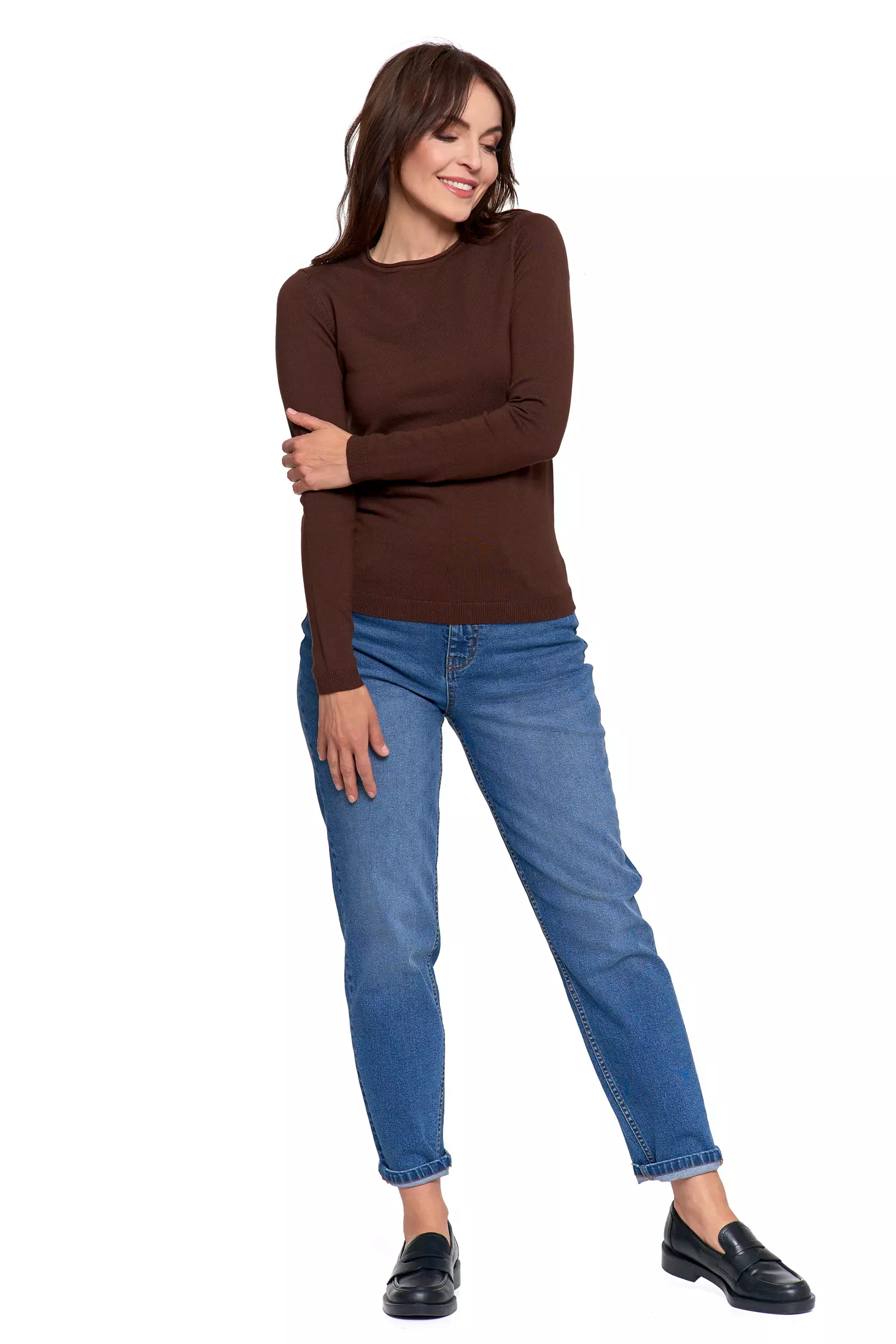 SWETER DAMSKI CIENKI SWETEREK WISKOZOWY DOPASOWANY GŁADKI MORAJ