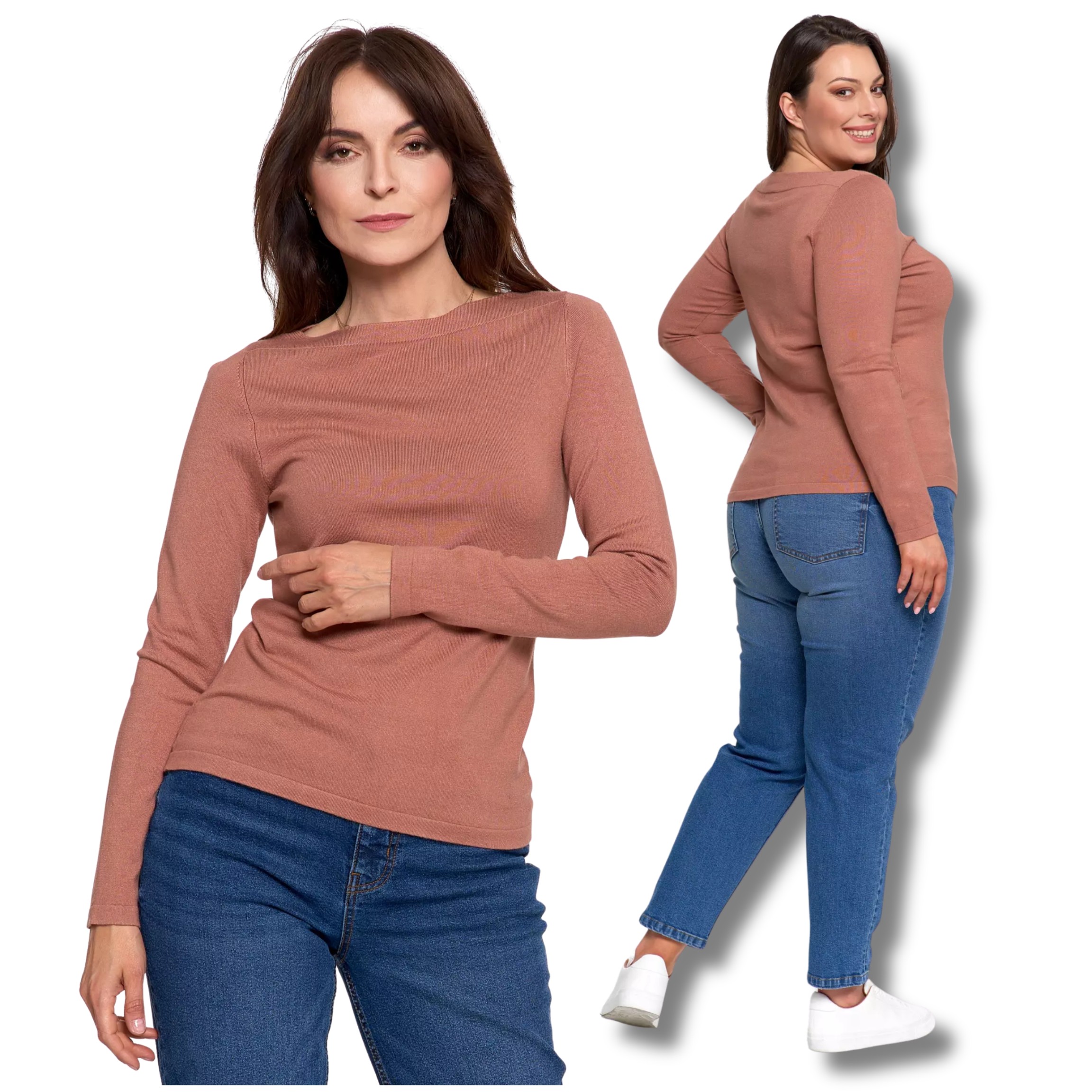 SWETER DAMSKI CIENKI SWETEREK WISKOZOWY DOPASOWANY GŁADKI MORAJ