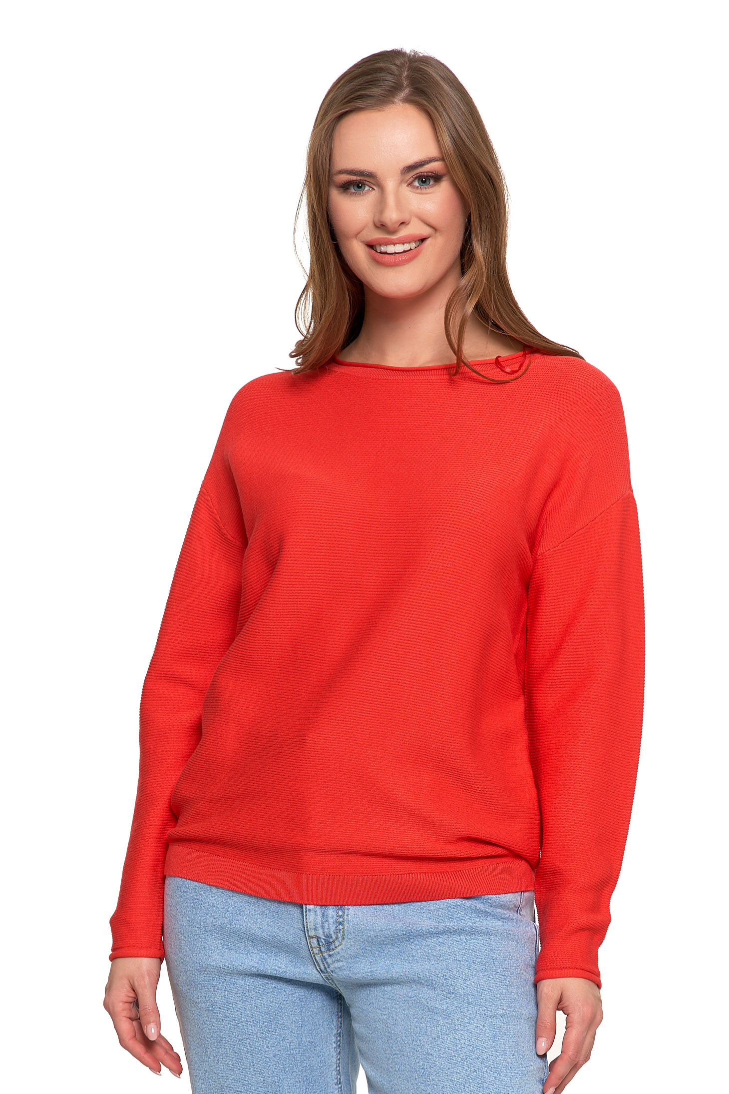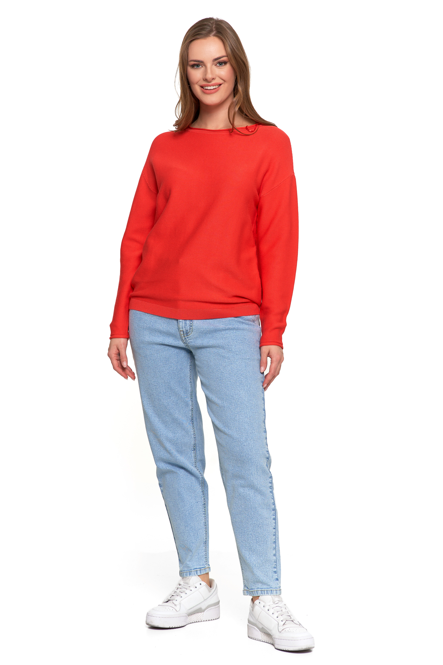 SWETER DAMSKI DZIANINOWY Z WISKOZY LUŹNY KRÓJ WYGODNY MODNY MORAJ