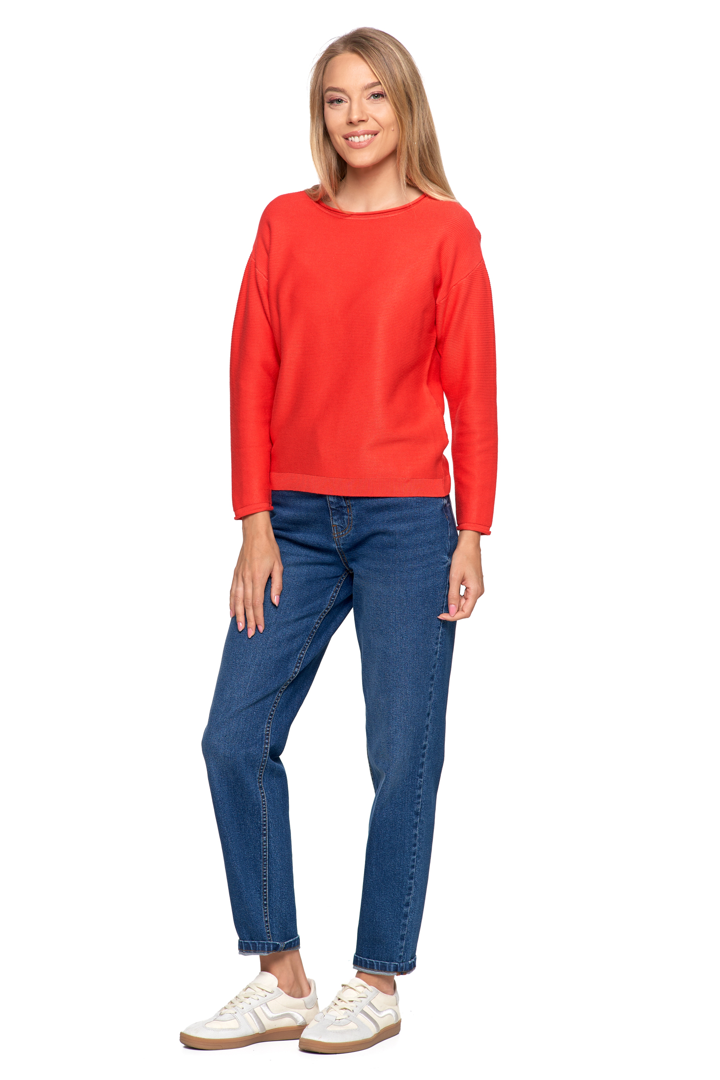 - Klasyczny, okrągły dekolt podkreśla ponadczasowy charakter swetra.