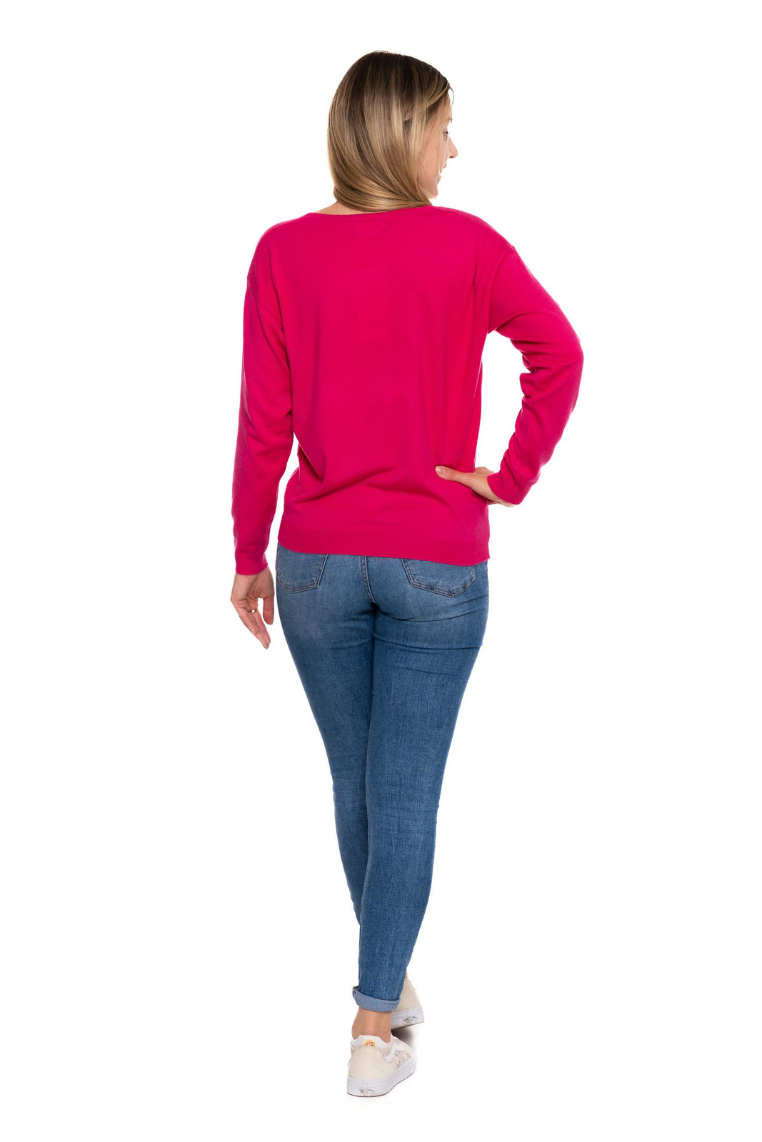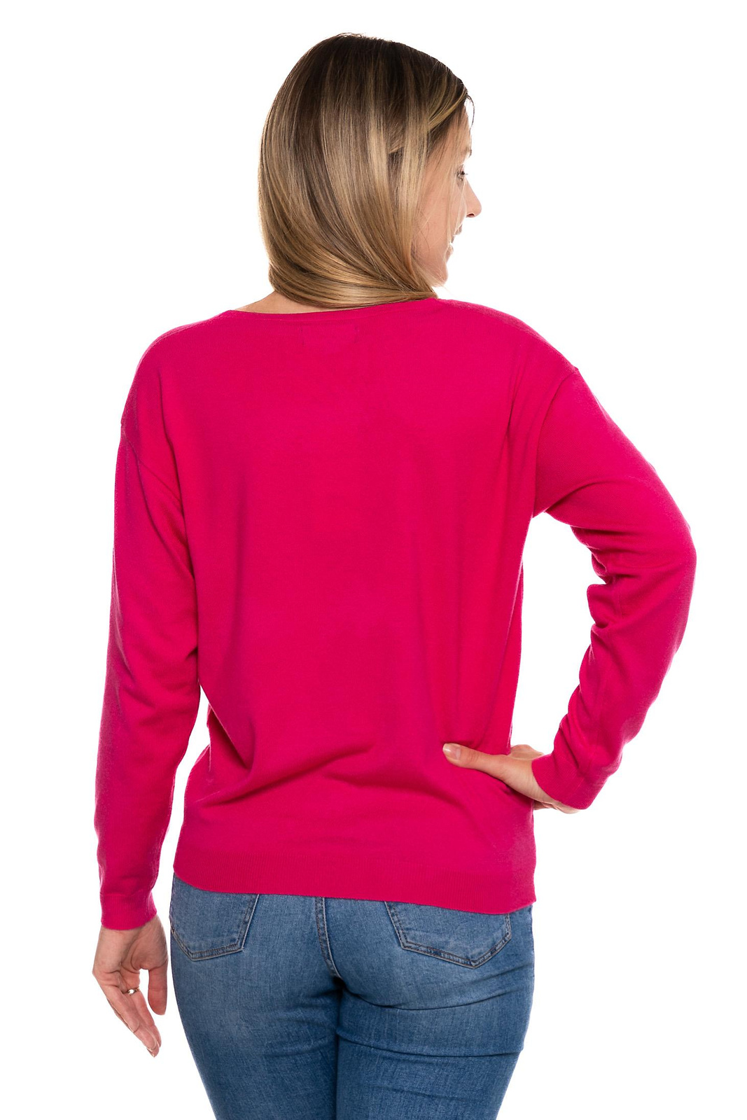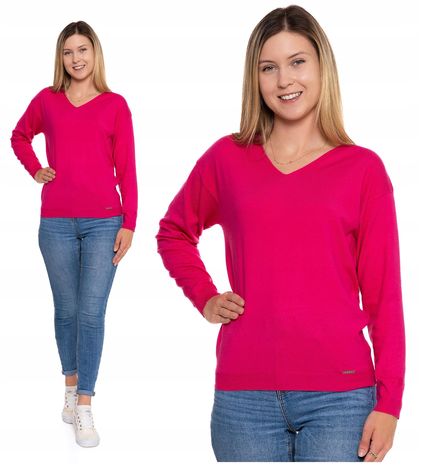 Sweter Damski Różowy Luźny Dekolt w Serek Stylowy Modny Elegancki MORAJ