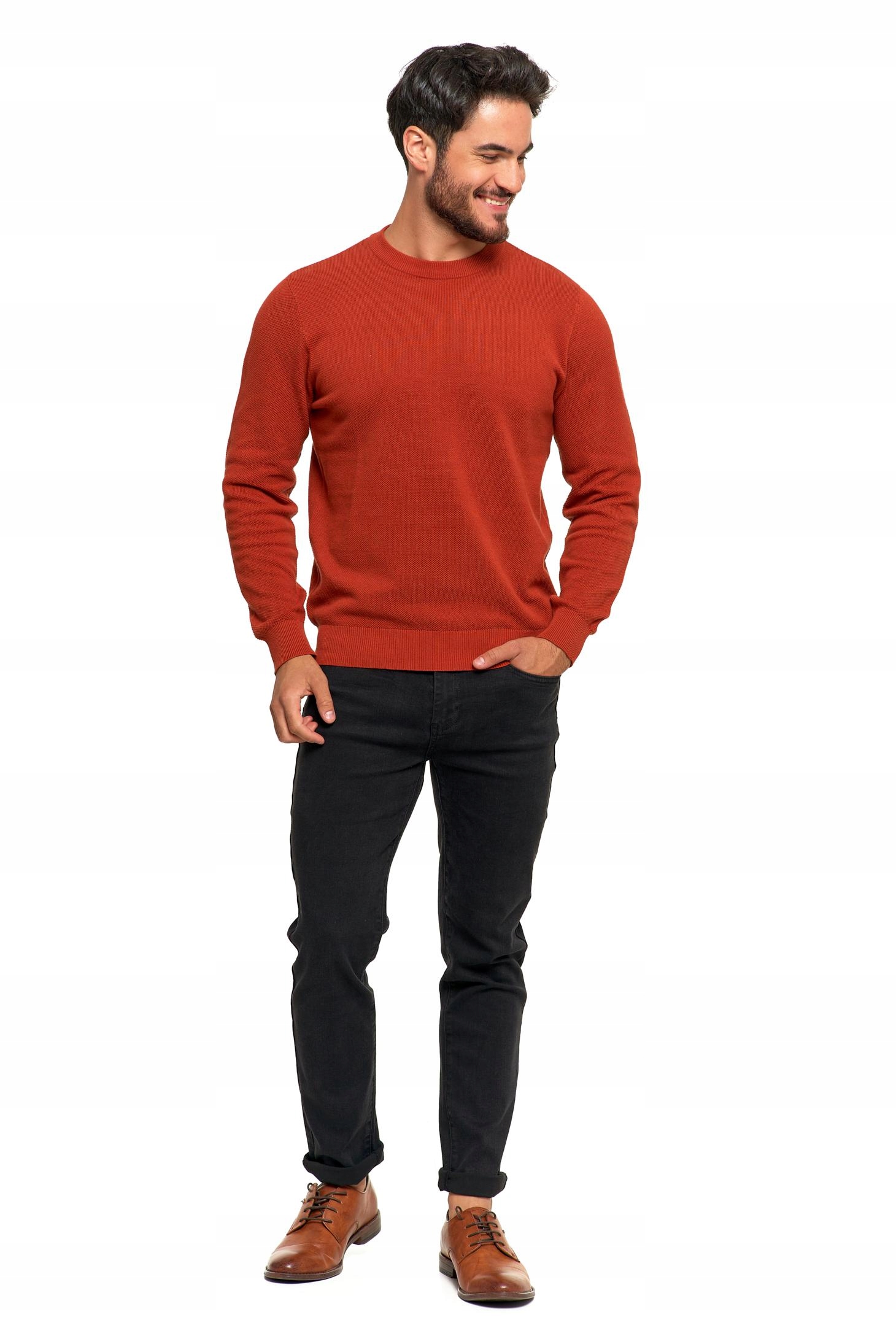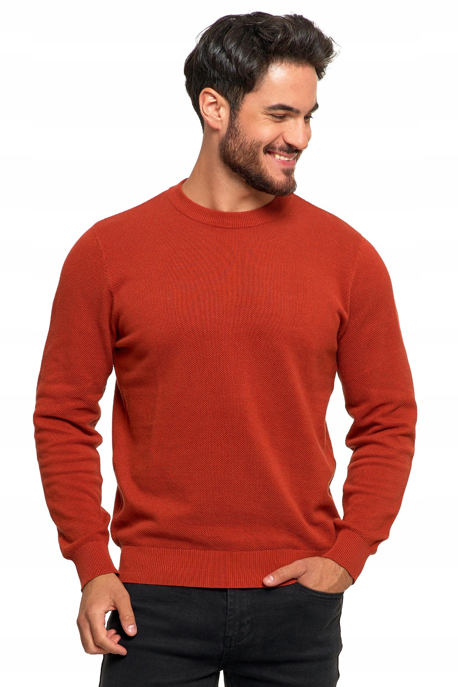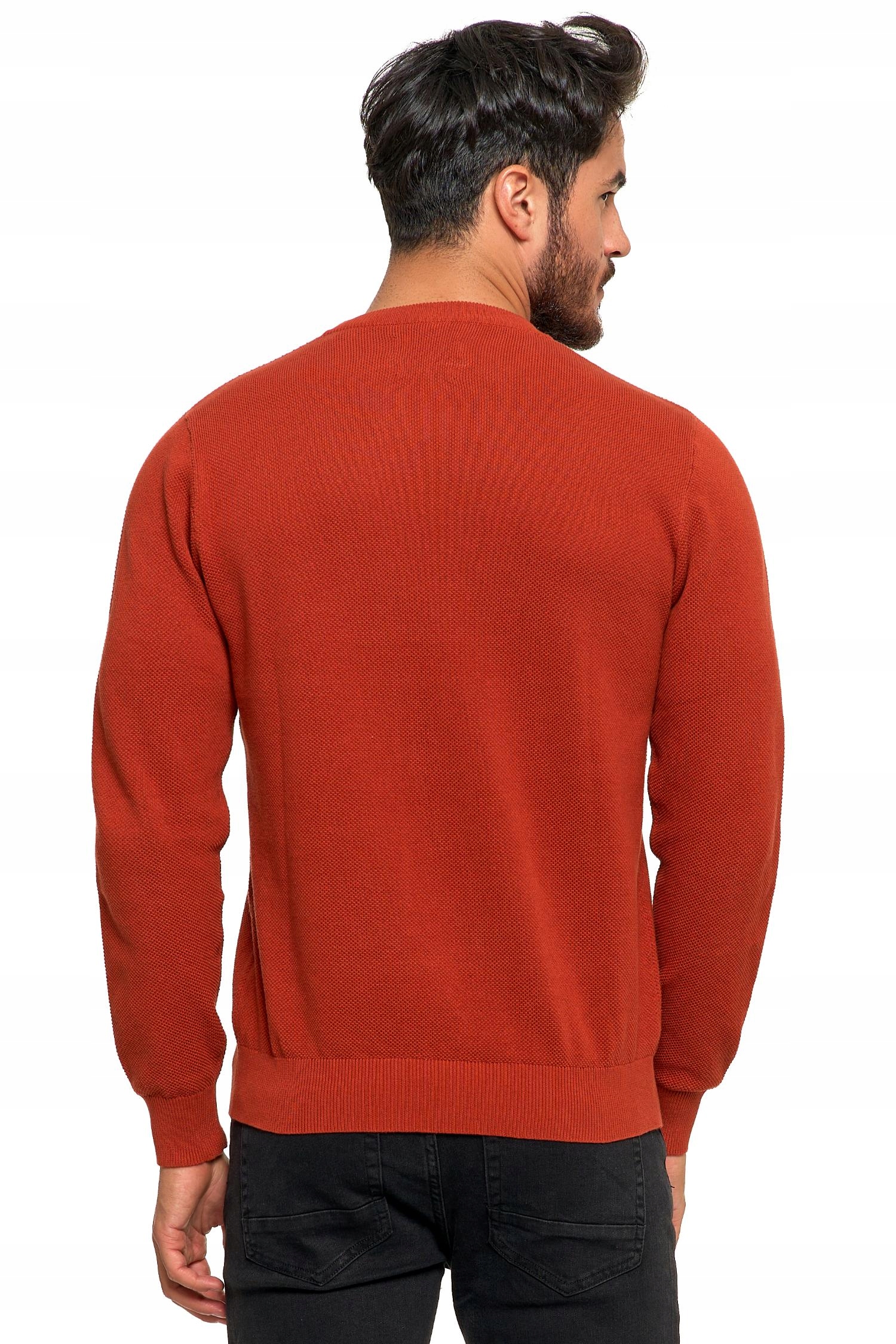 SWETER MĘSKI BAWEŁNIANY Z DEKOLTEM OKRĄGŁYM POMARAŃCZOWY BAWEŁNA