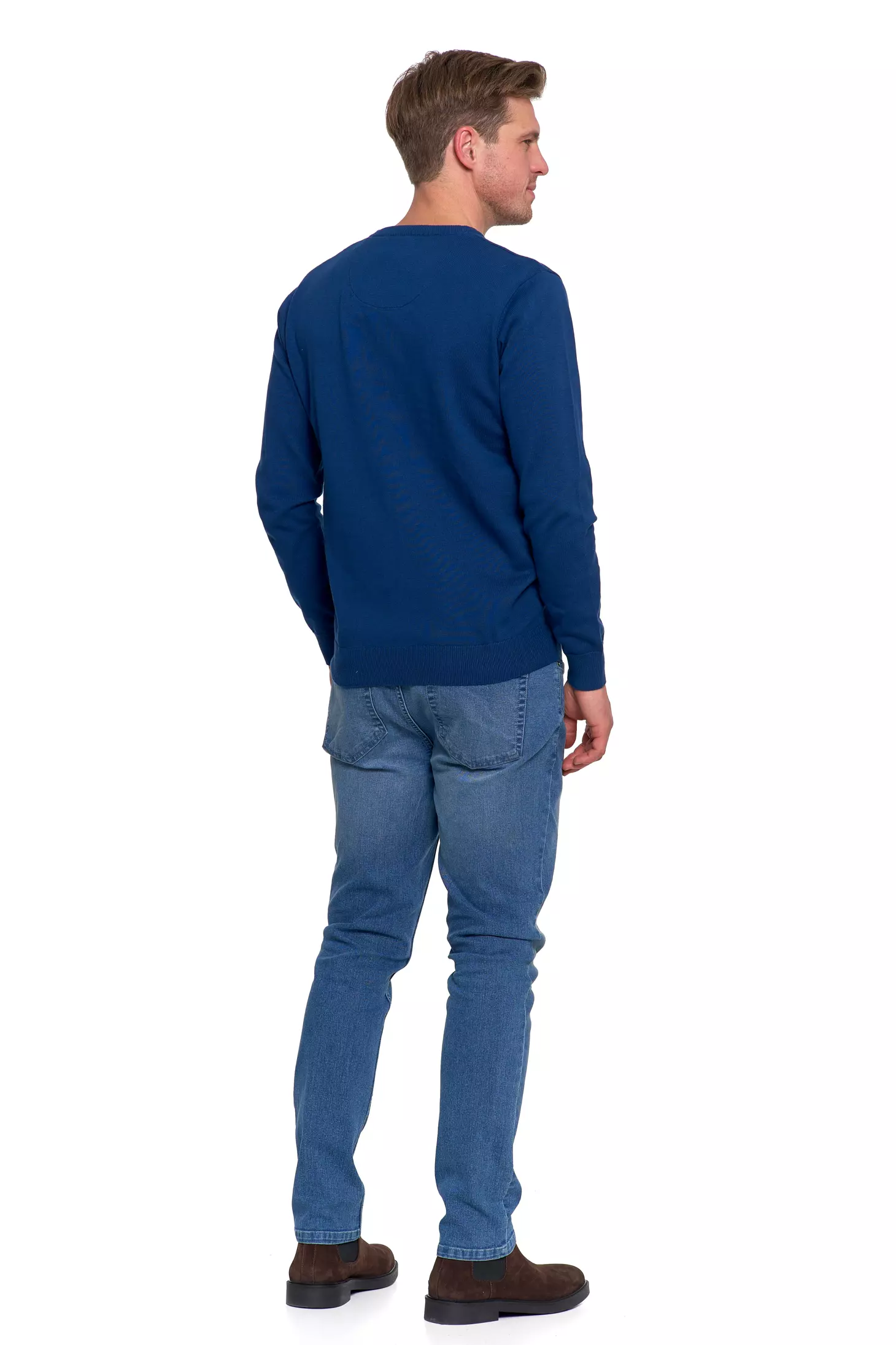 Ten klasyczny sweter to niezastąpiony element męskiej garderoby, który łączy elegancję z wygodą. Wykonany z 100% najwyższej jakości bawełny, zapewnia komfort noszenia i przewiewność, co sprawia, że jest idealny na każdą porę roku.