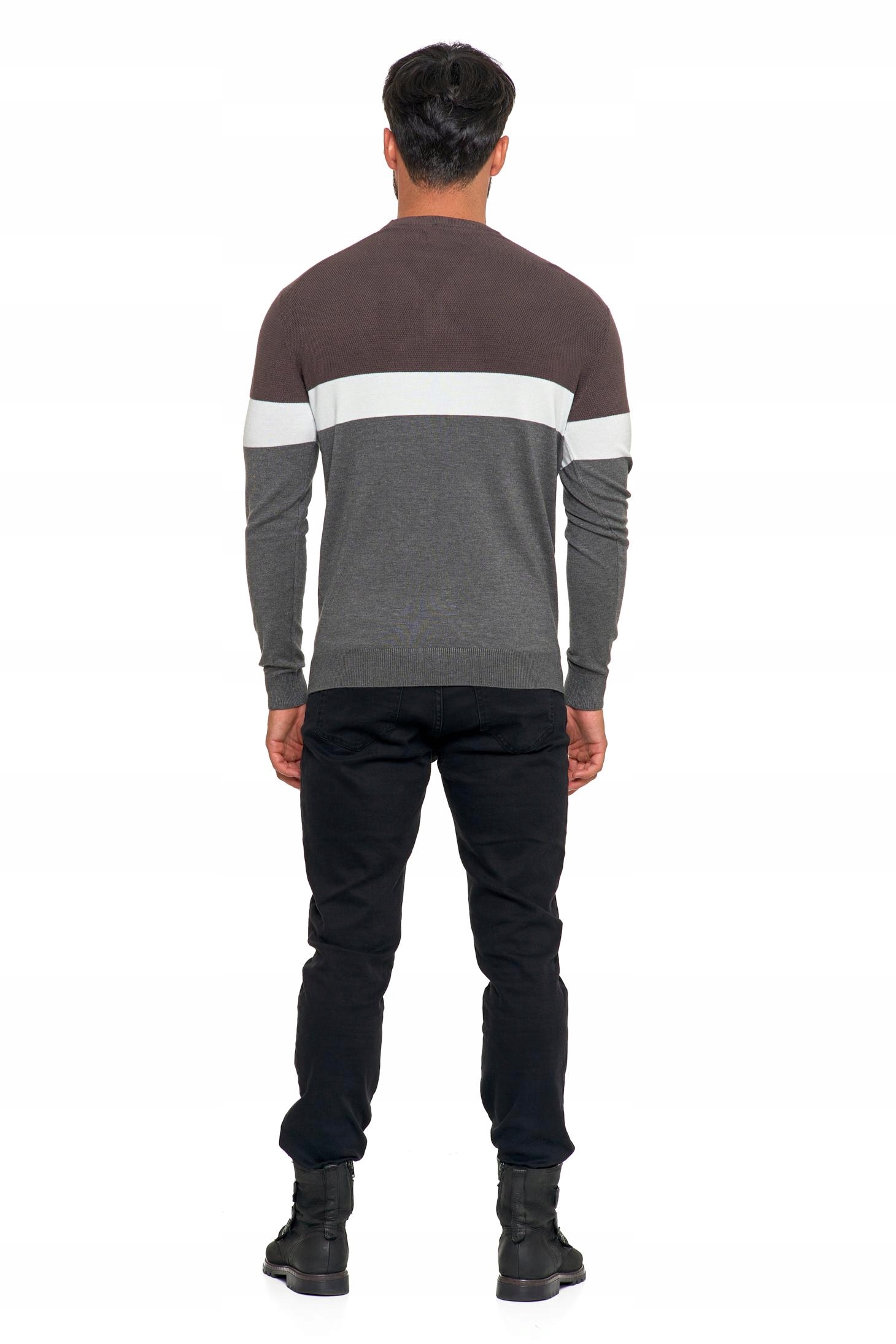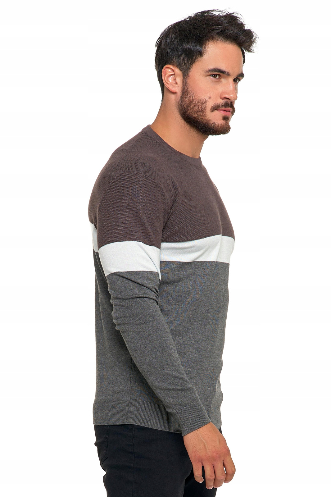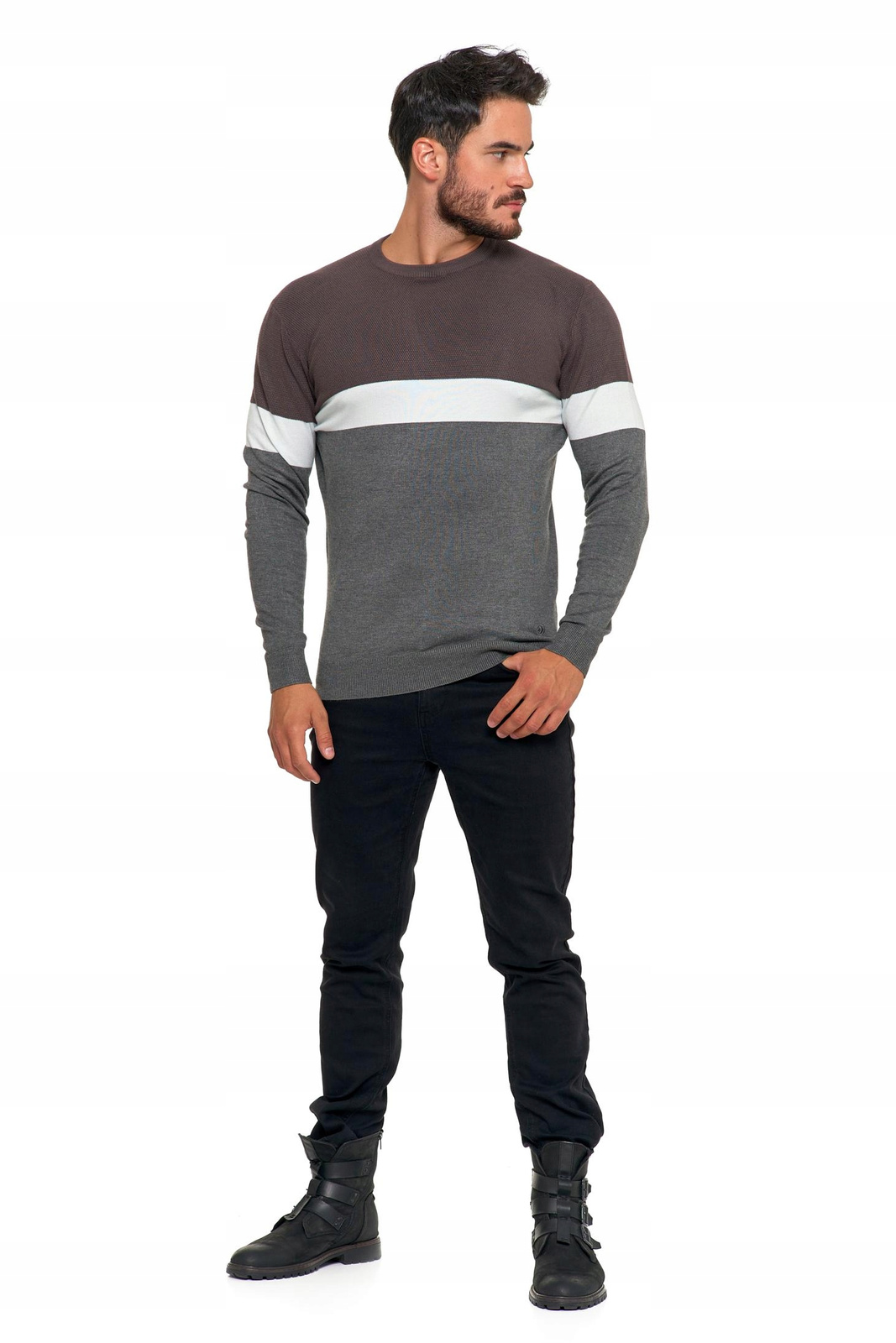 Sweter Męski Elegancki w Paski Okrągły Dekolt Klasyczny Wiskoza MORAJ