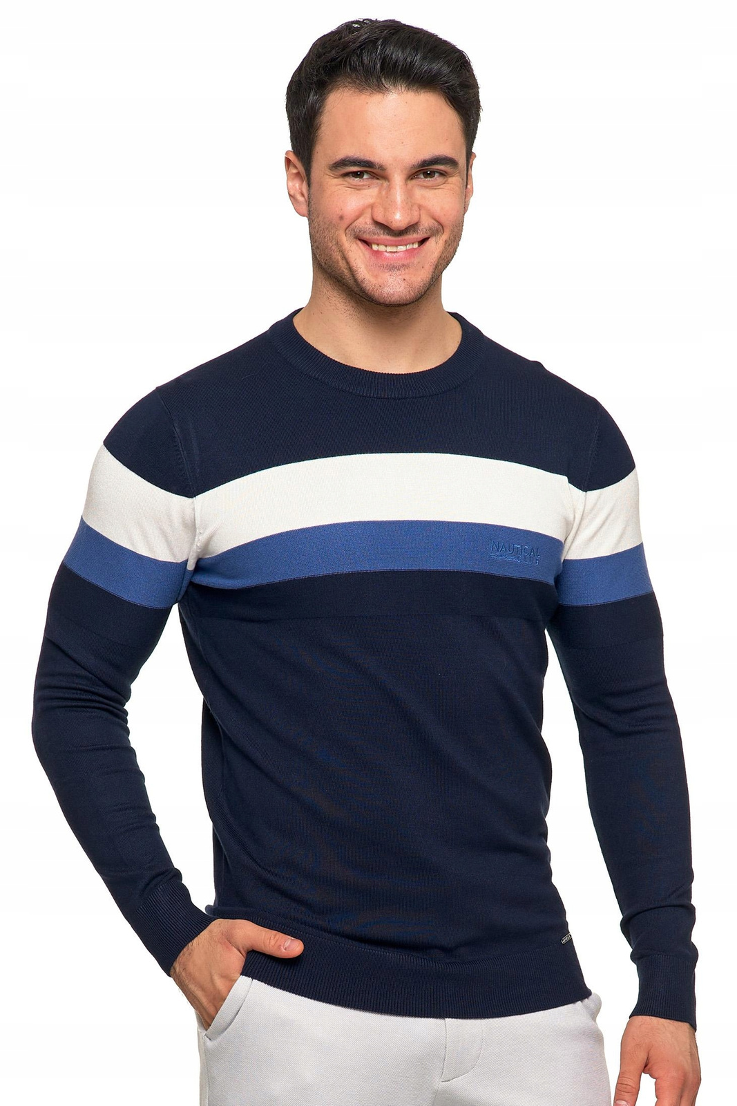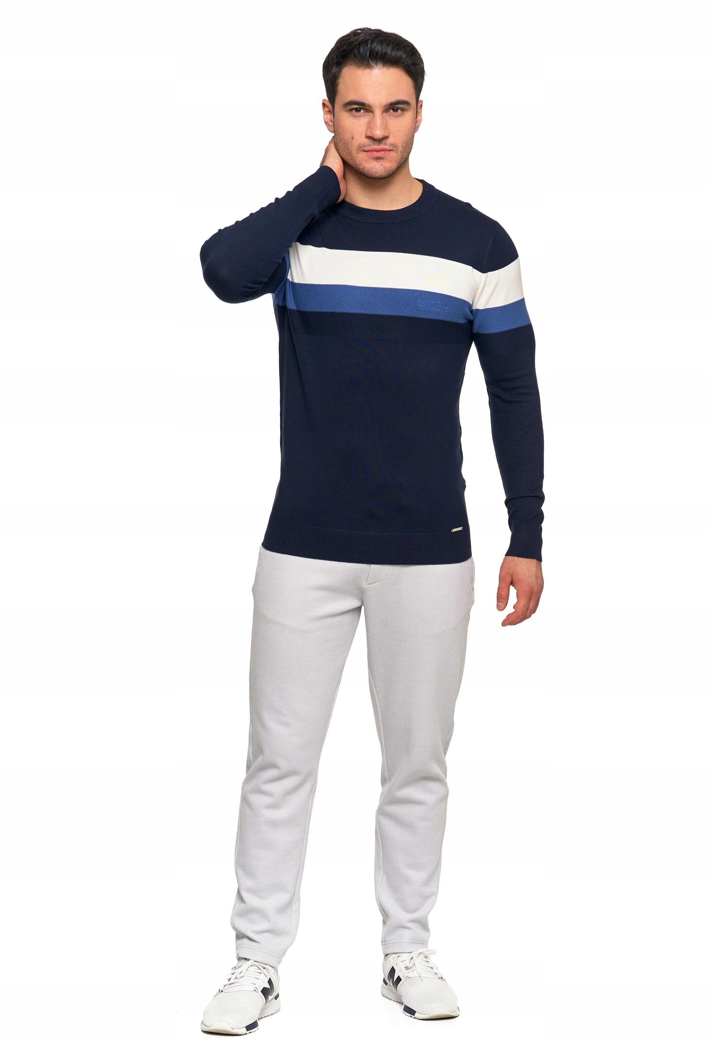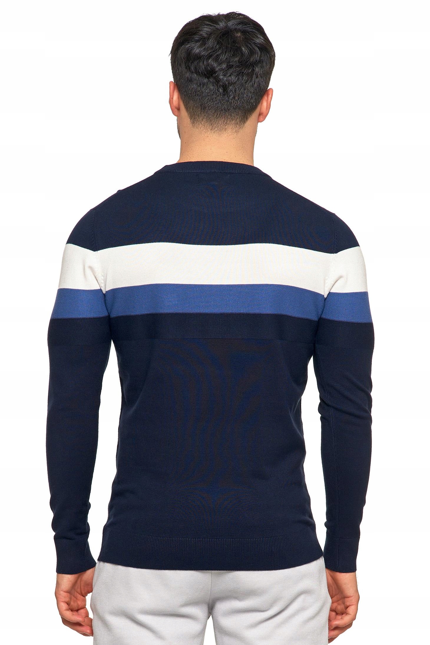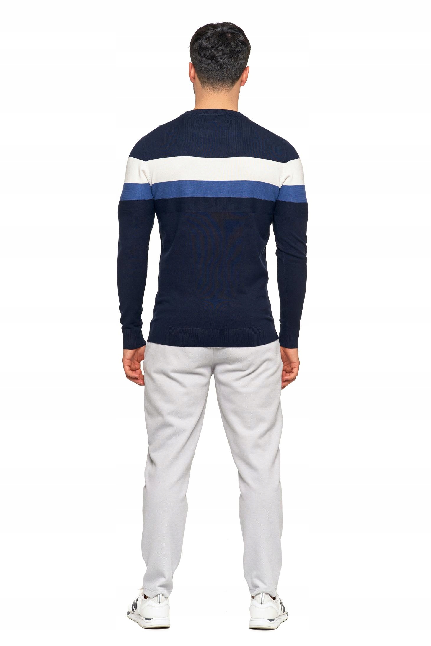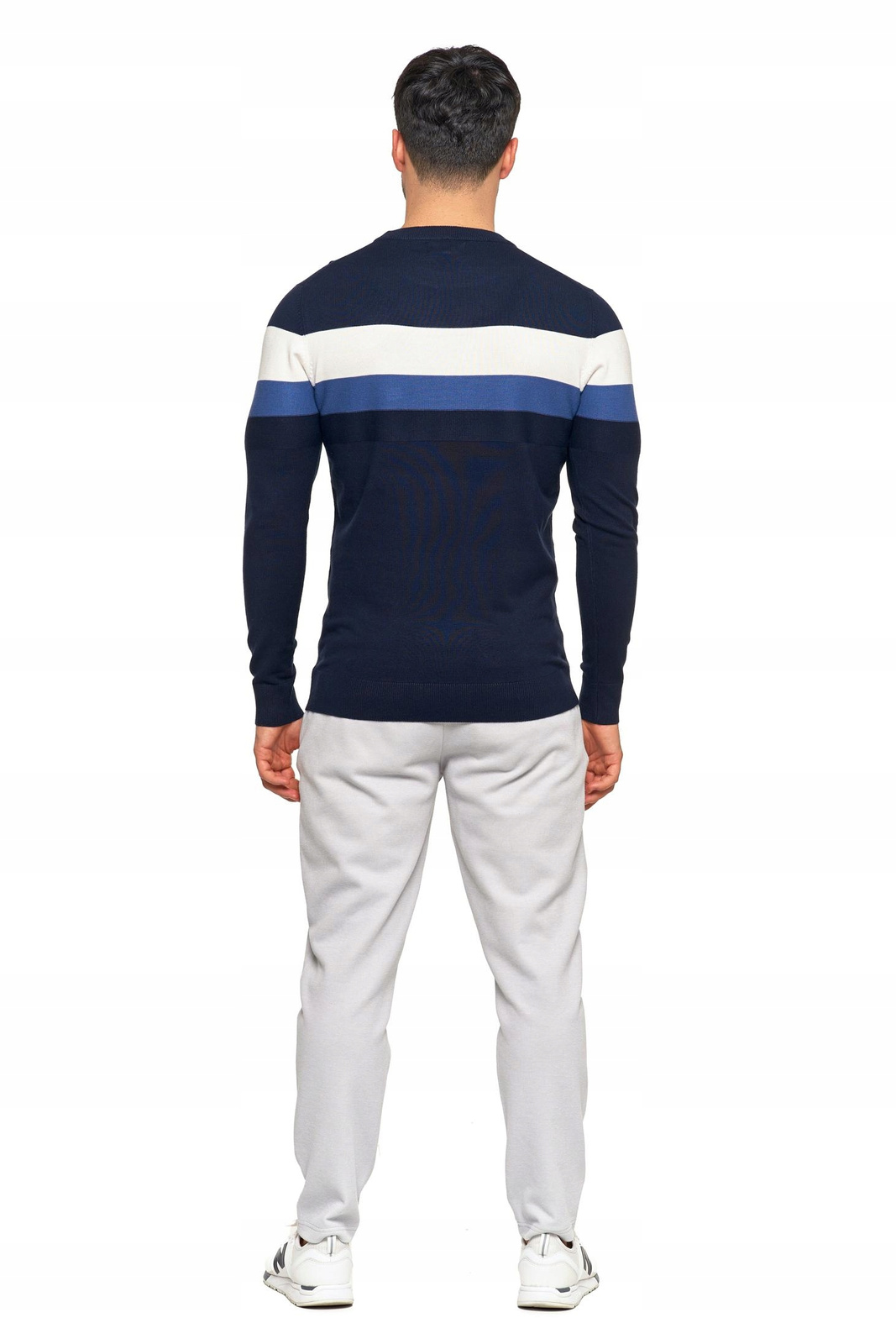Sweter Męski Okrągły Dekolt Klasyczny Miękki z Wiskozy w Paski MORAJ
