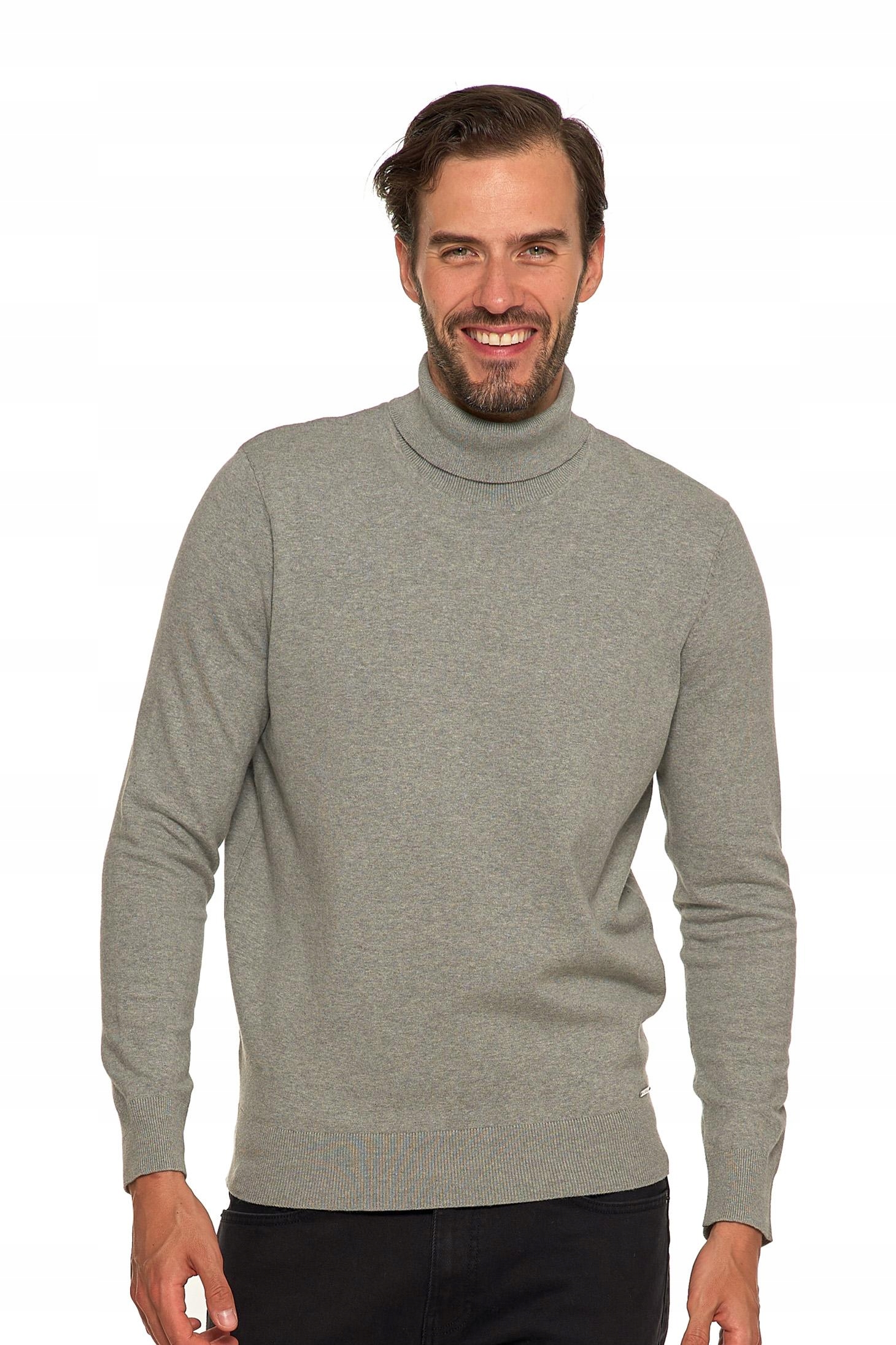 Sweter Męski z Golfem Klasyczny Bawełna Modny Wygodny Szary Golf MORAJ