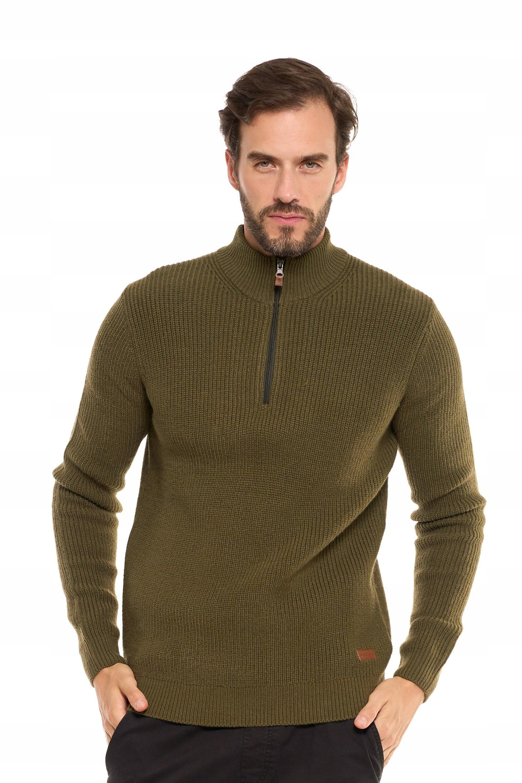 Wykonany z wysokiej jakości dzianiny o wyraźnym splocie, sweter ten zapewnia komfort termiczny nawet w chłodniejsze dni. Charakterystyczna stójka z zamkiem 1/4 dodaje elegancji i funkcjonalności, pozwalając na regulację otwarcia kołnierza w zależności od potrzeb. Dzięki prostemu, ale gustownemu krojowi, sweter ten świetnie komponuje się zarówno z codziennymi stylizacjami, jak i bardziej formalnymi zestawami. Długie rękawy zakończone prążkowanymi mankietami dbają o idealne dopasowanie do sylwetki, a dodatkowe prążkowane wykończenie dolnej części swetra zapewnia trwałość i wygodę noszenia. To uniwersalny element garderoby, który sprawdzi się w każdej sytuacji - na spotkaniach towarzyskich, podczas spacerów czy w biurze. Jego minimalistyczny design podkreśla męską sylwetkę, a jednocześnie pozostaje elegancki i ponadczasowy.