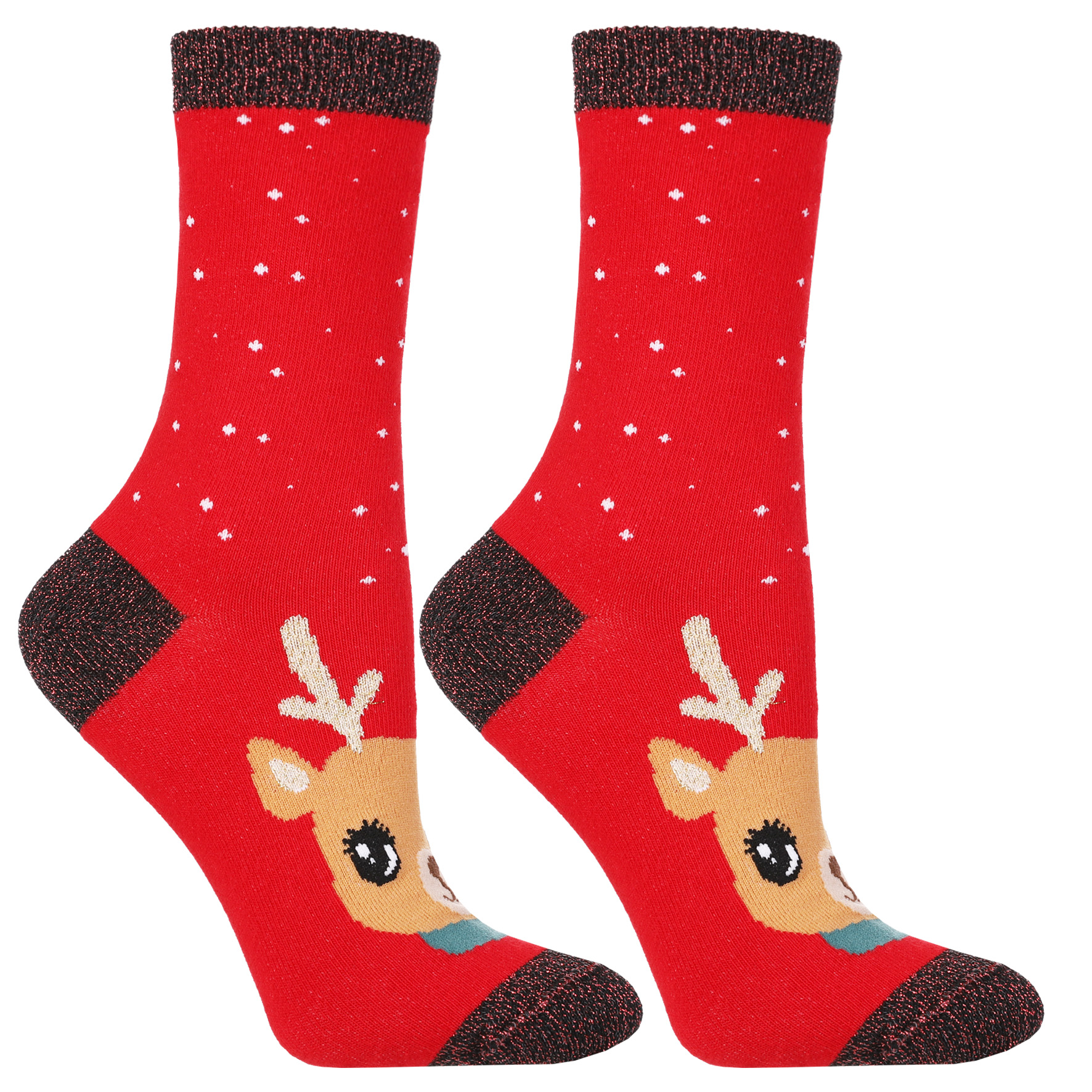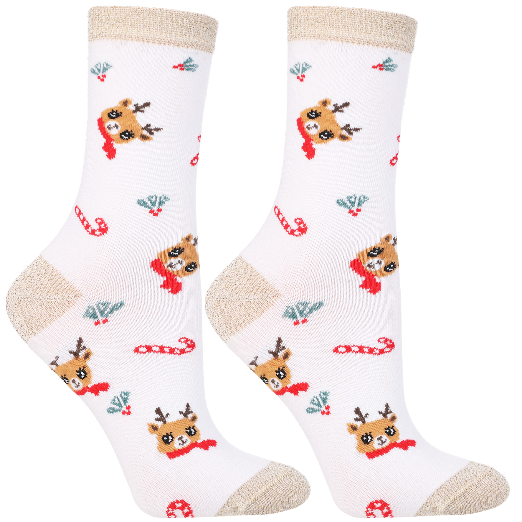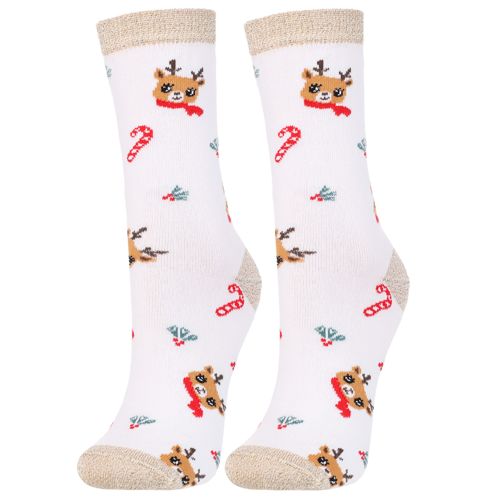 - Świąteczny design: Skarpetki w urocze, radosne wzory z motywem reniferów, które natychmiast wprowadzają w bożonarodzeniowy nastrój.