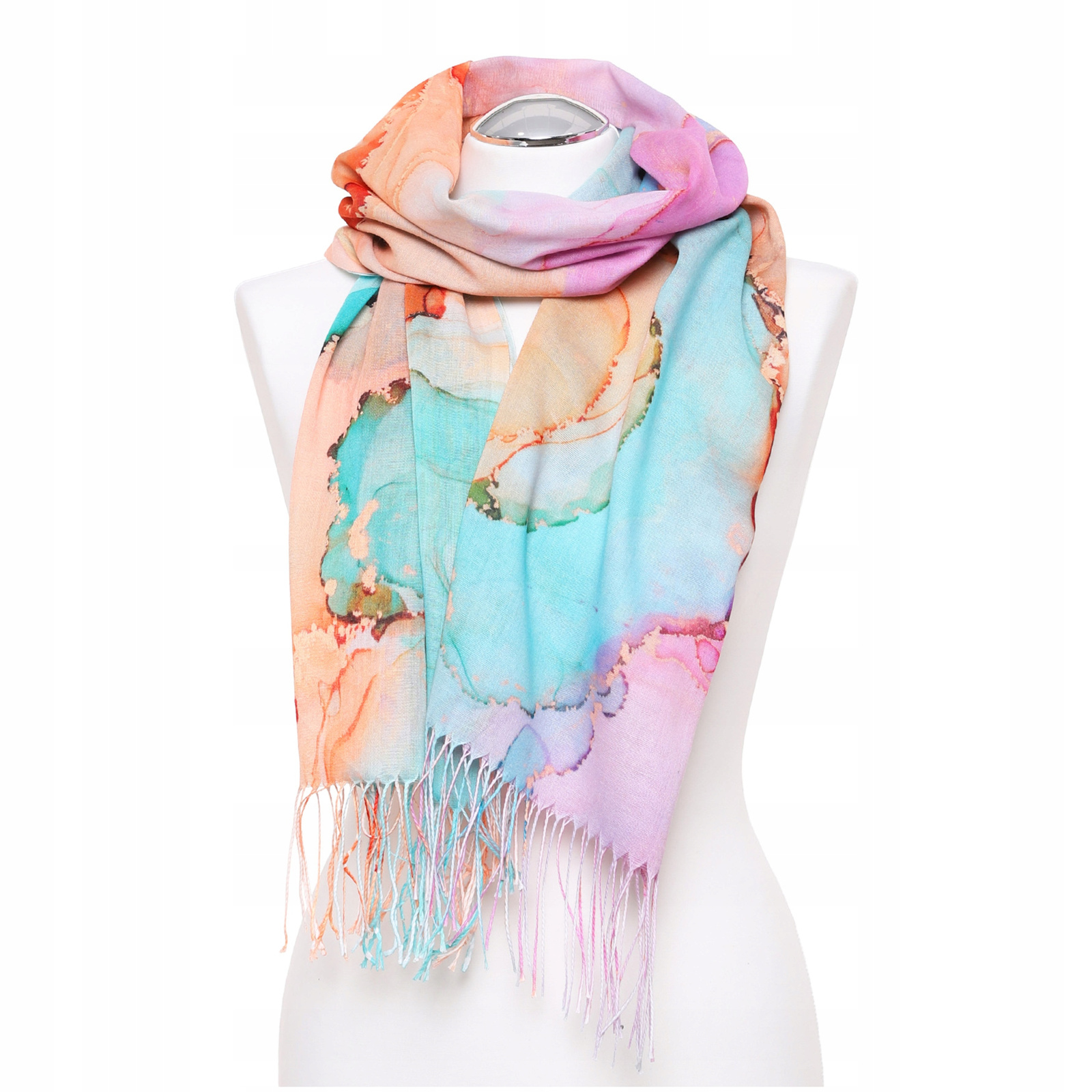 Szal Damski Duży z Frędzlami Gładki Kolorowy Modny Wiosenny Szalik MORAJ