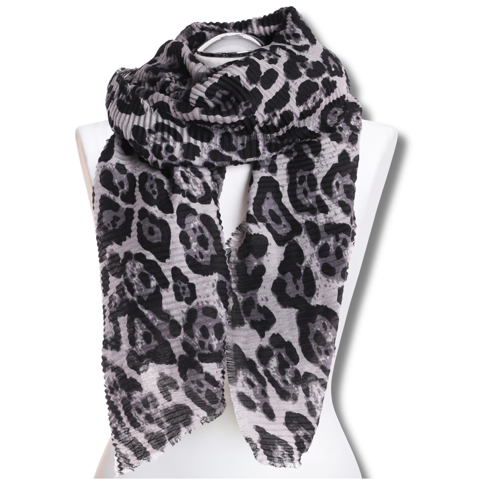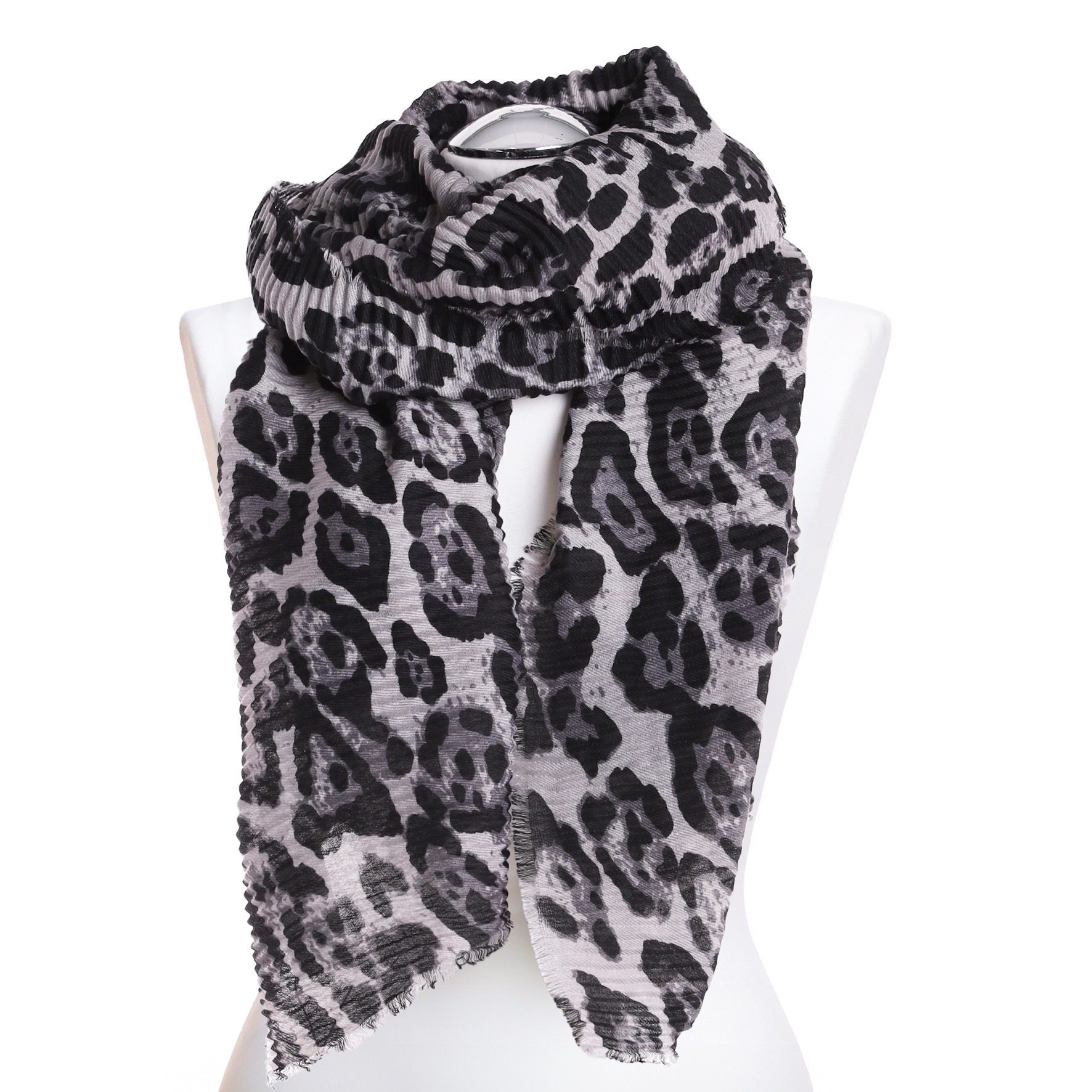Ten cienki, damski szal to idealny dodatek, który ożywi każdą jesienną stylizację. Wykonany z lekkiego, zwiewnego materiału, zapewni Ci komfort noszenia, a modny wzór w panterkę doda drapieżnego, a jednocześnie eleganckiego charakteru.