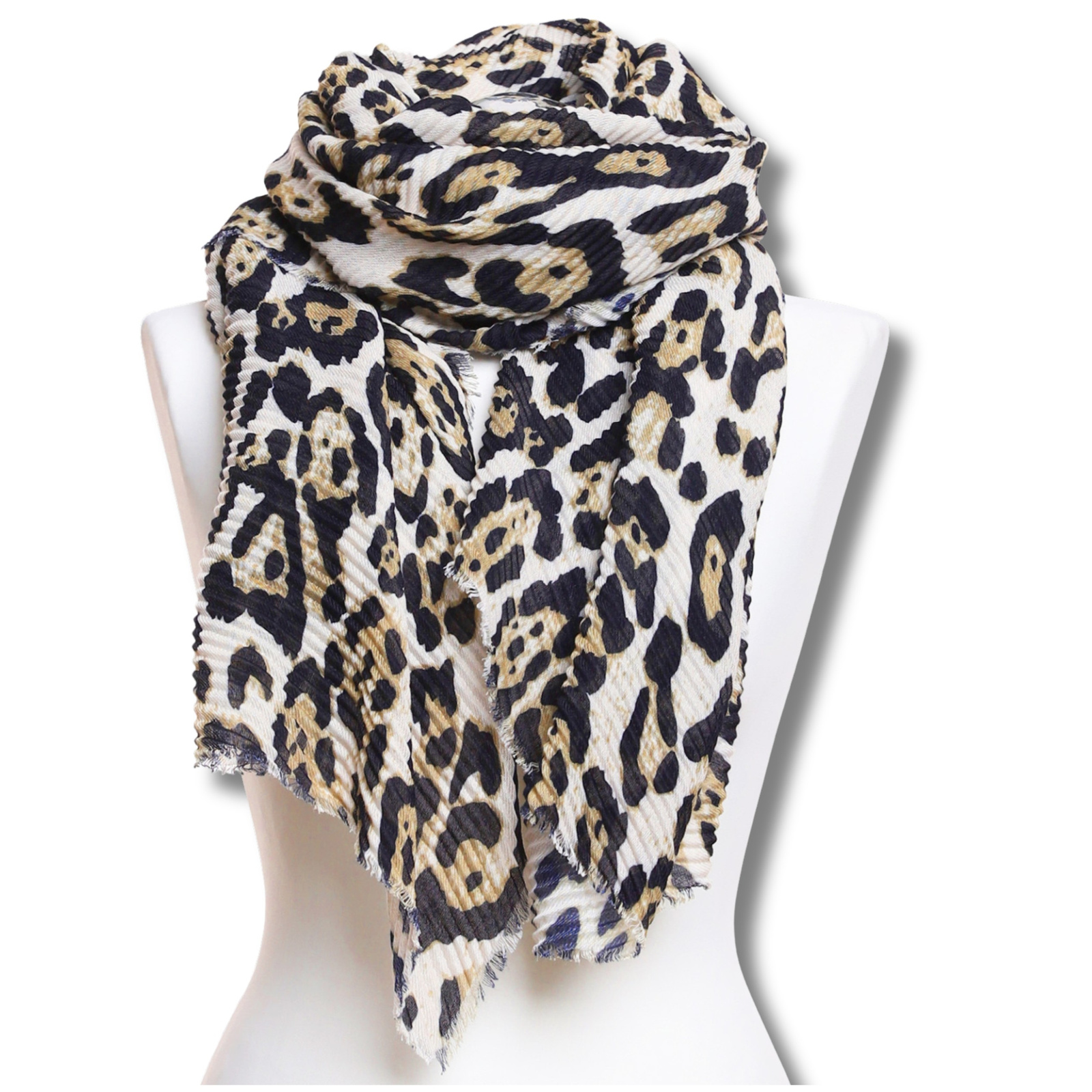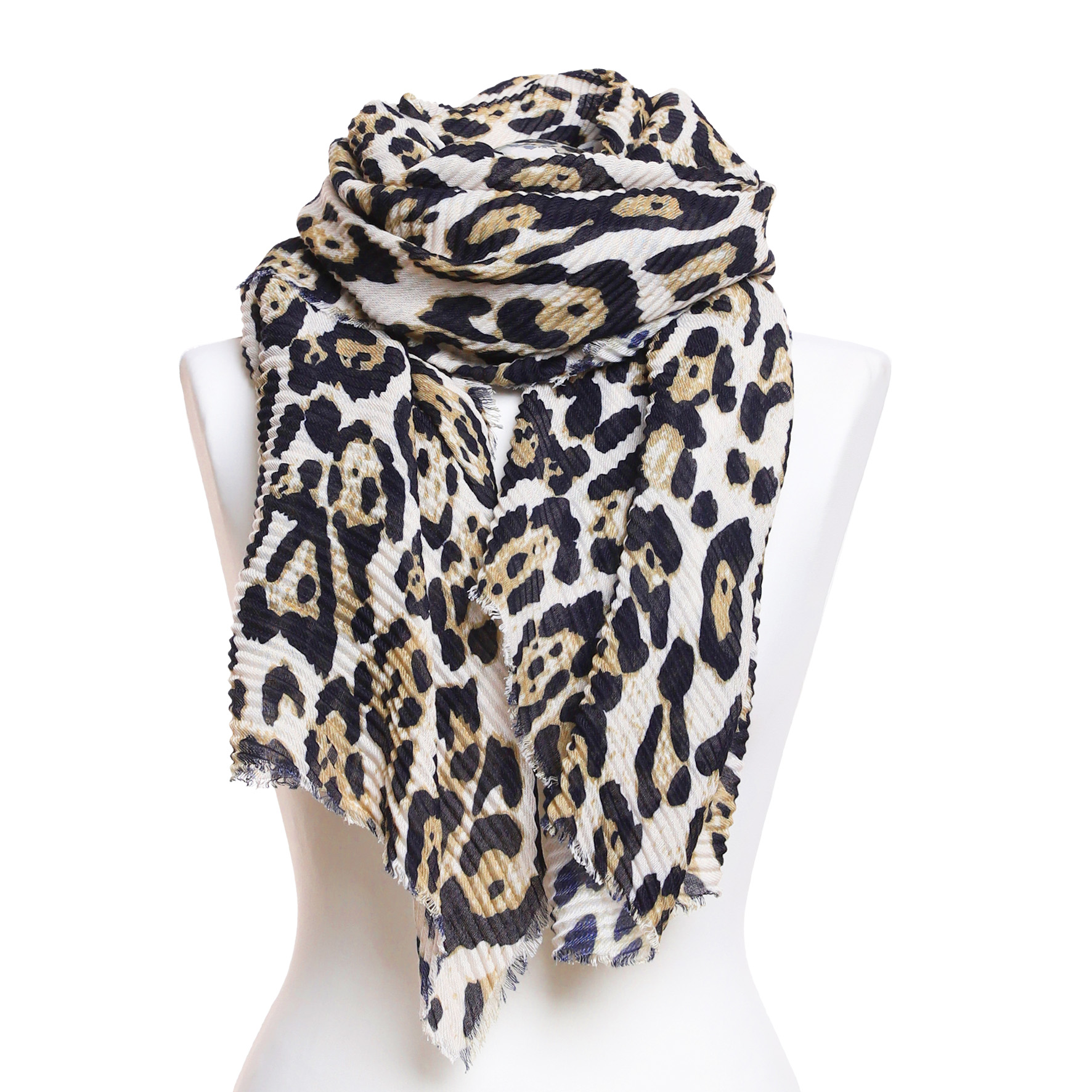 Ten cienki, damski szal to idealny dodatek, który ożywi każdą jesienną stylizację. Wykonany z lekkiego, zwiewnego materiału, zapewni Ci komfort noszenia, a modny wzór w panterkę doda drapieżnego, a jednocześnie eleganckiego charakteru.