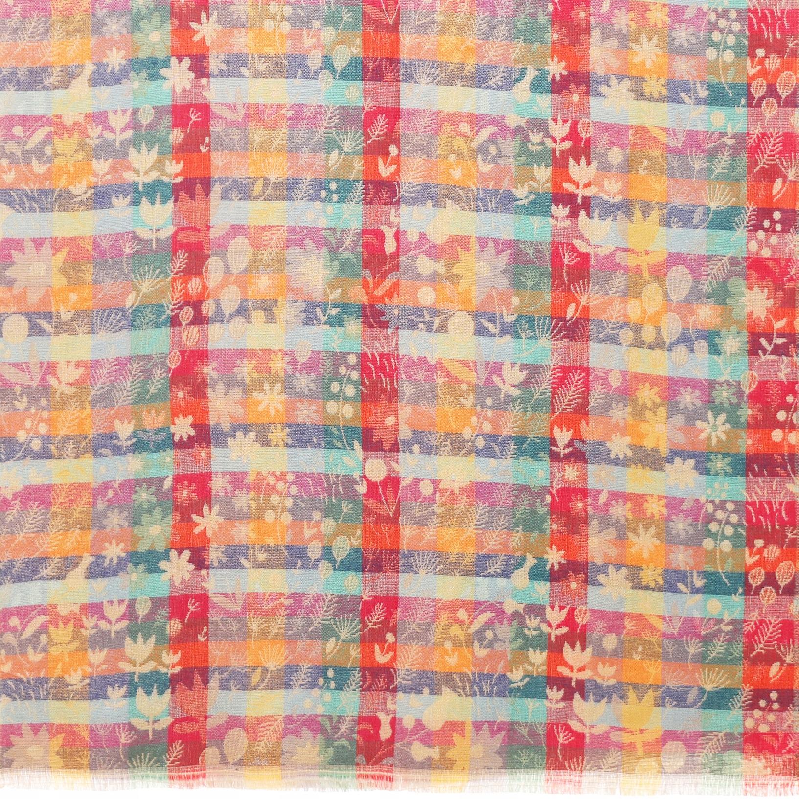 Jego unikalny design łączy bogate, kolorowe wzory kwiatowe z klasyczną kratką, tworząc harmonijną i przyciągającą wzrok kompozycję. Wiskoza, z której został uszyty, jest miękka, delikatna dla skóry i doskonale układa się na sylwetce, zapewniając komfort noszenia przez cały dzień.
