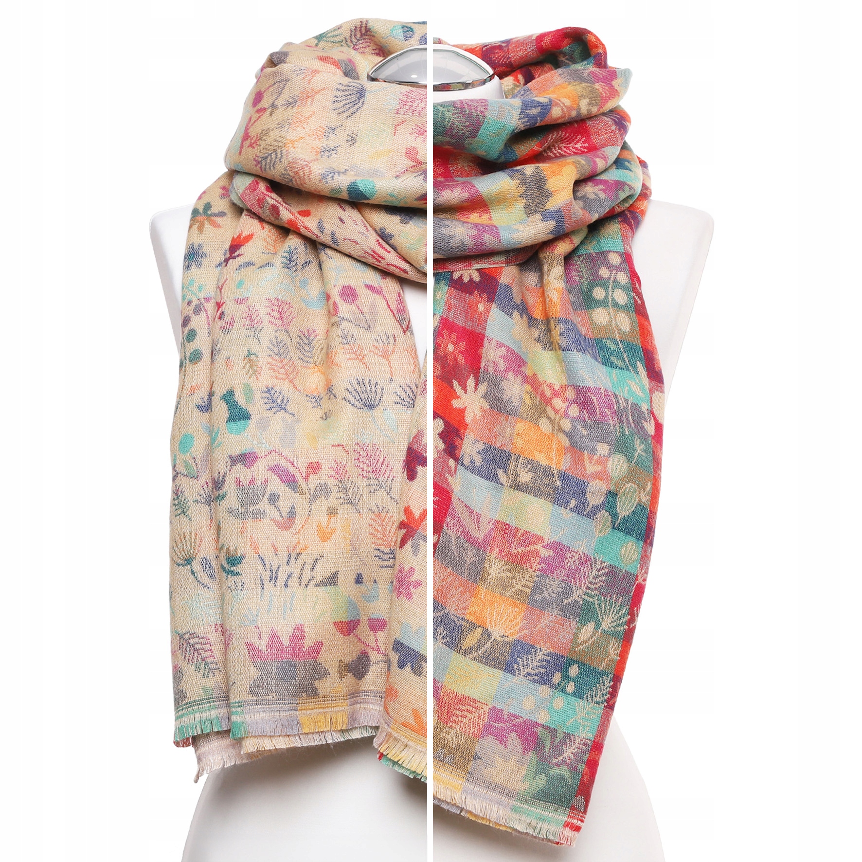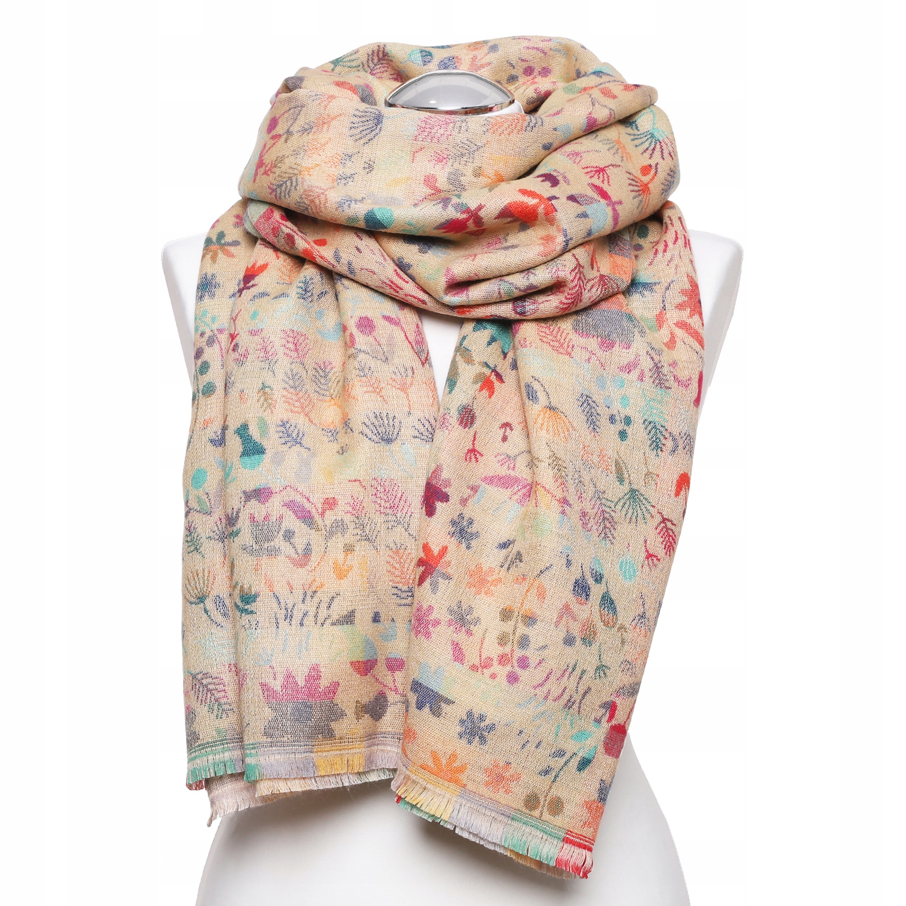 SZAL DAMSKI Szalik Kolorowy Boho Duży Elegancki Jesienny w Kwiaty MORAJ