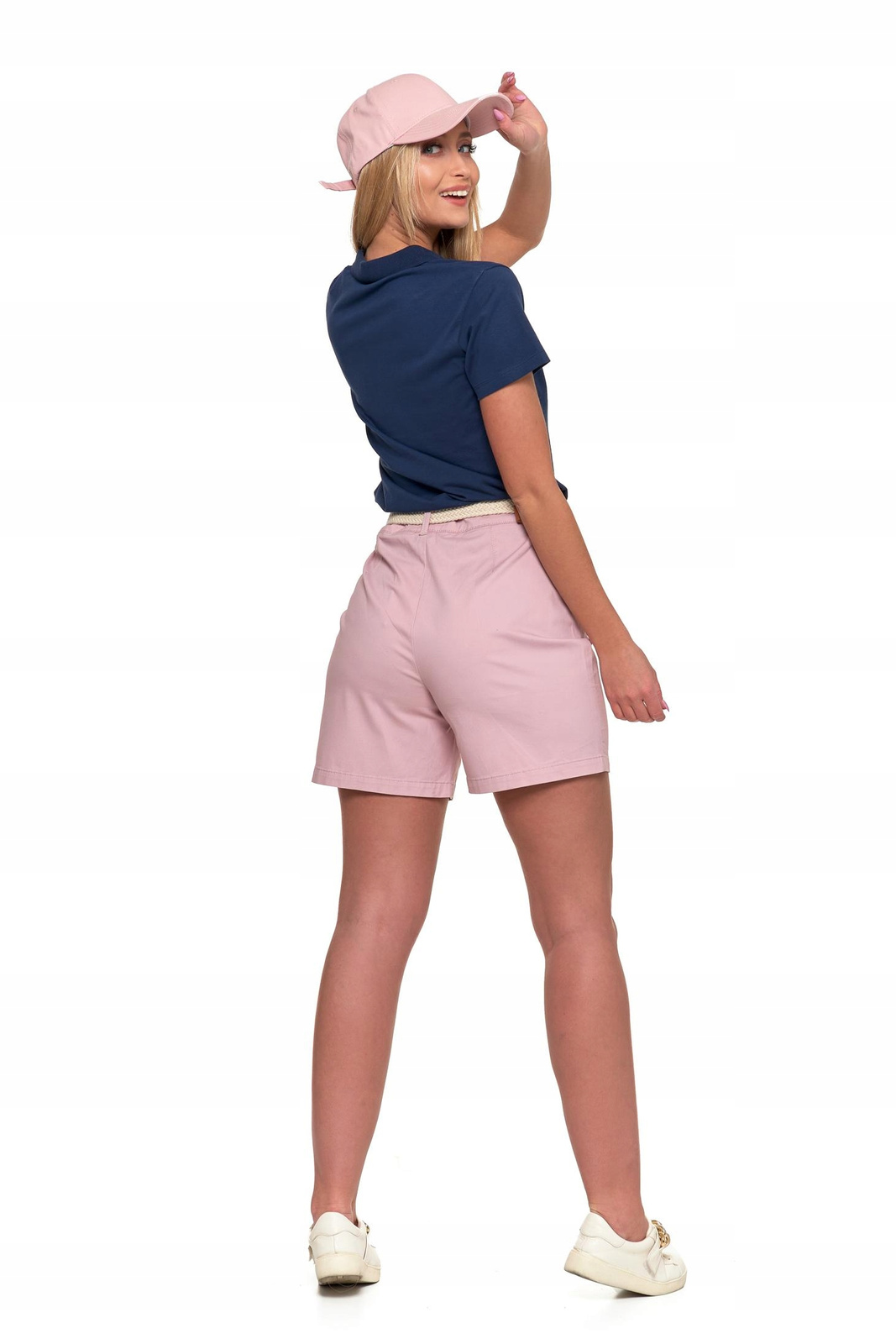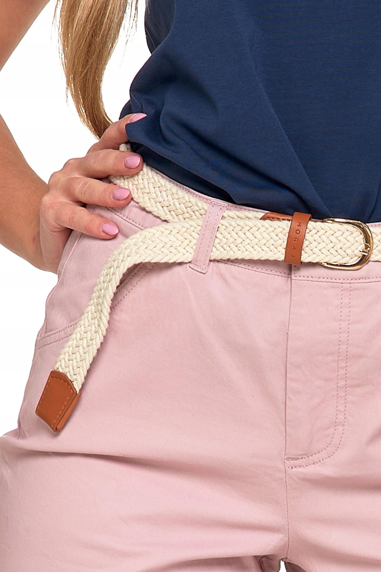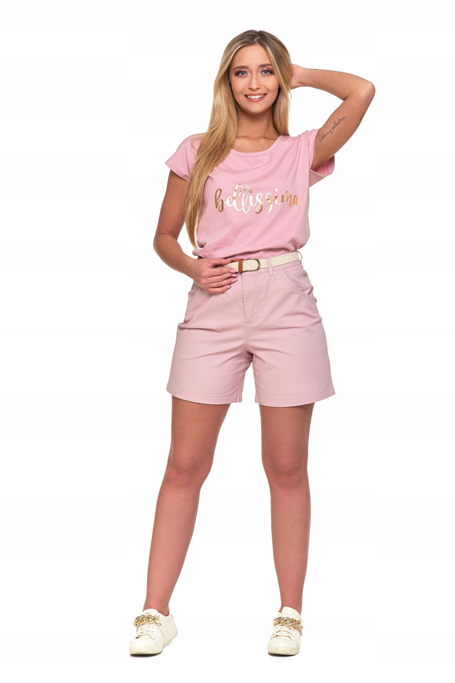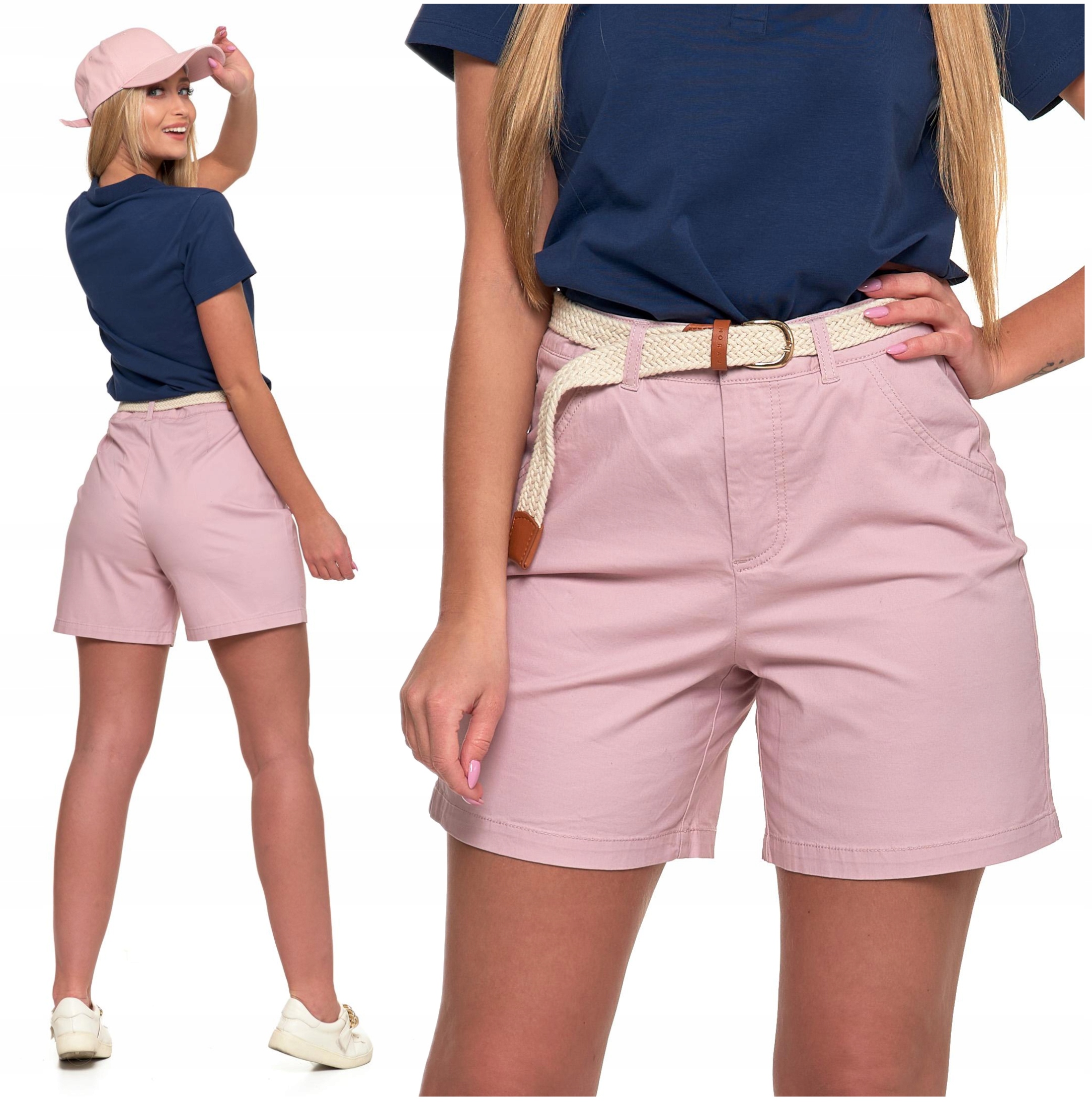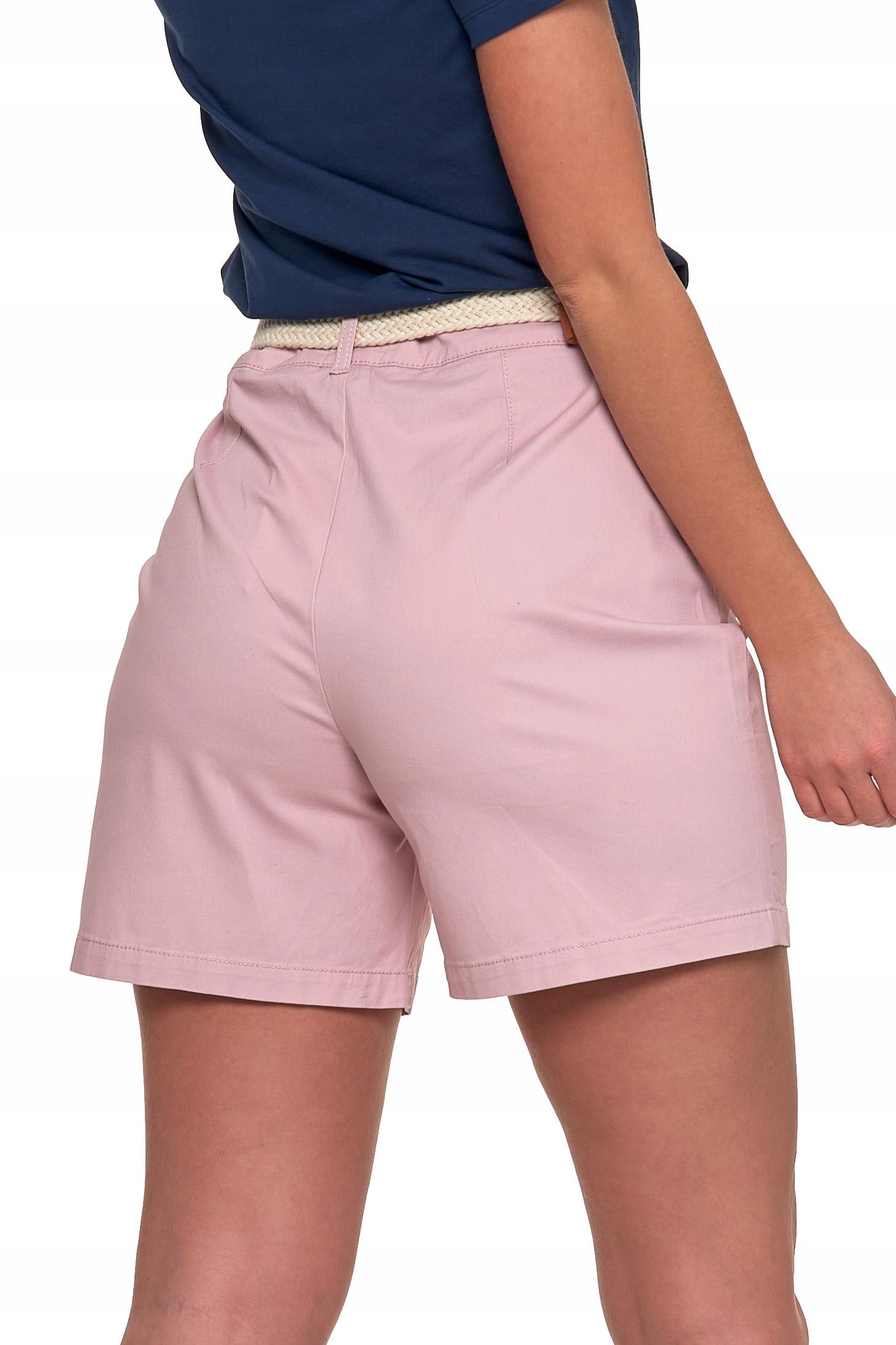 SZORTY DAMSKIE Krótkie Spodenki z Paskiem Eleganckie Modne Róż MORAJ