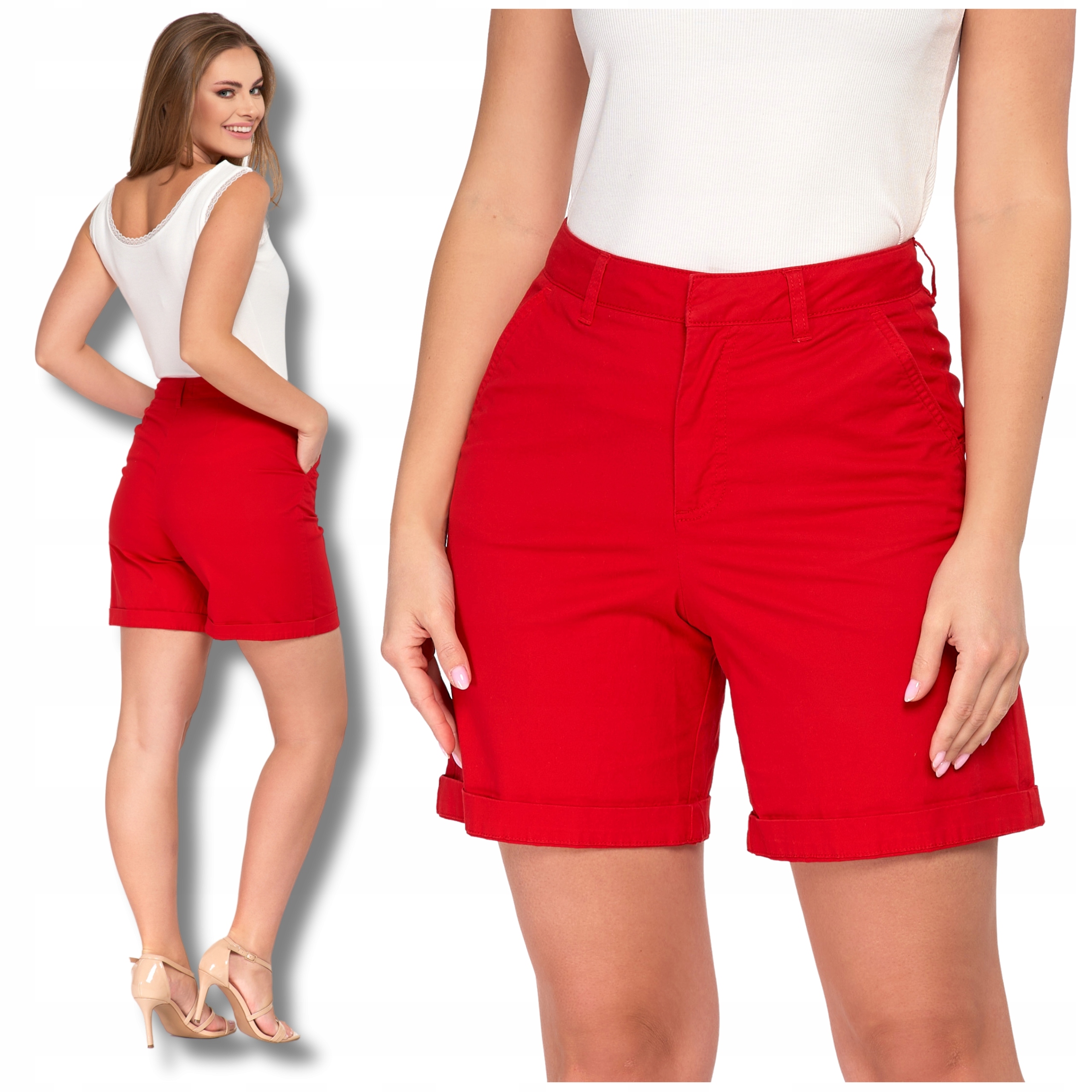 Szorty Damskie KRÓTKIE SPODENKI z Wysokim Stanem PASEK GRATIS MORAJ