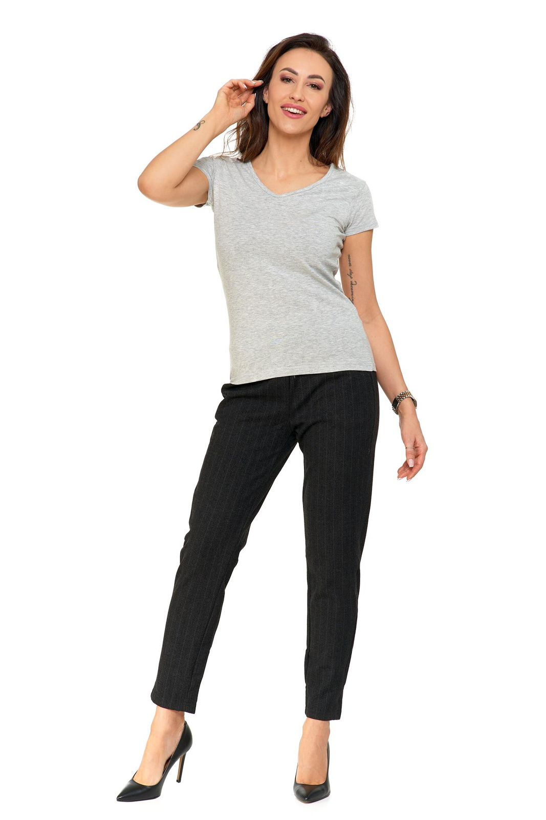 Koszulka damska z dekoltem V to klasyka w wydaniu, idealna dla kobiet ceniących ponadczasową elegancję. Z kolekcji BASIC, ten T-shirt wyróżnia się prostotą formy, jednocześnie oferując subtelny fason lekko taliowany, który podkreśla kobiecą sylwetkę.