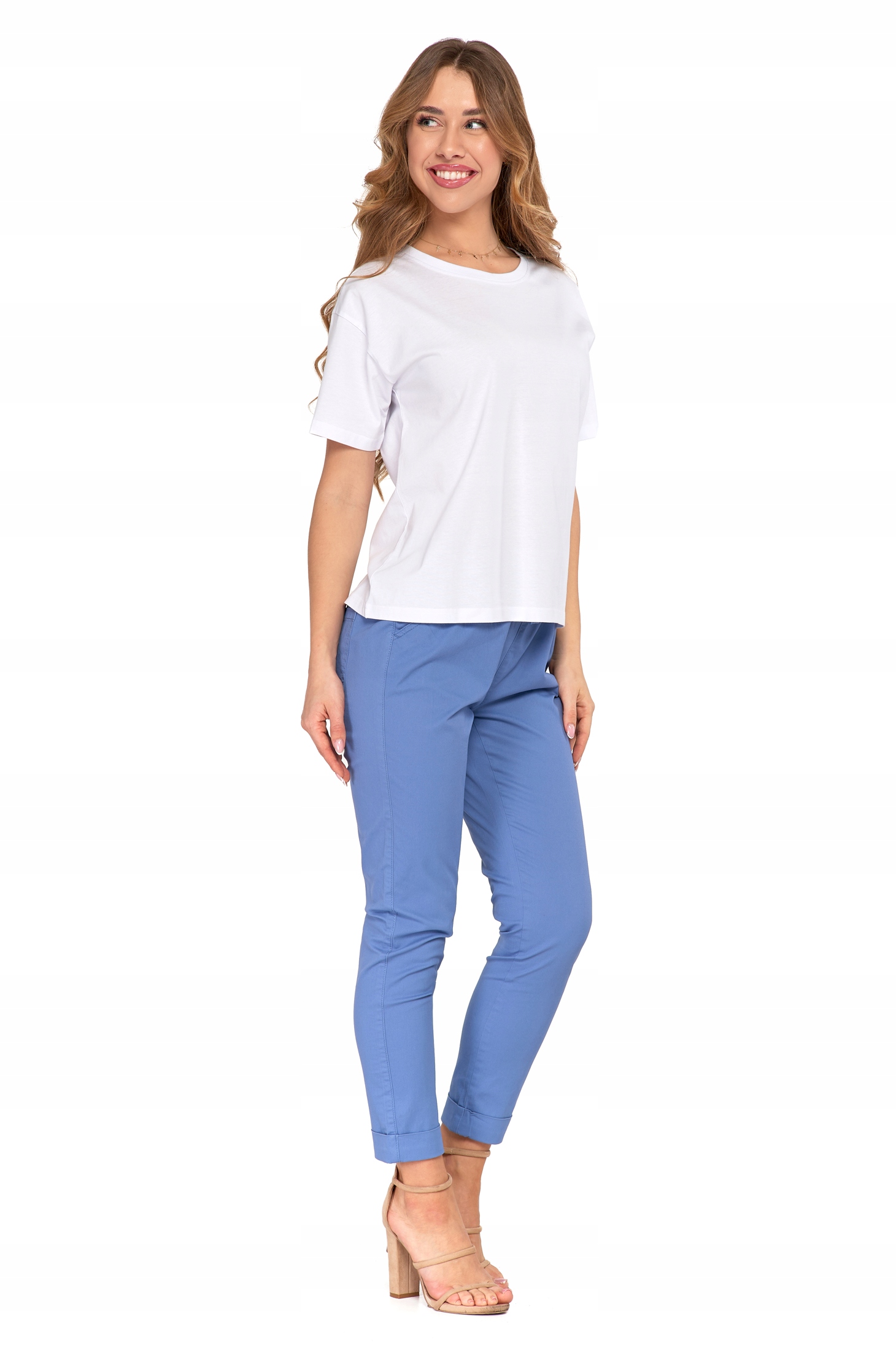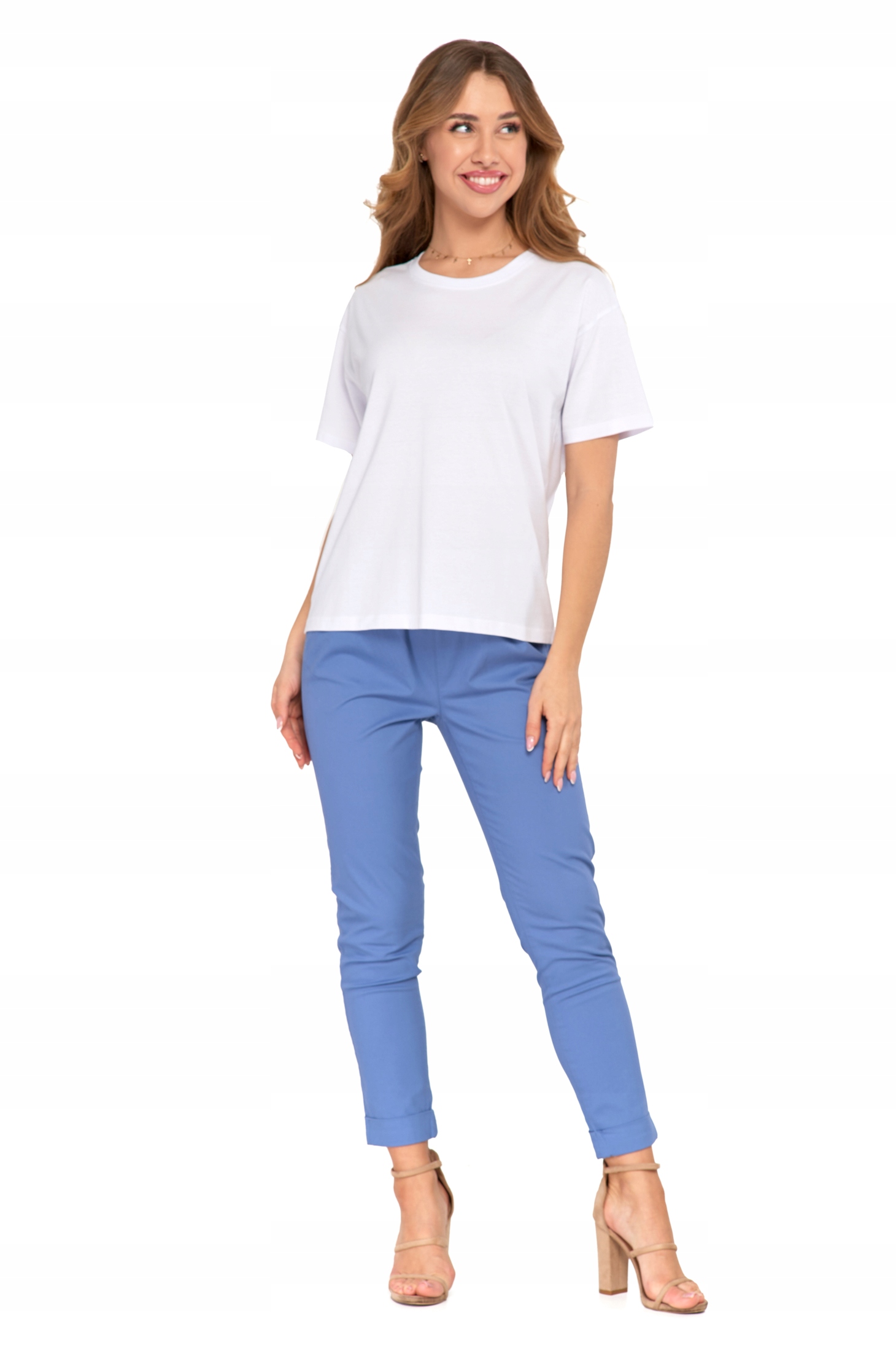 T-SHIRT DAMSKI Gładka Koszulka z Krótkim Rękawem Luźna Biała Bluzka MORAJ