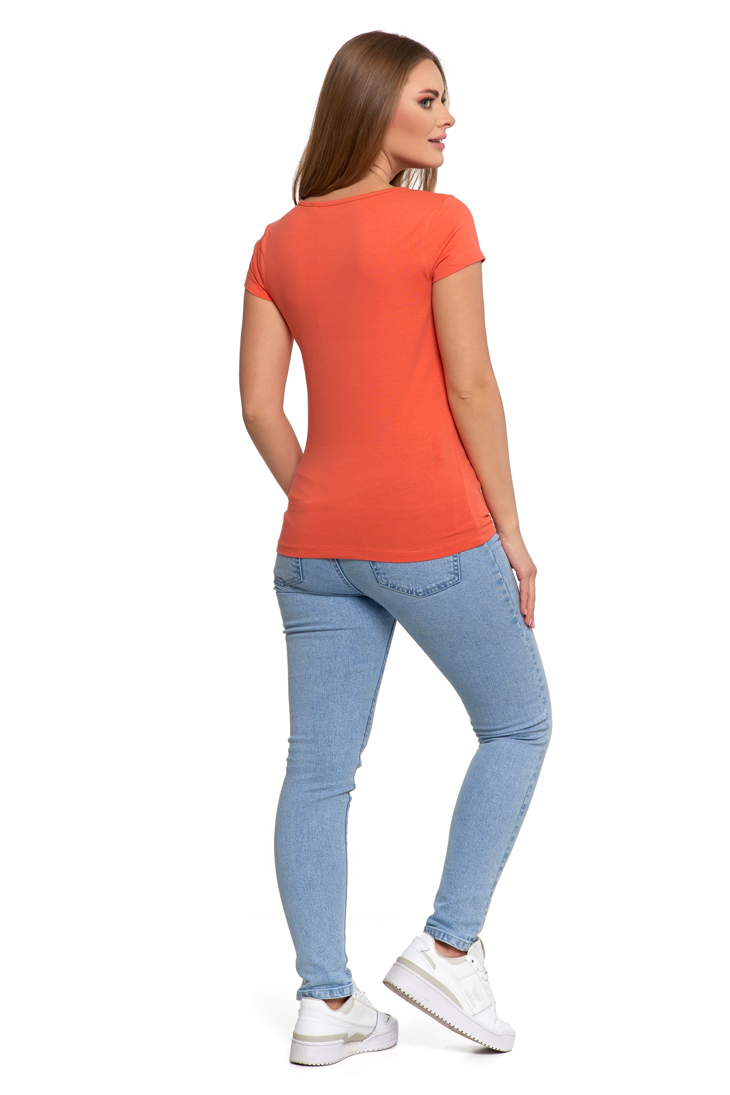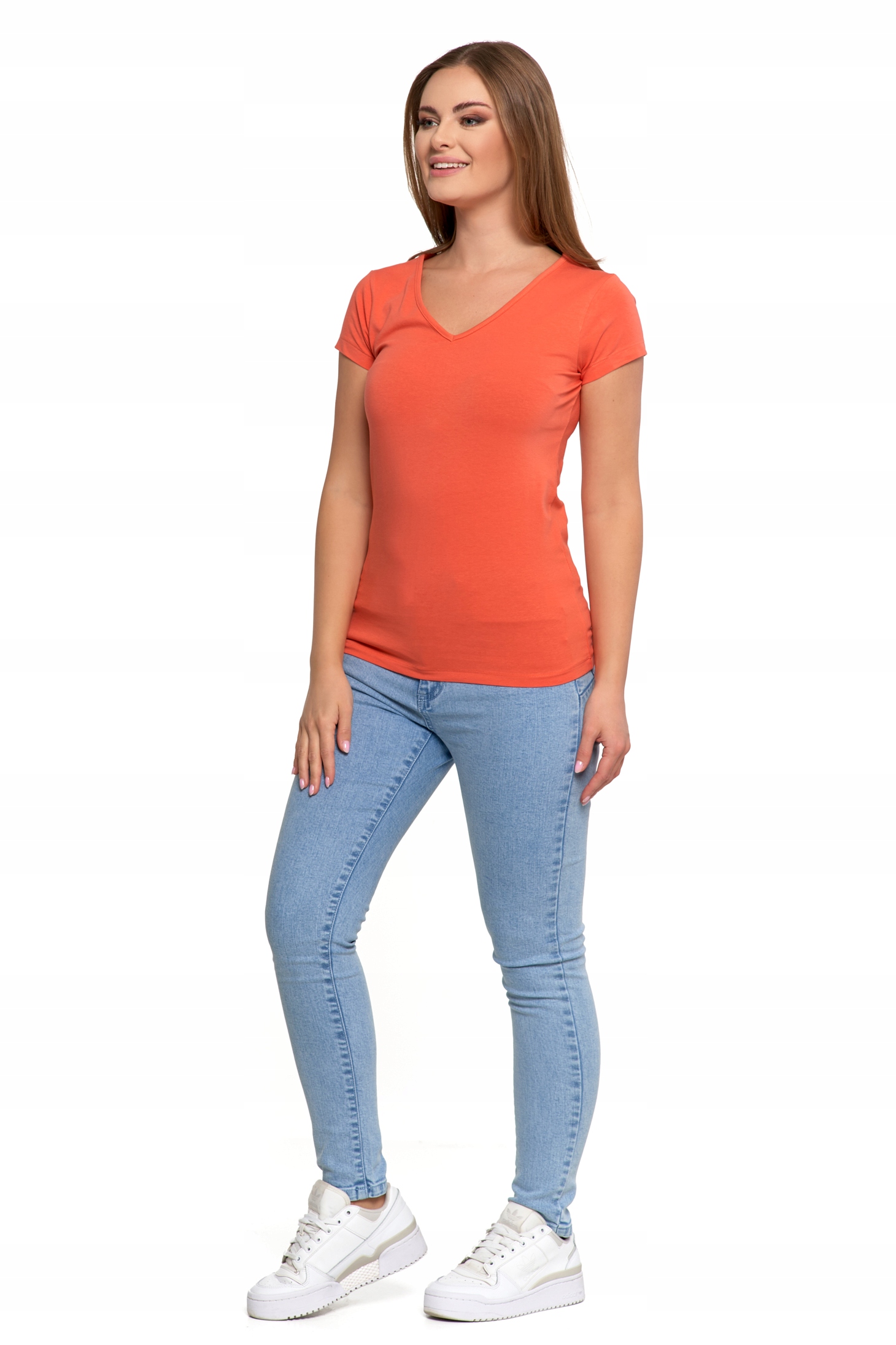 T-SHIRT DAMSKI z Krótkim Rękawem Dekolt ''V'' Koszulka Gładka MORAJ