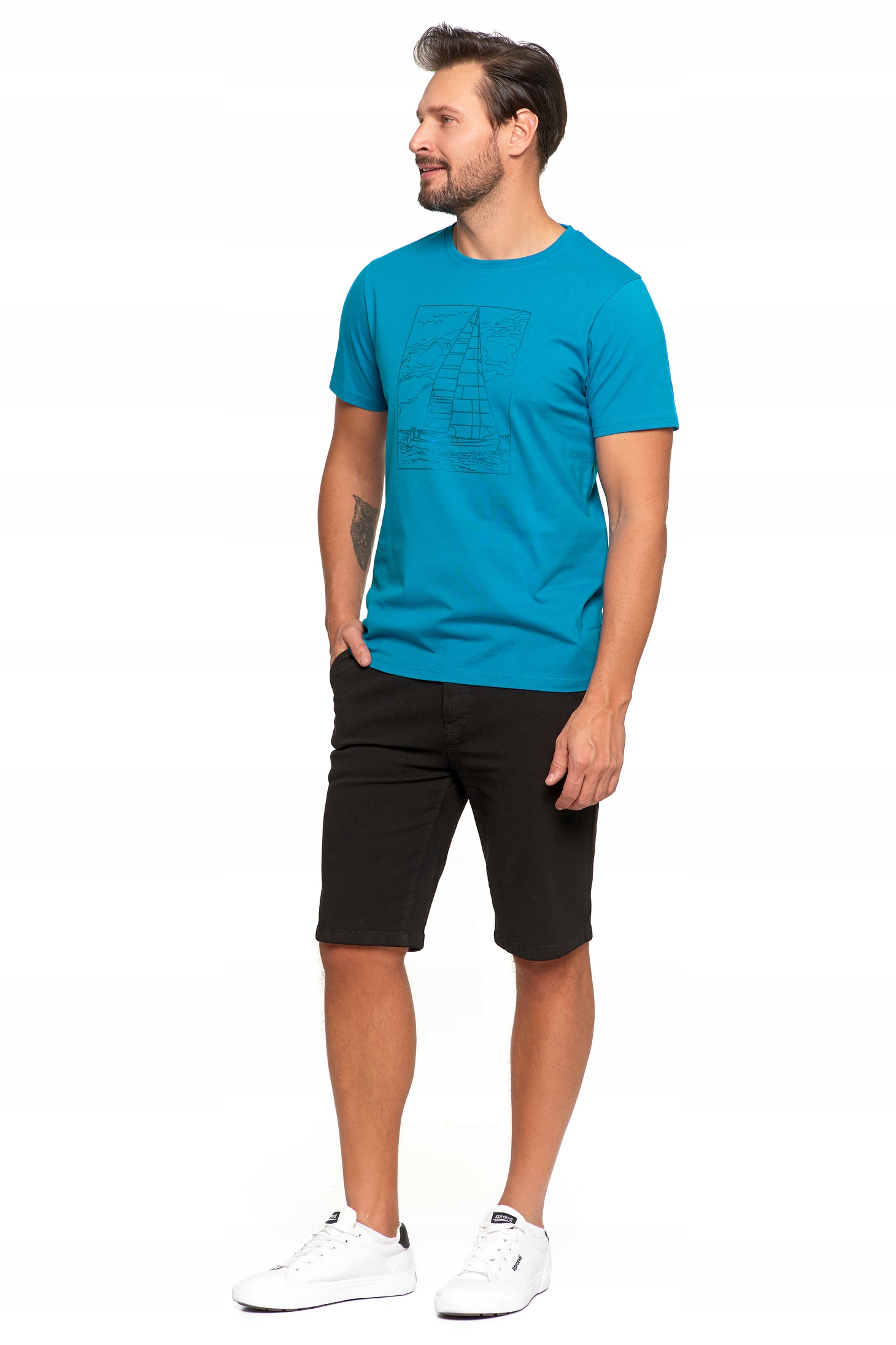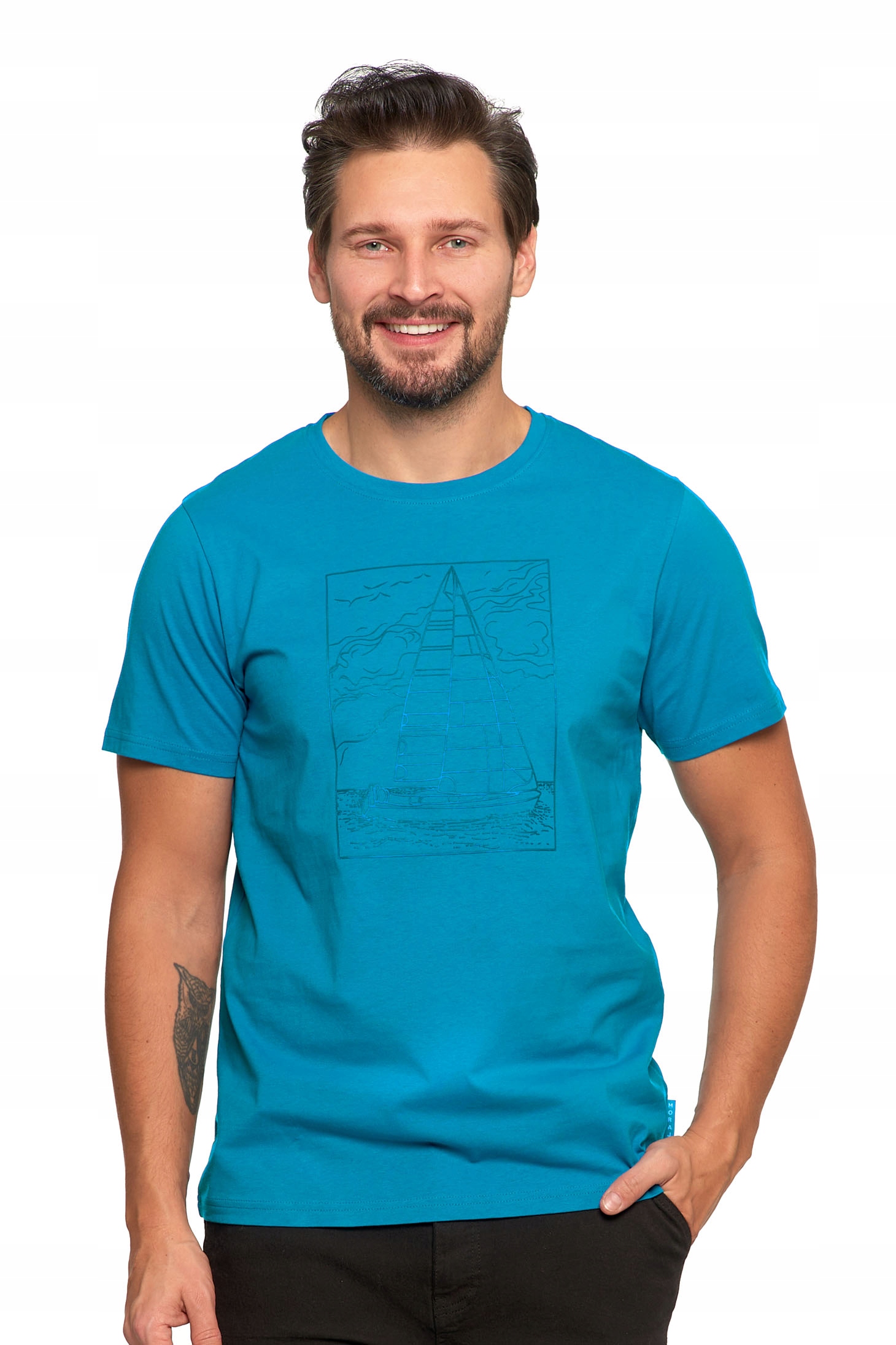 T-SHIRT MĘSKI Bawełniany Koszulka Krótki Rękaw Nadruk Żaglówki MORAJ