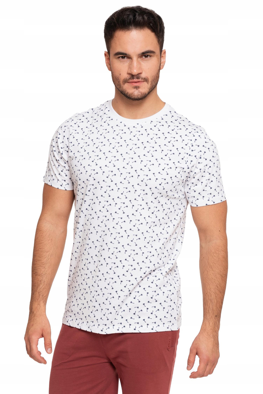 Koszulka charakteryzuje się klasycznym krojem z okrągłym dekoltem i krótkimi rękawami, co sprawia, że jest niezwykle praktyczna i łatwa w dopasowaniu do różnych typów sylwetki. Subtelny wzór w palmy dodaje koszulce tropikalnego nastroju i jest dyskretną odmianą od klasycznych jednolitych wzorów.