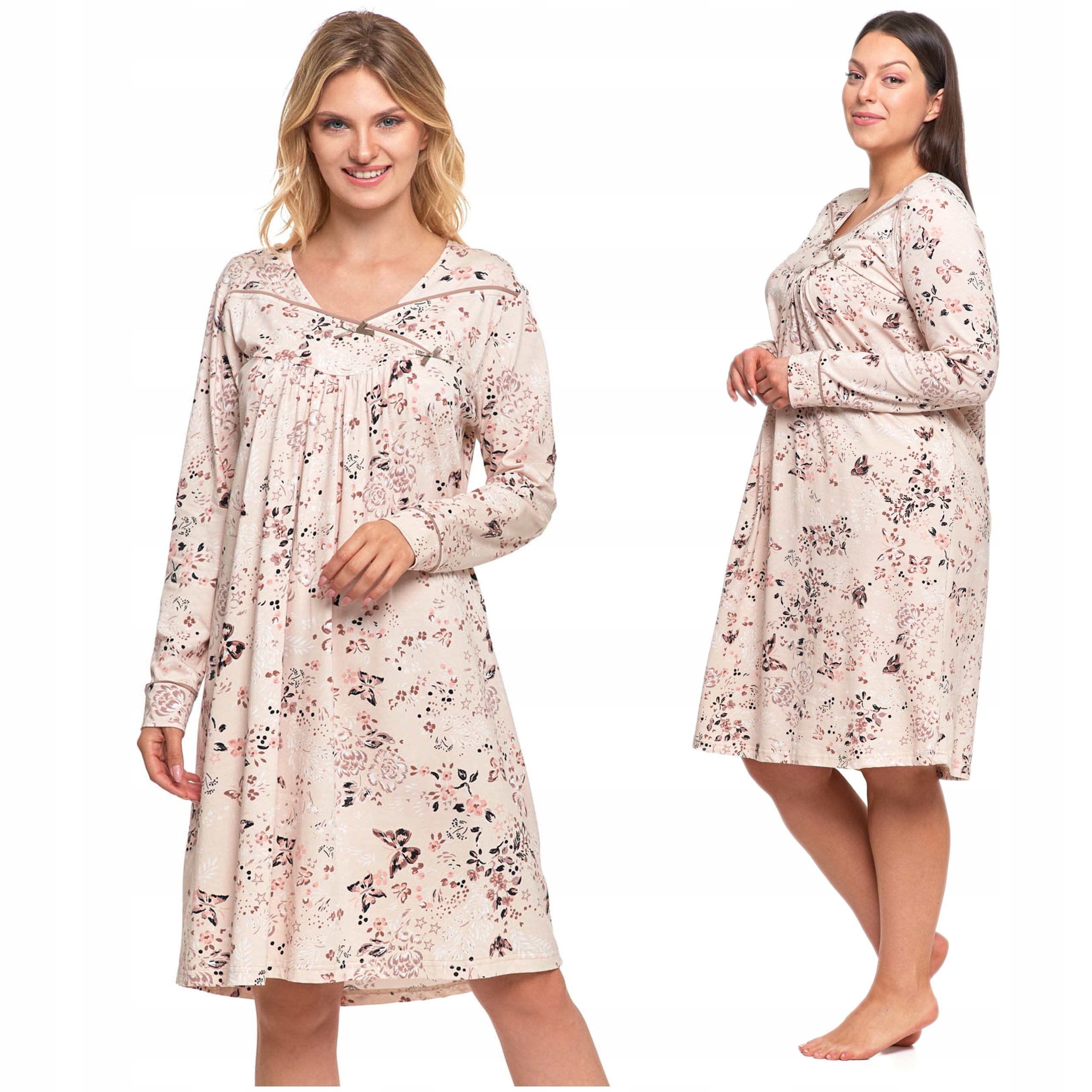 Urocza Koszula Nocna Damska Piżama Do Kolan Długi Rękaw Komfortowa MORAJ