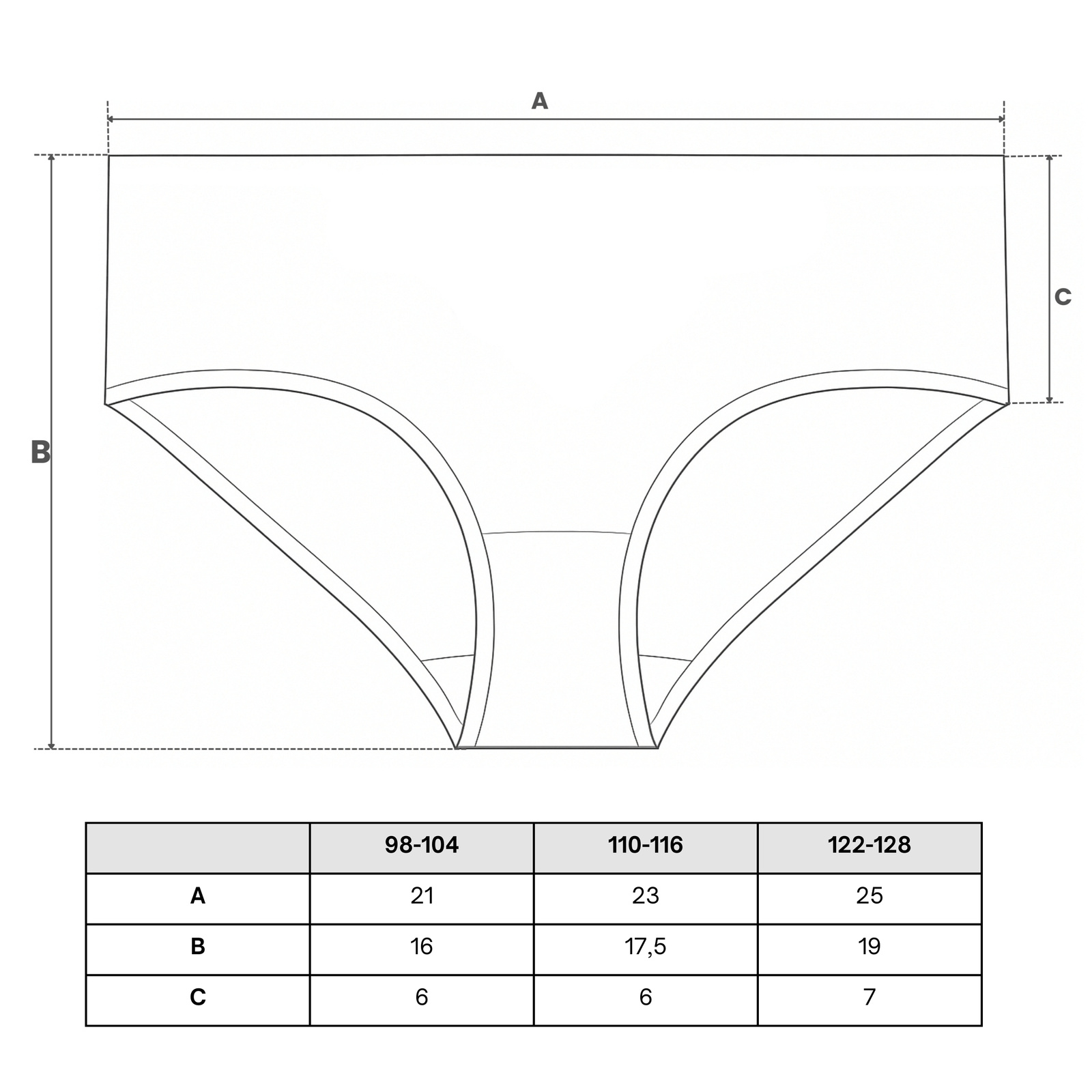 Komfortowy Krój: Nieuciskająca gumka: Zapewnia stabilność i utrzymuje majtki na miejscu, nie wpijając się w ciało. Płaskie wykończenie brzegów: Minimalizuje ryzyko otarć i podrażnień, zapewniając komfort nawet podczas najbardziej aktywnej zabawy.