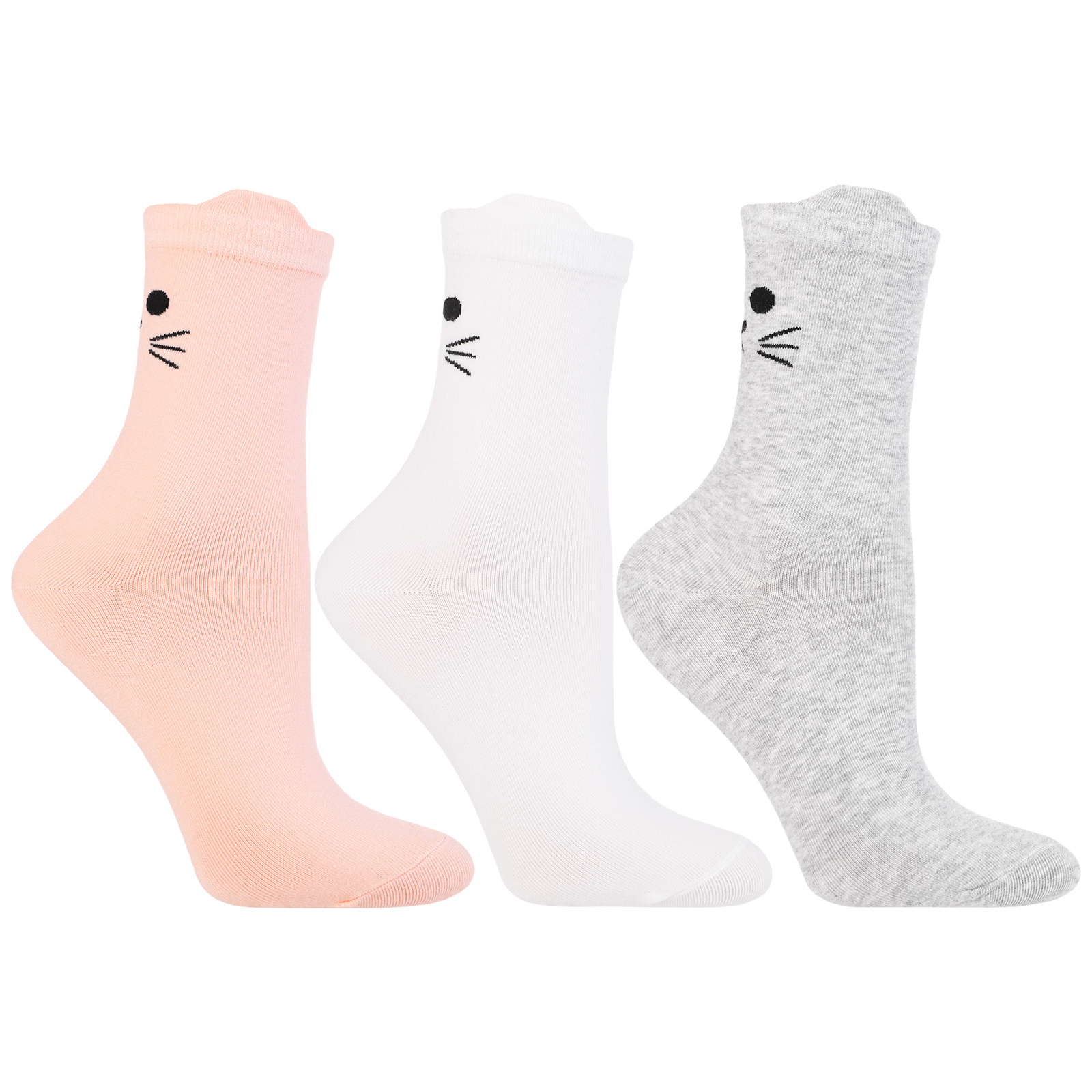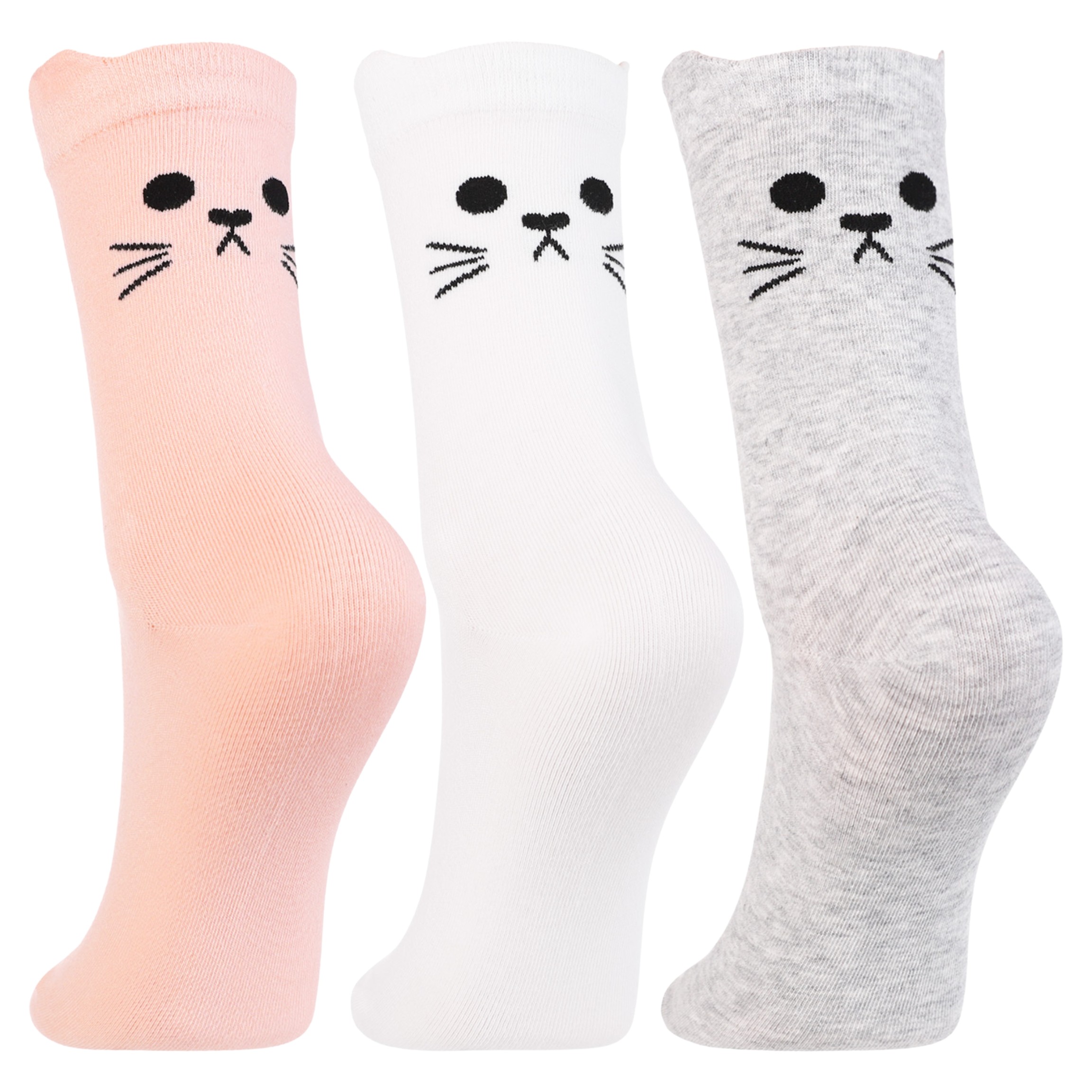 Wzbogać swoją garderobę o wyjątkowy zestaw 3 par długich skarpetek damskich z motywem kotka. To połączenie dziewczęcego stylu i codziennej wygody, które sprawi, że Twoje stylizacje zyskają zabawny, a jednocześnie uroczy akcent.