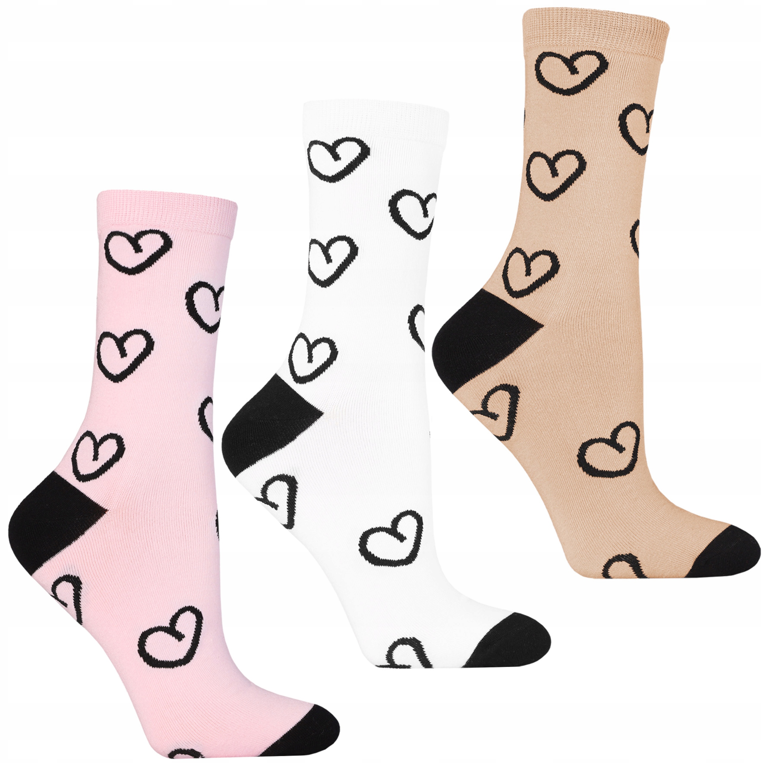 Urocze Skarpety MORAJ Damskie Długie Skarpetki w Serca Wysokie 3-PAK
