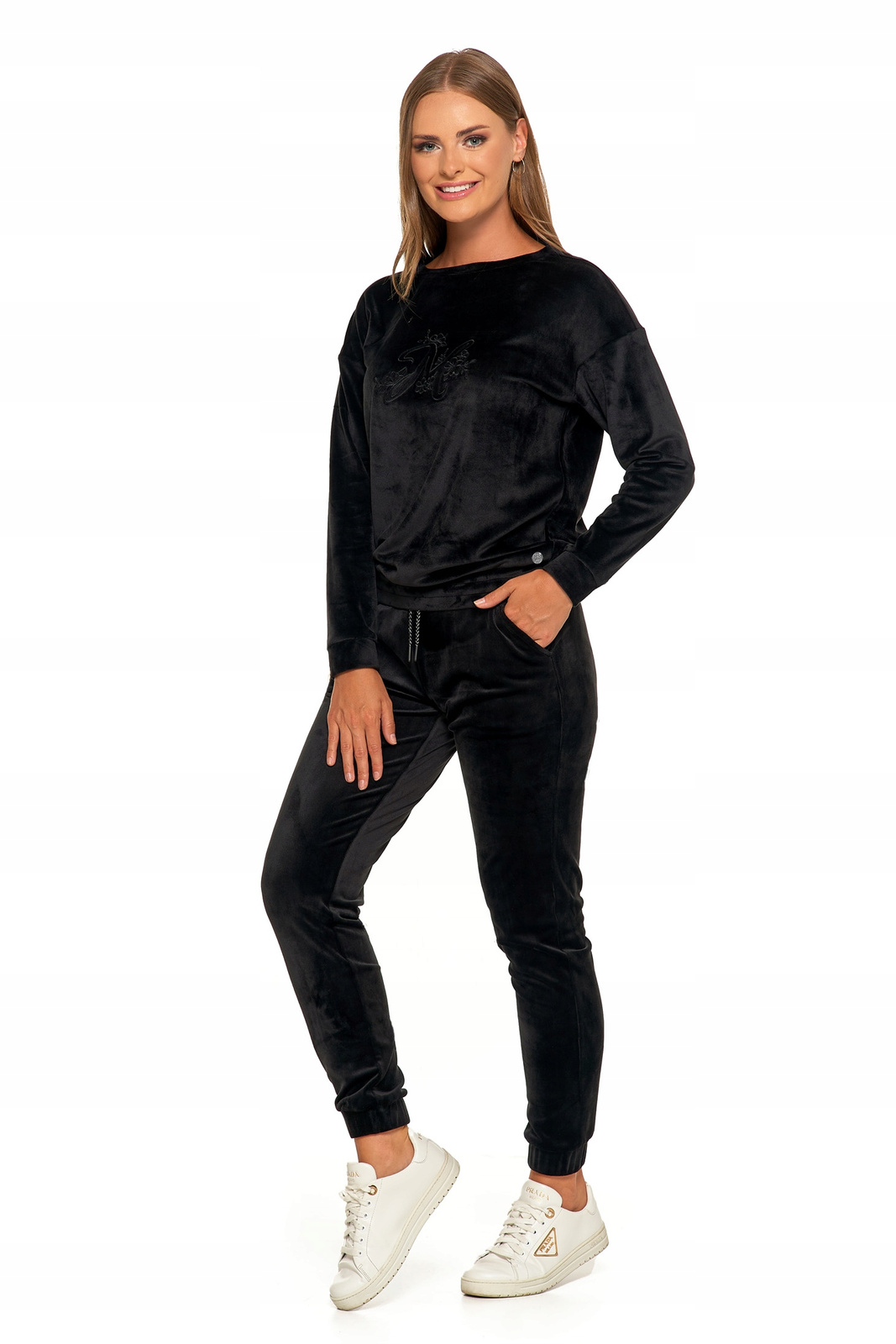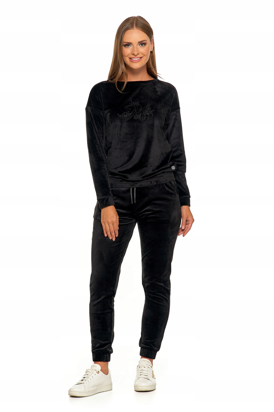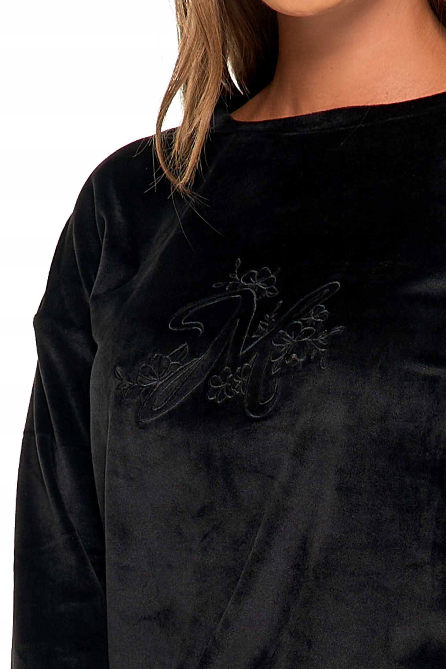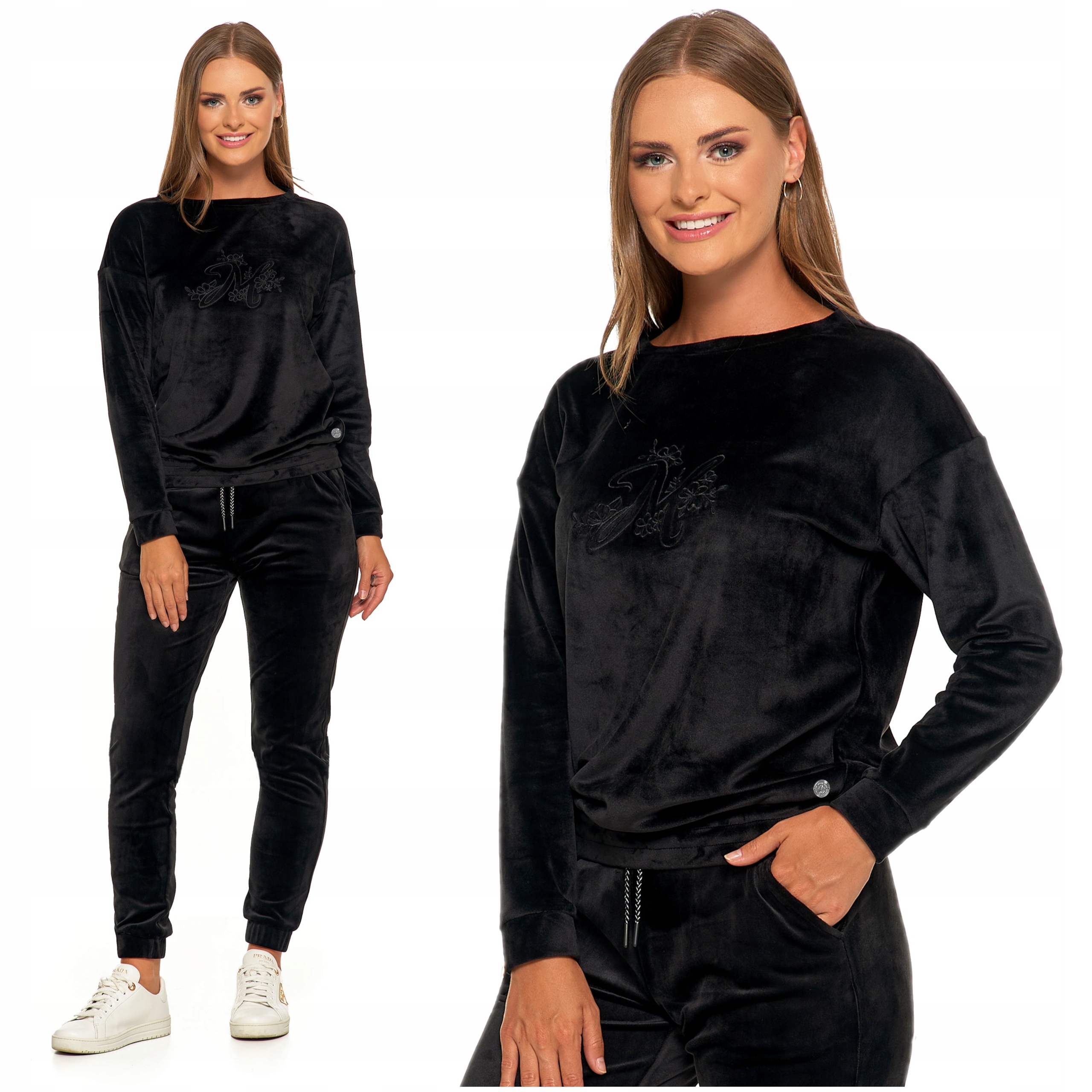 Welurowa BLUZA DAMSKA Czarna Bez Kaptura z Haftem Elegancka MORAJ