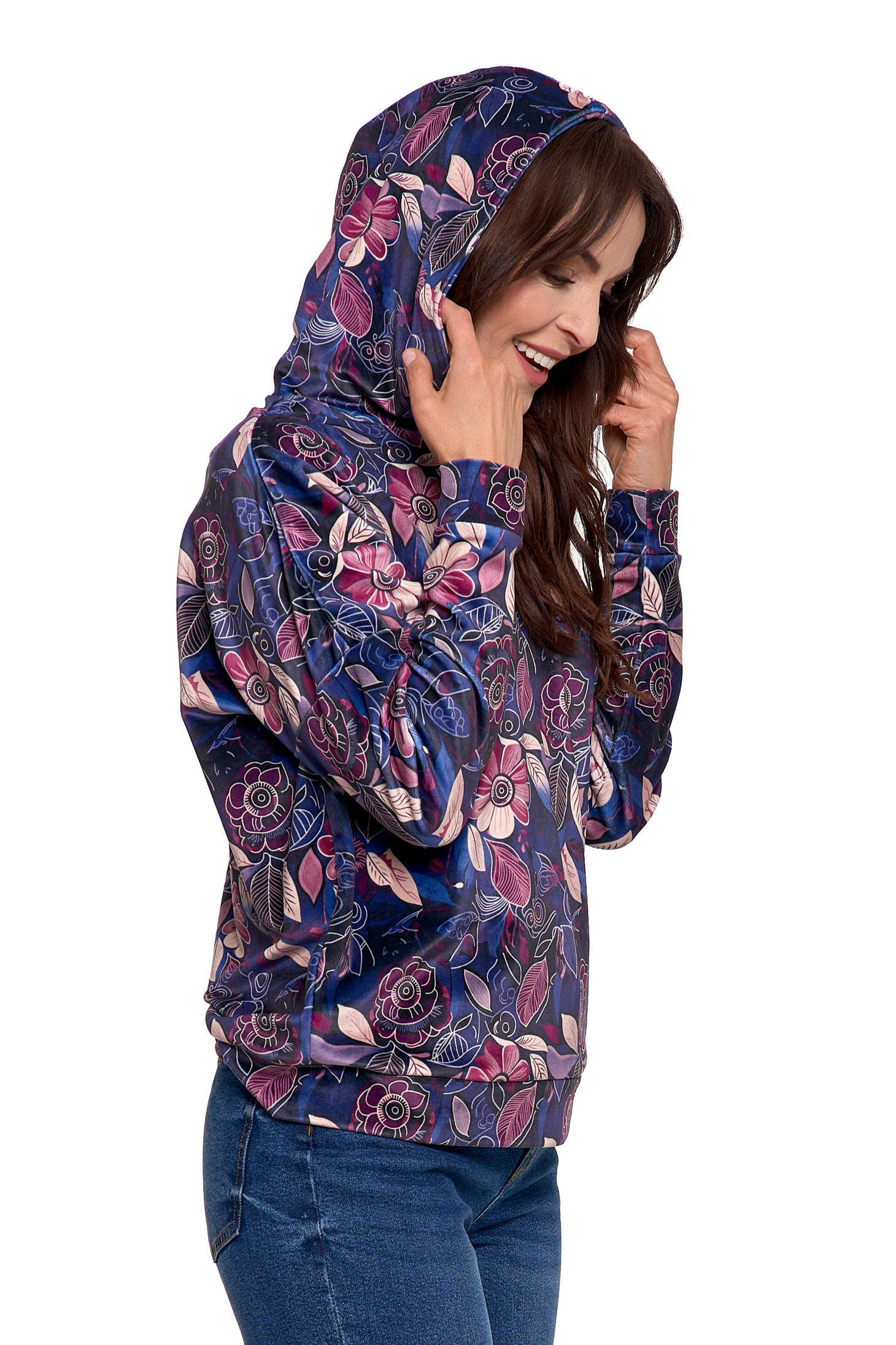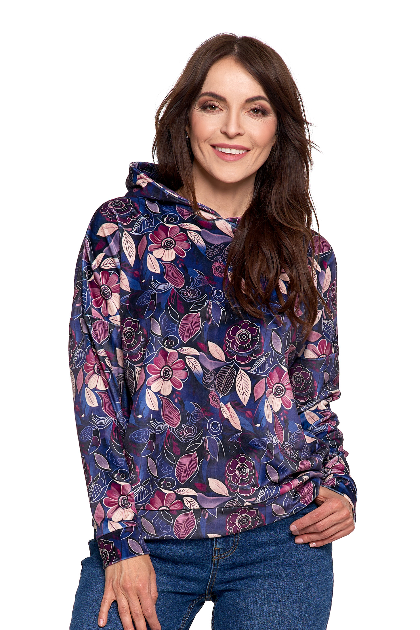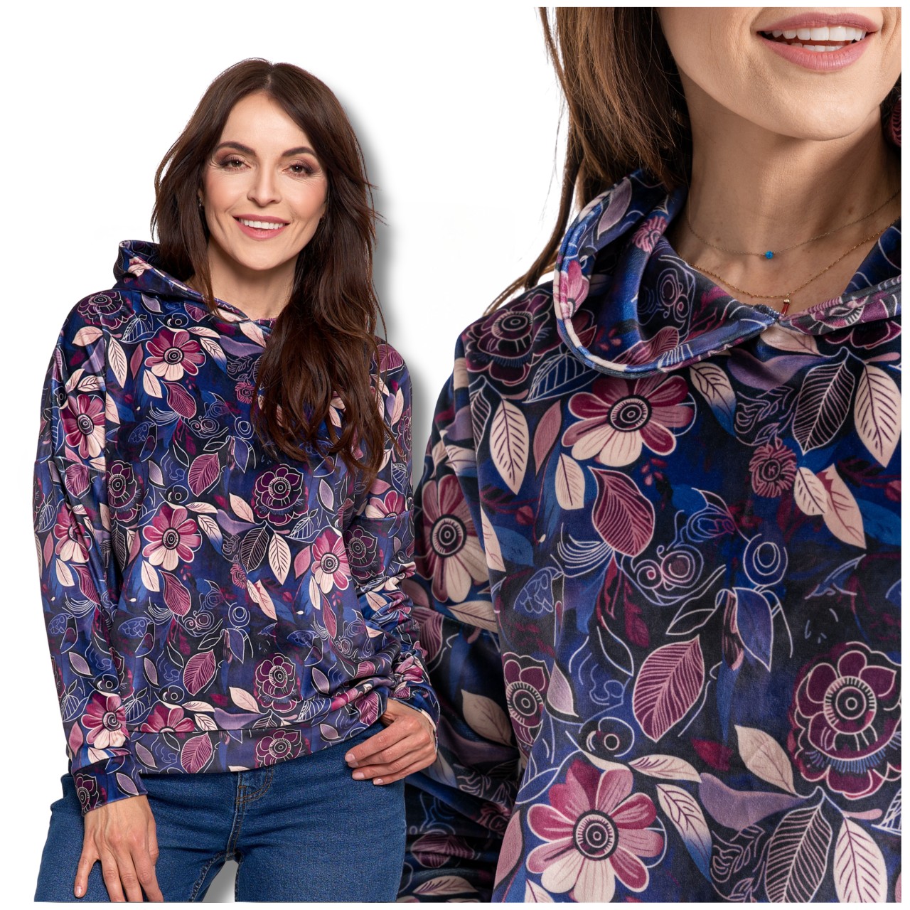 WELUROWA BLUZA DAMSKA MORAJ W KWIATKI PRZEZ GŁOWĘ Z KAPTUREM WYGODNA