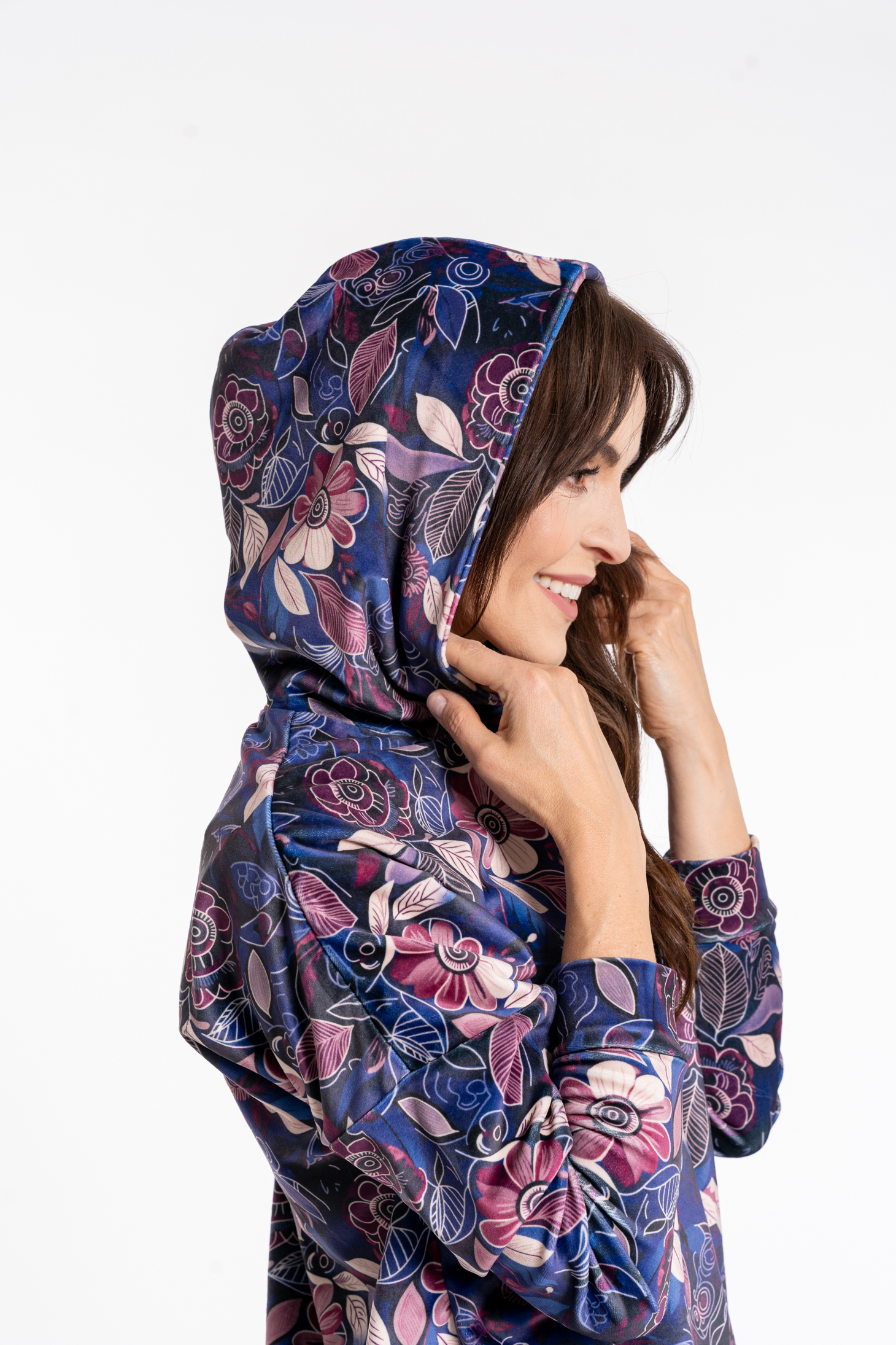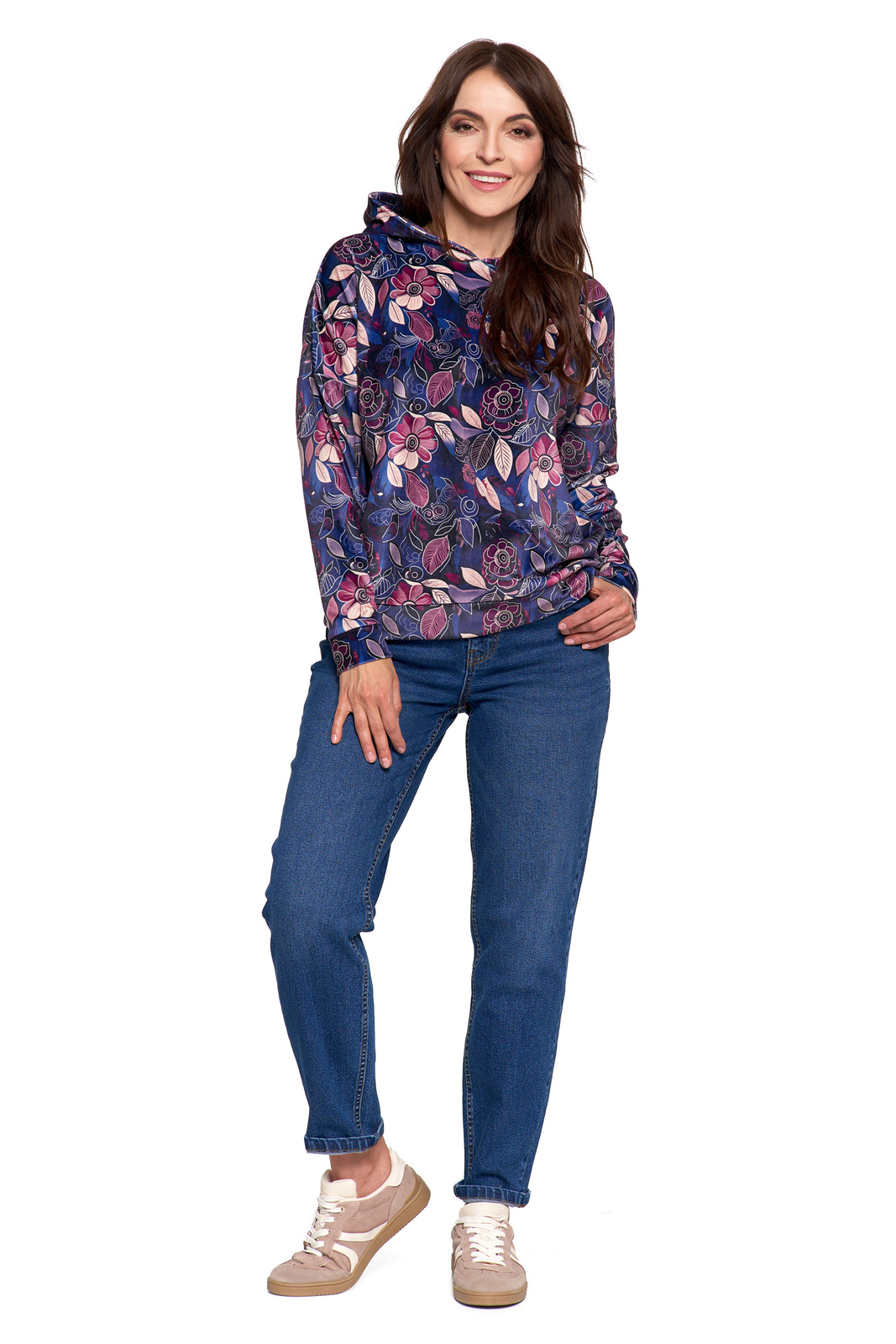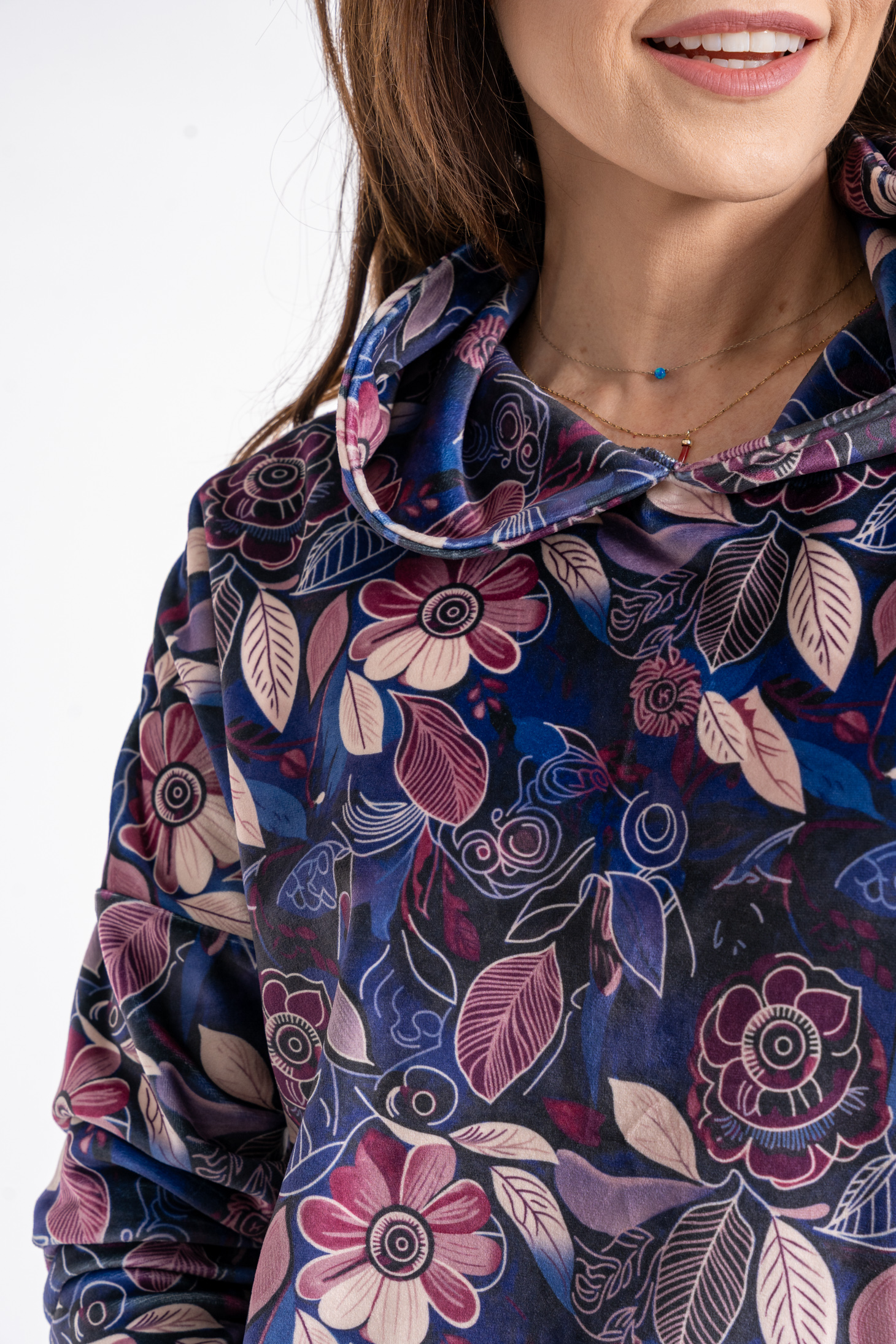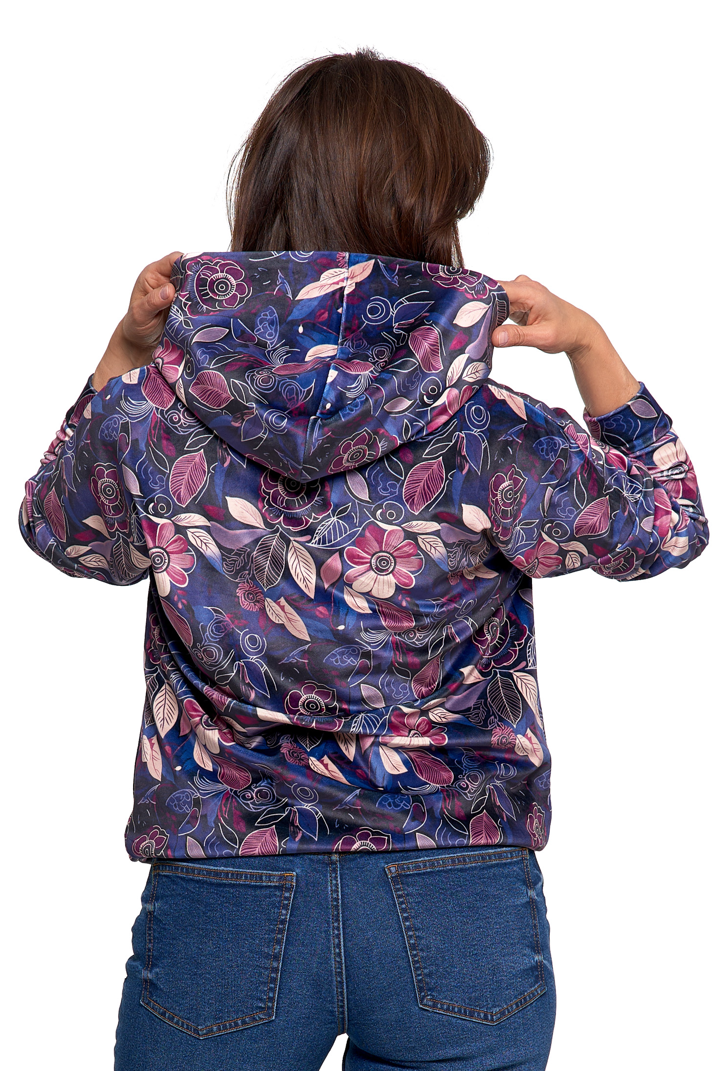WELUROWA BLUZA DAMSKA MORAJ W KWIATKI PRZEZ GŁOWĘ Z KAPTUREM WYGODNA
