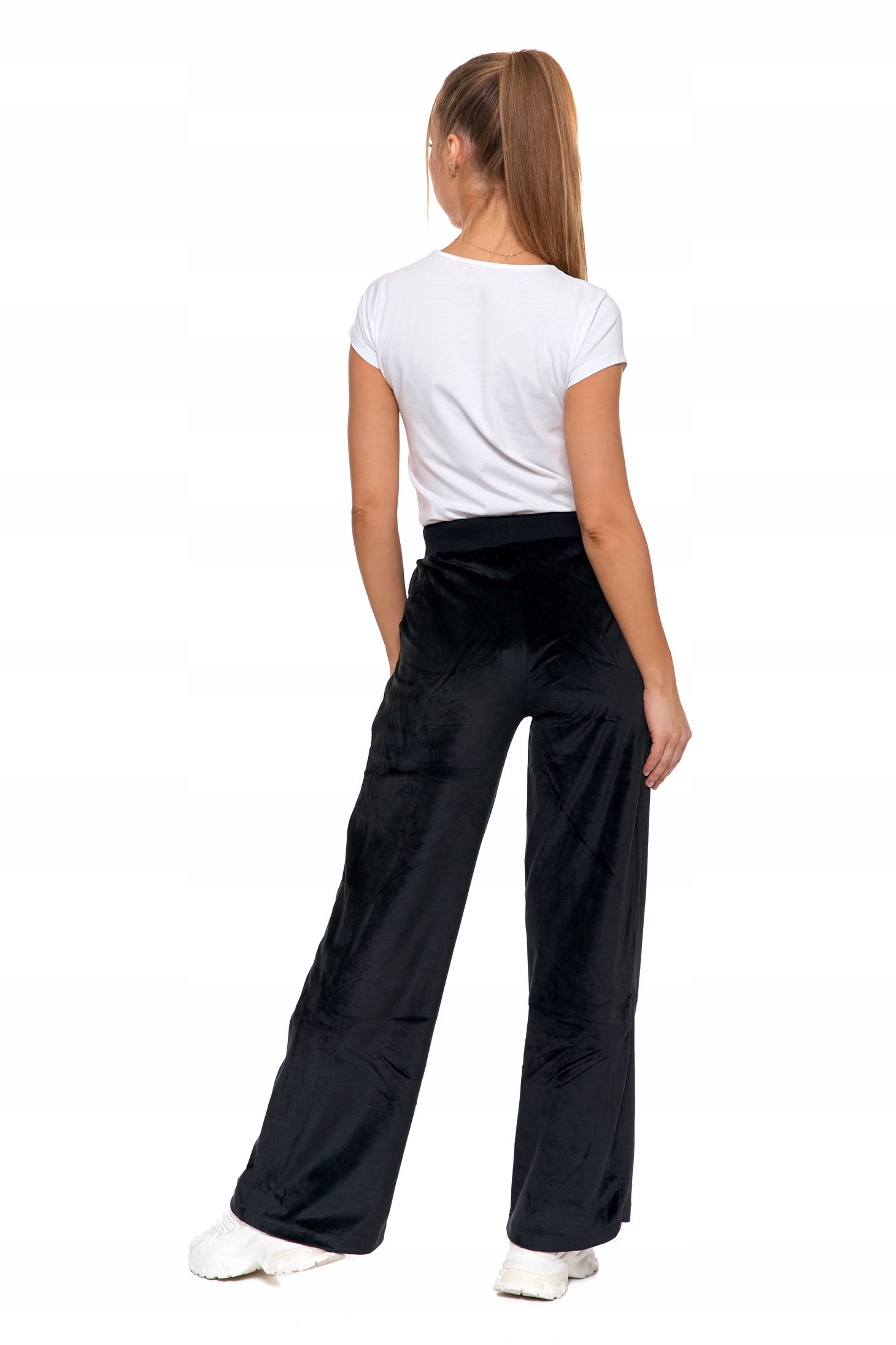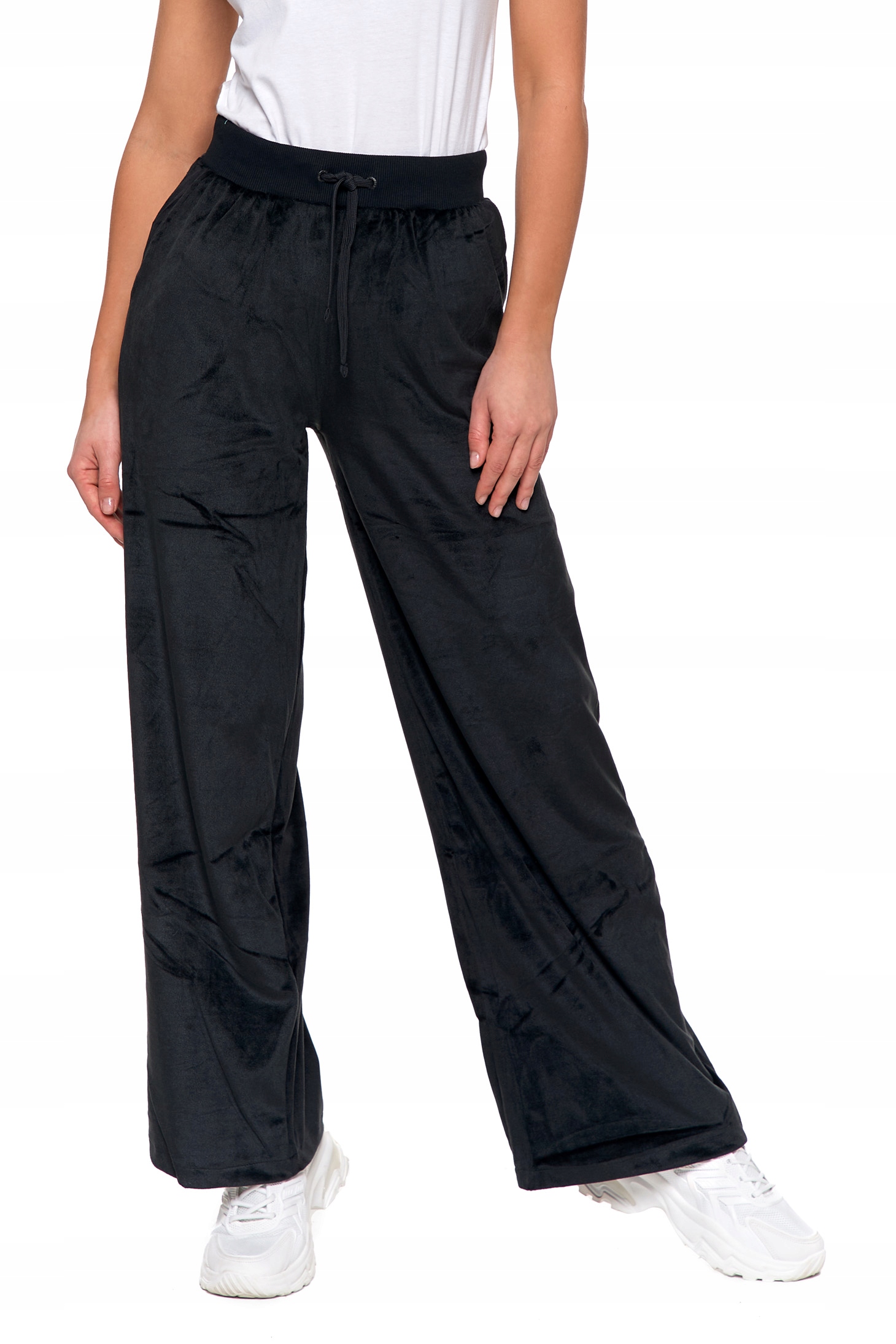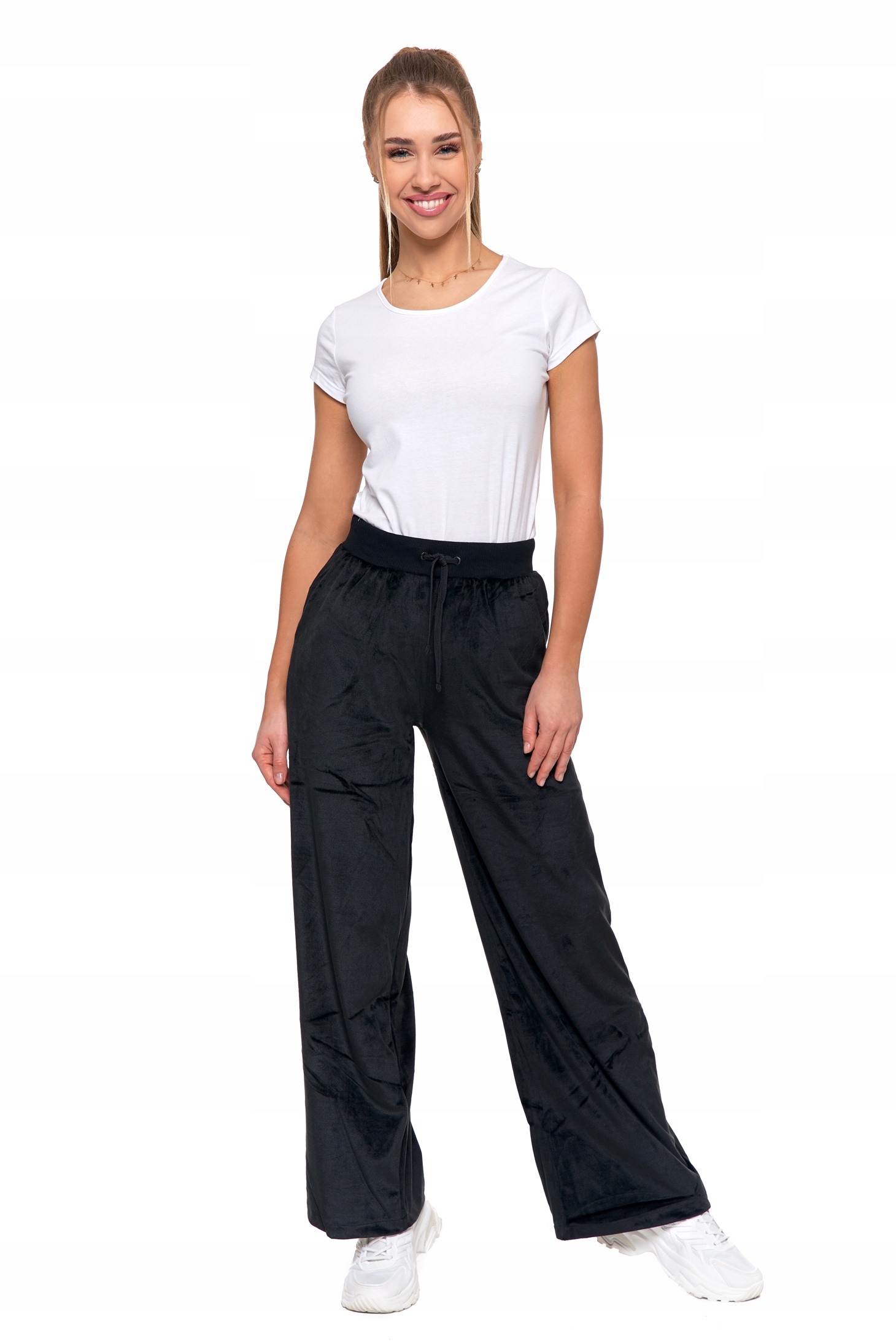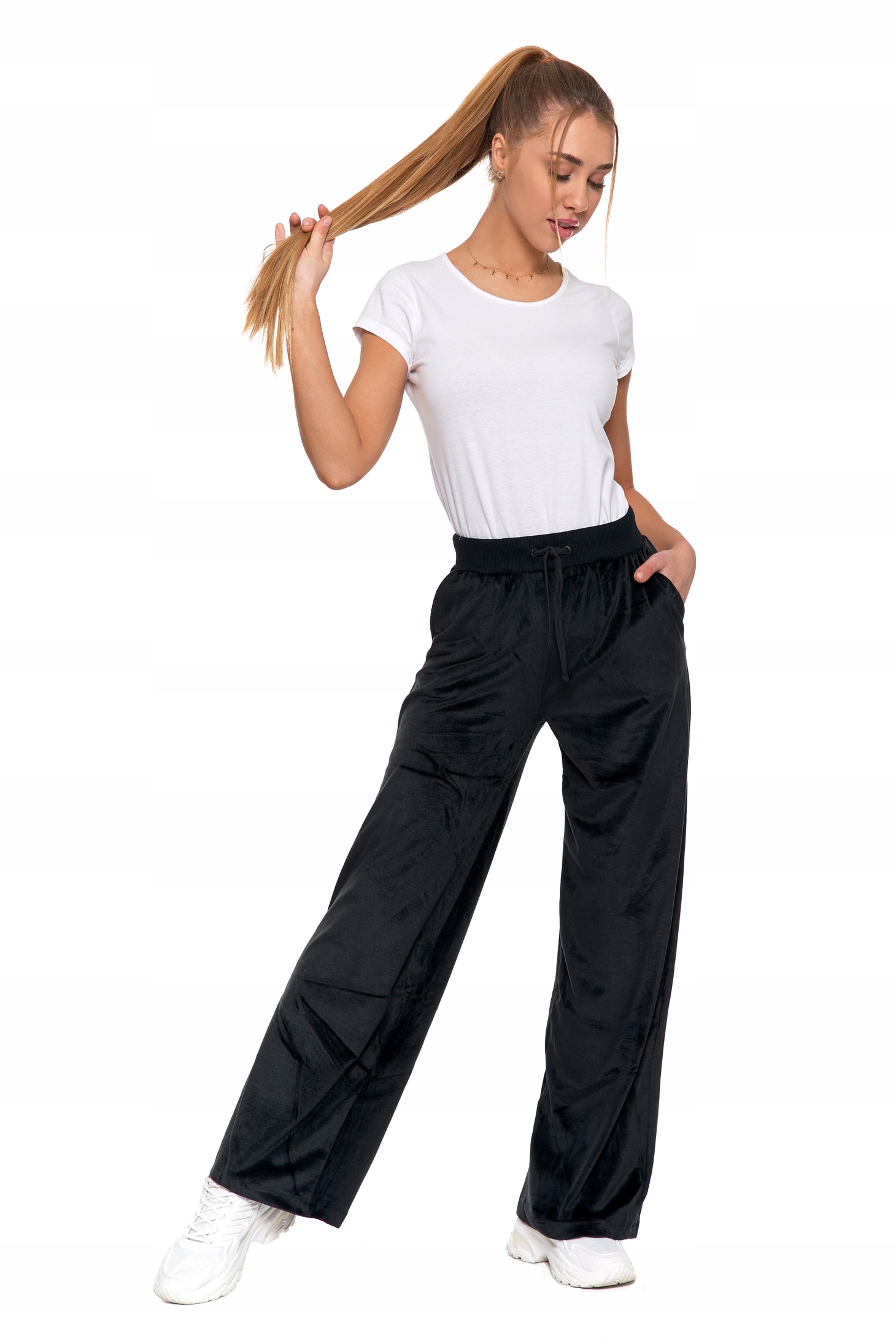 WELUROWE SPODNIE DAMSKIE Z SZEROKĄ NOGAWKĄ WYSOKI STAN KIESZENIE MORAJ