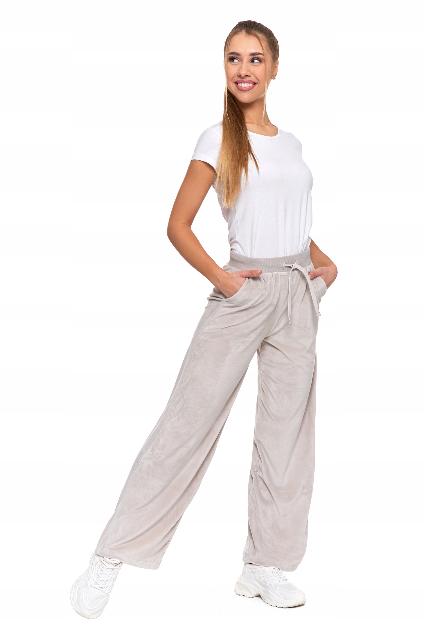 WELUROWE SPODNIE DAMSKIE Z SZEROKĄ NOGAWKĄ WYSOKI STAN KIESZENIE MORAJ