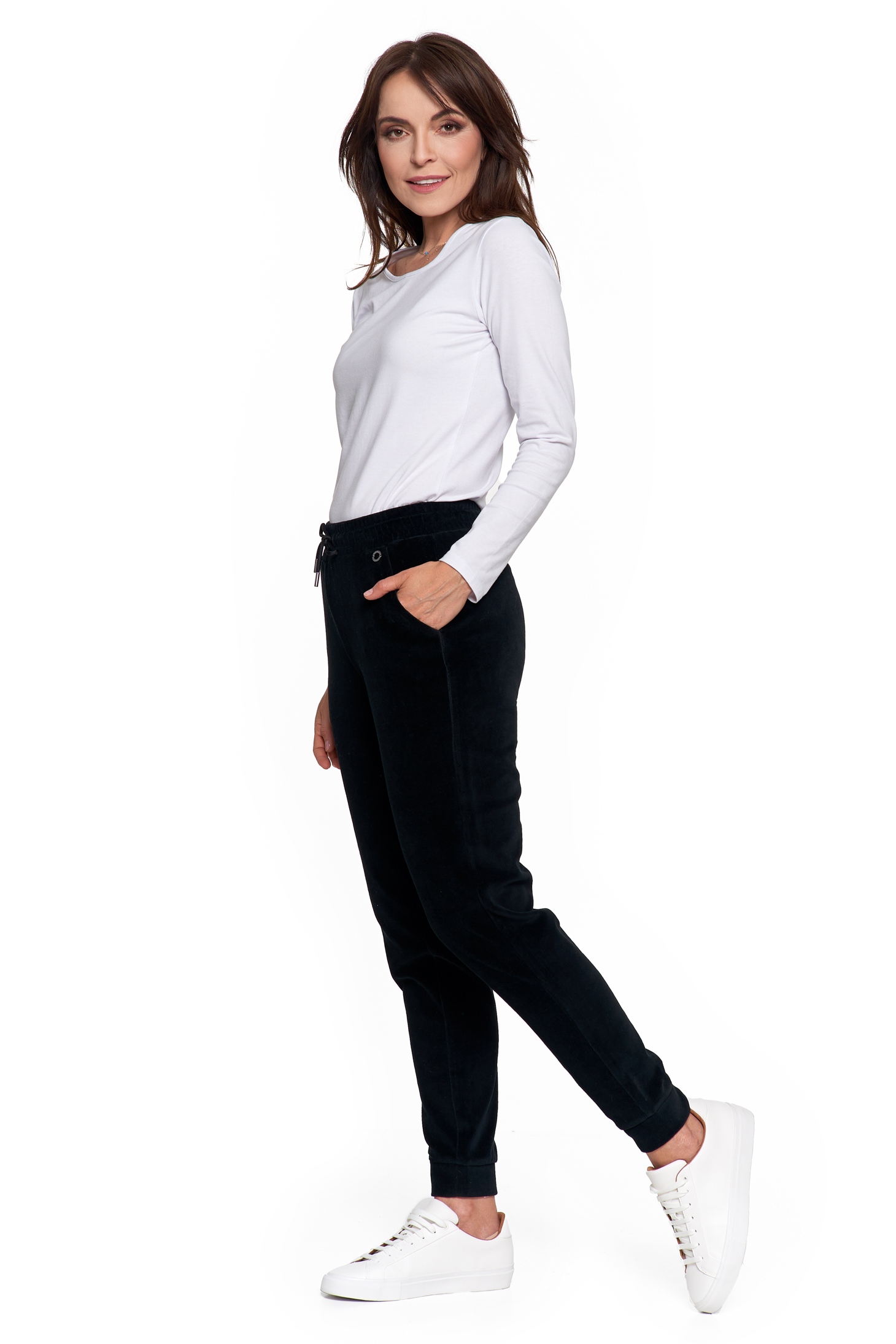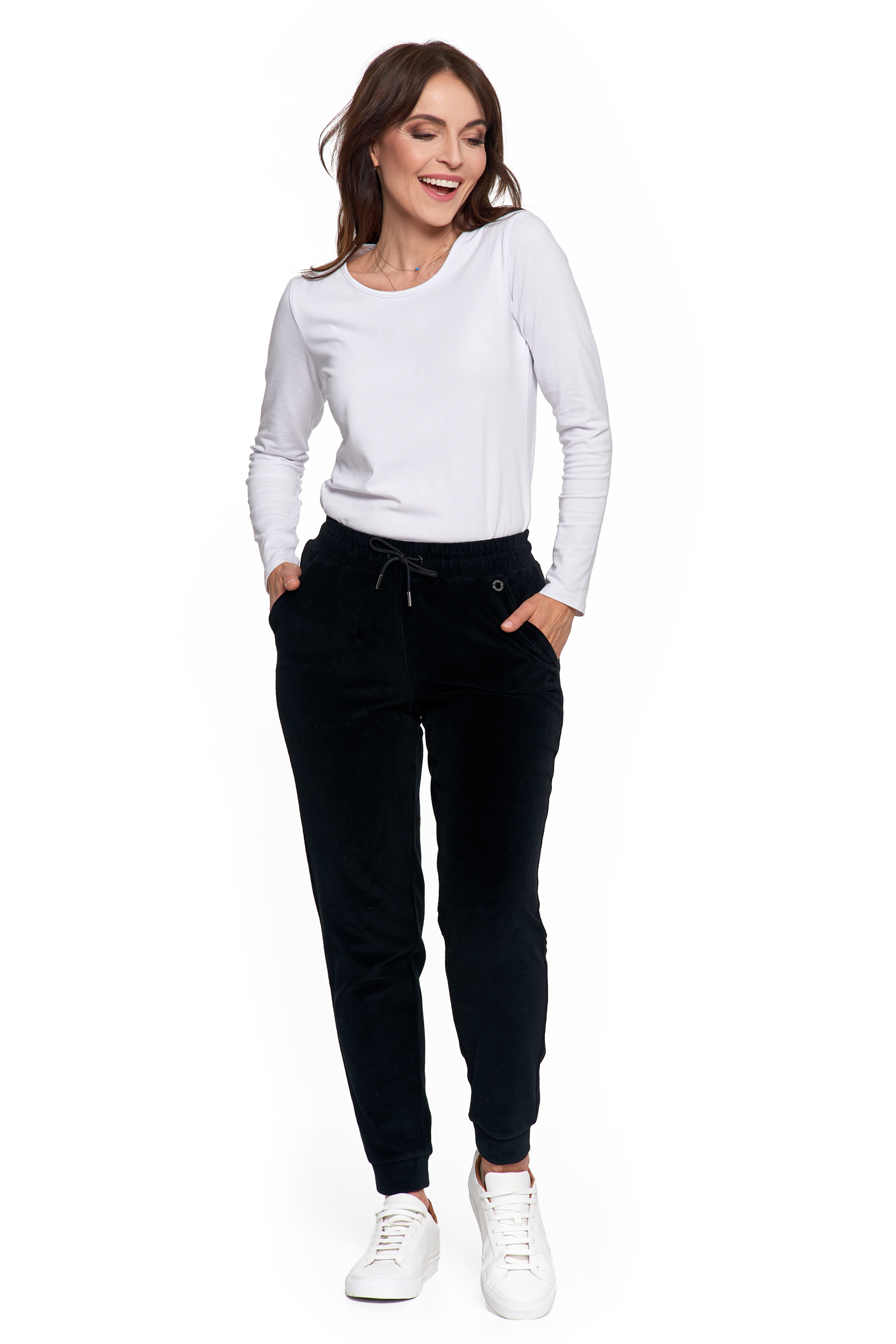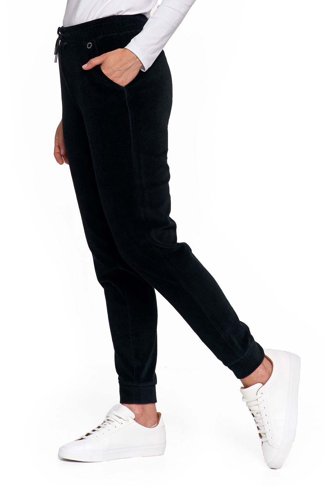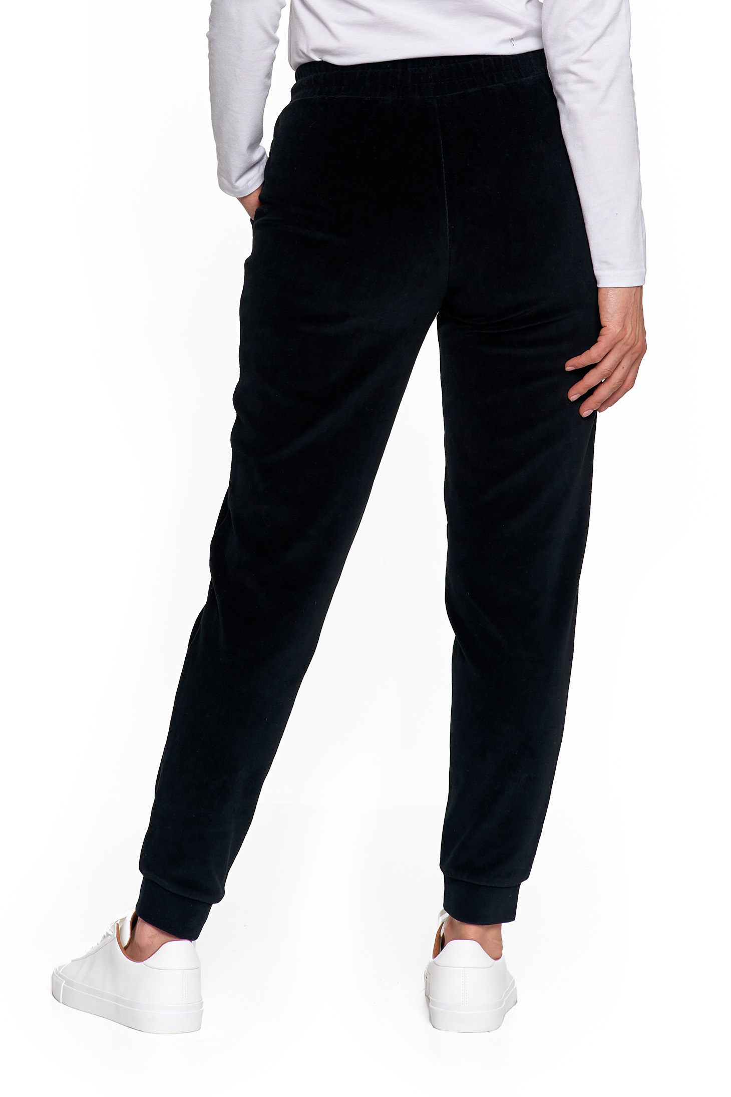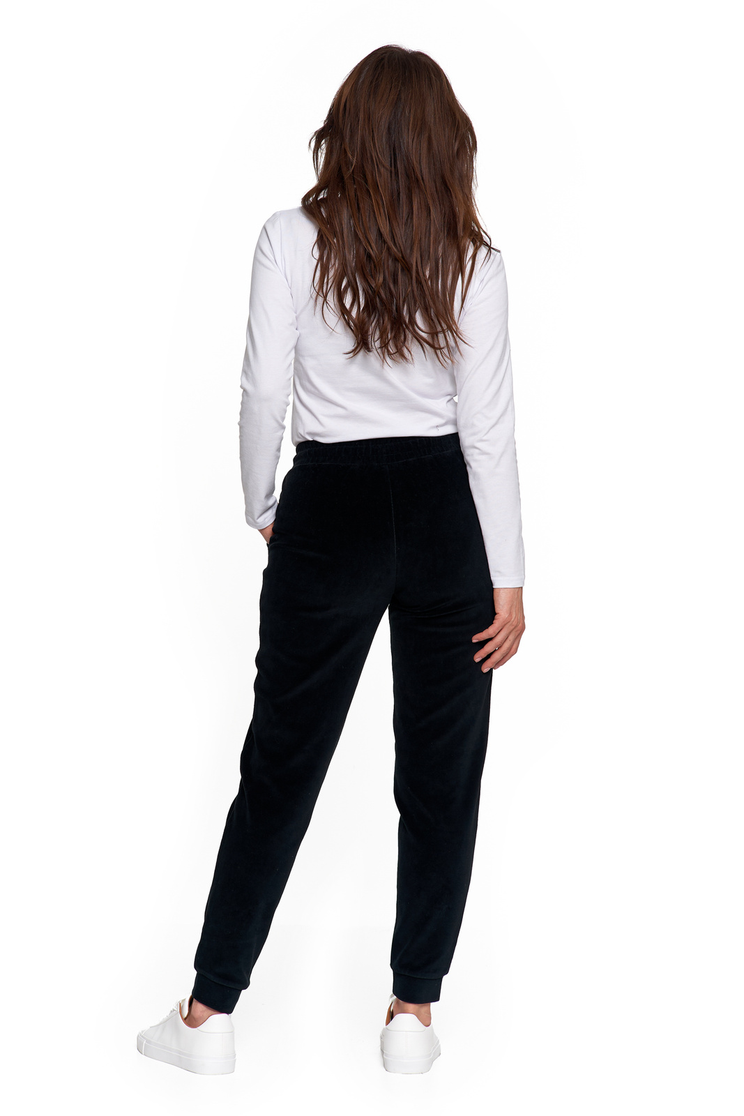 Te damskie spodnie dresowe to idealne połączenie wygody i elegancji w codziennym wydaniu. Wykonane z miękkiej dzianiny welurowej z bawełny czesanej, otulają ciało przyjemną miękkością, jednocześnie gwarantując naturalną przewiewność i wytrzymałość.
