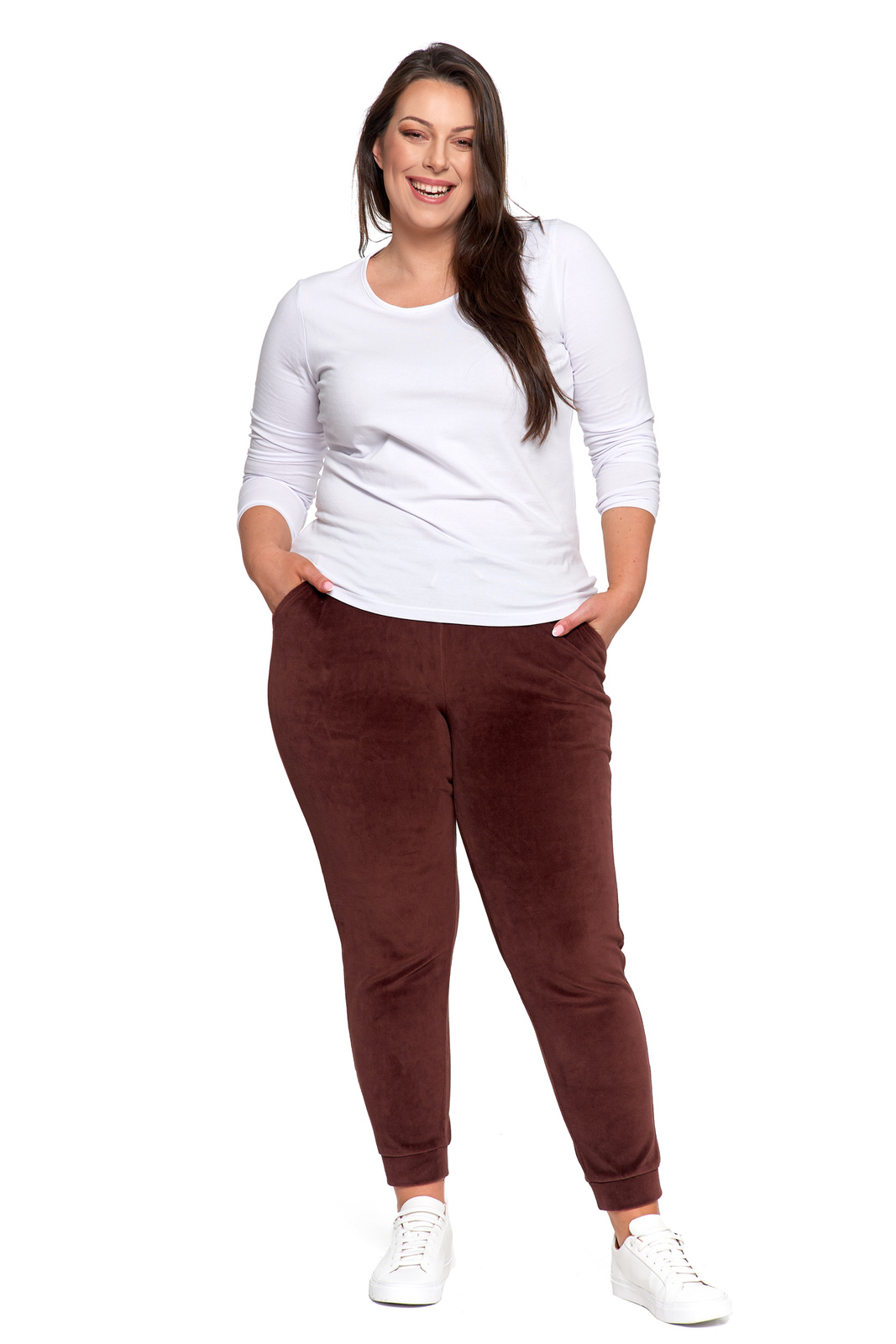WYGODNE SPODNIE DAMSKIE DRESOWE WELUROWE WYSOKI STAN STYLOWE MORAJ