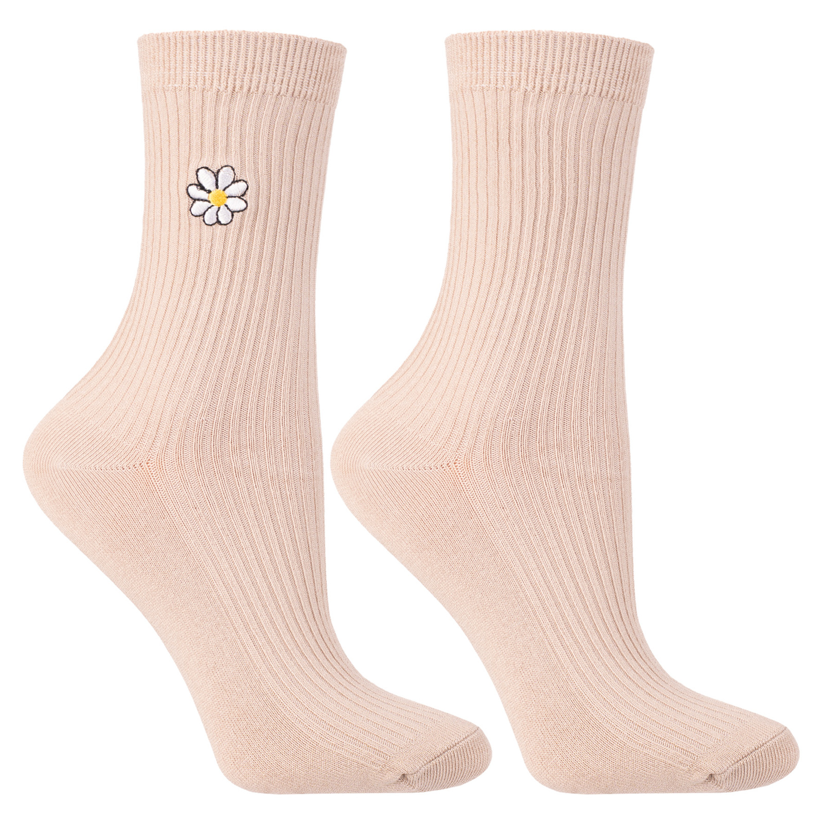 • Design: Skarpetki ozdobione są delikatnym haftem w motywy kwiatowe, co nadaje im wyjątkowego, kobiecego i eleganckiego charakteru.