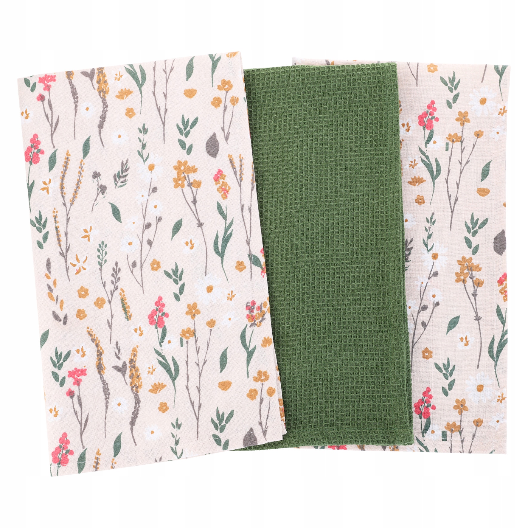 Zestaw trzech ręczników kuchennych, zapakowany w praktyczny, ozdobny koszyczek. Zarówno ręczniki, jak i obszycie koszyczka uszyte są w 100% z bawełny. Materiał z jakiego są wykonane jest trwały. Ręczniki dobrze sprawdzą się w kuchni. Dodatkowym atutem jest stylowe wzornictwo, które dodatkowo przyozdobi wnętrze. Bawełna jest wysoce higroskopijna - ręczniki dobrze wchłaniają wodę. Koszyczek można wykorzystać na owoce bądź ciasteczka.