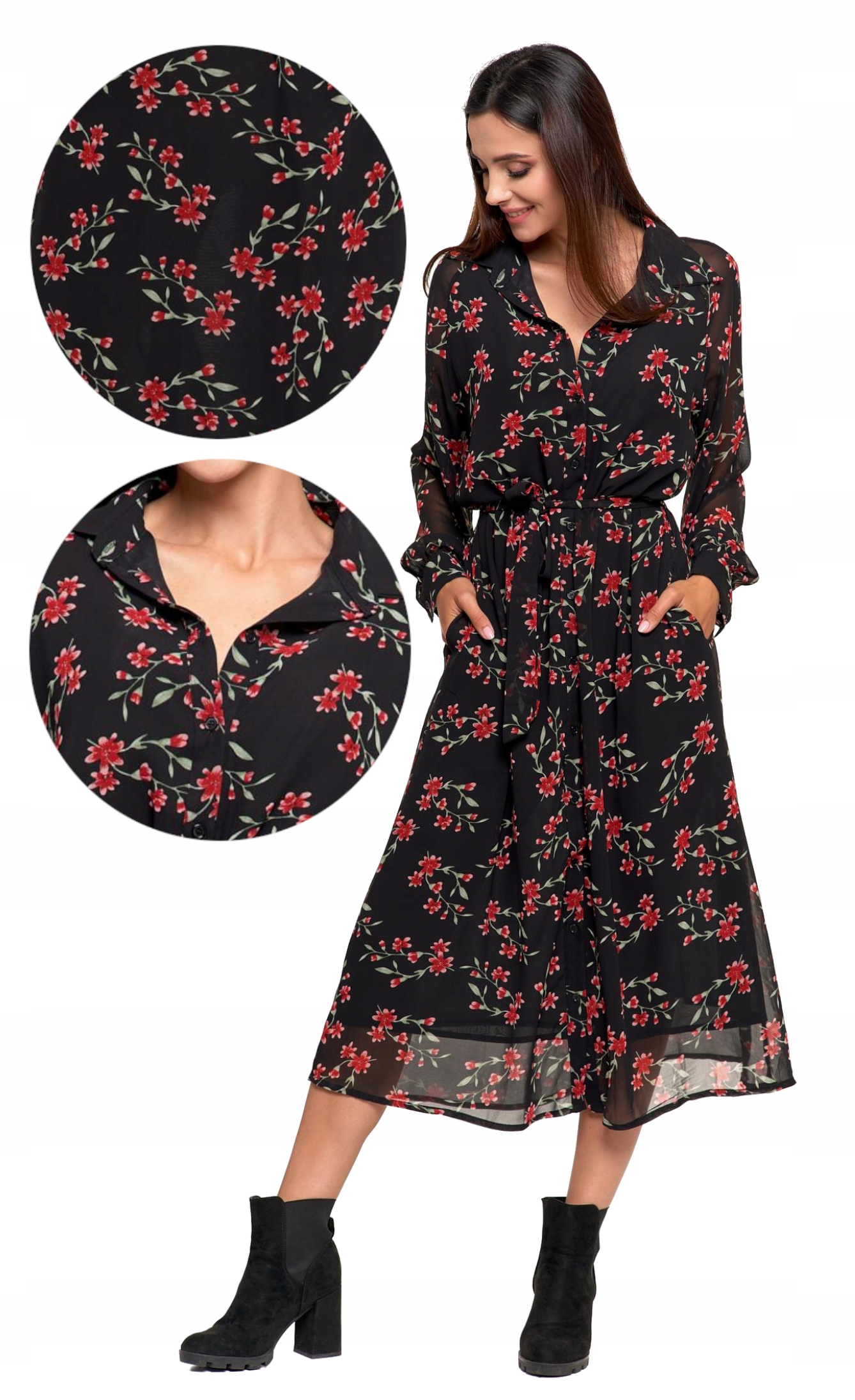 Ta sukienka midi z wiązaniem i kieszeniami to idealna opcja dla kobiet, które cenią sobie zarówno elegancję, jak i wygodę. Jej delikatny szyfonowy materiał i romantyczny design sprawią, że poczujesz się wyjątkowo w każdej sytuacji.